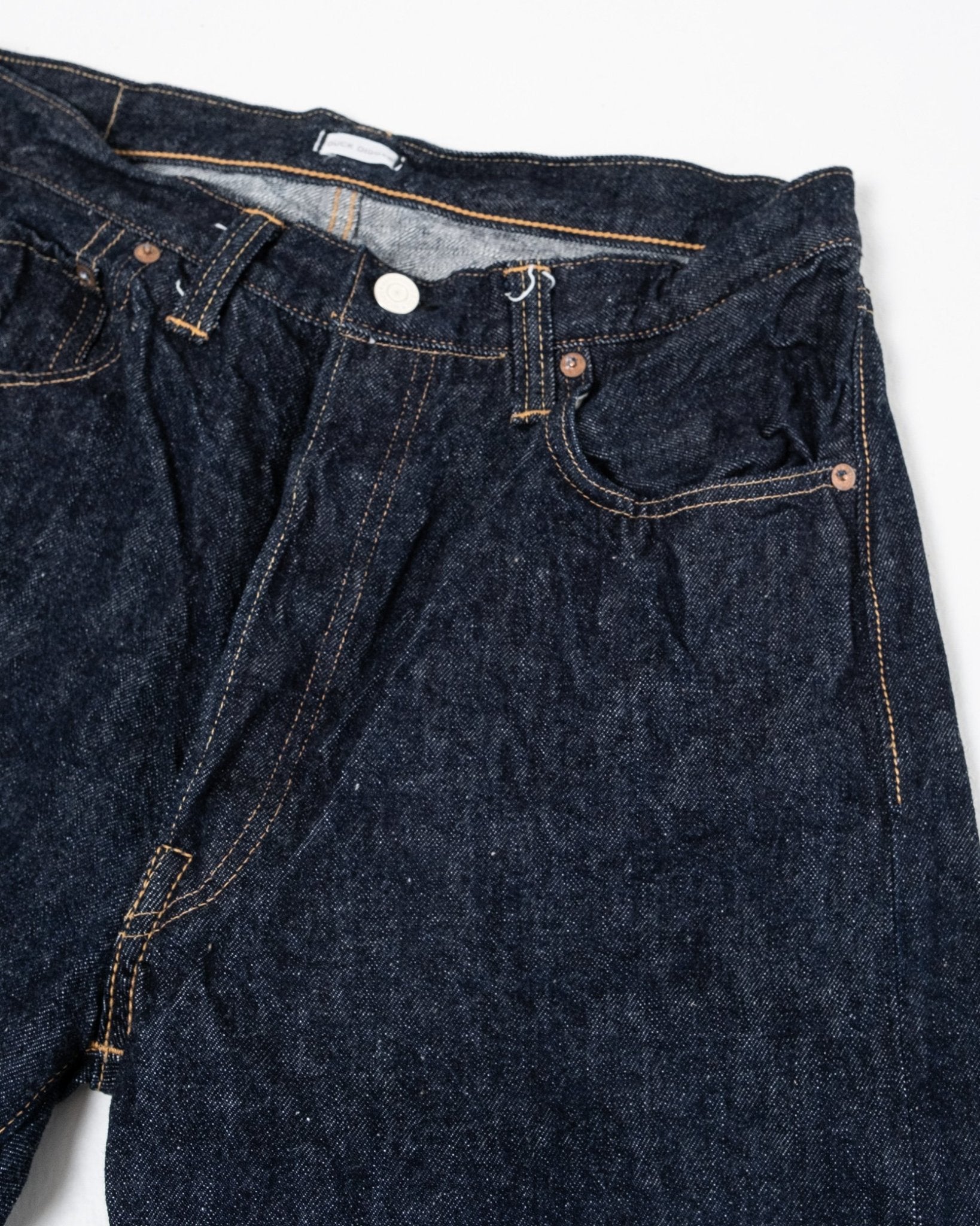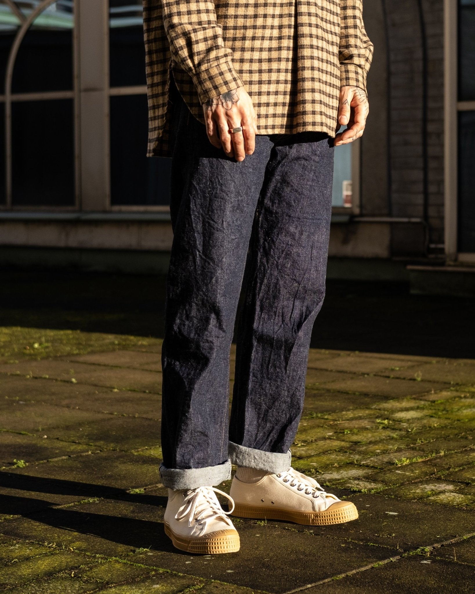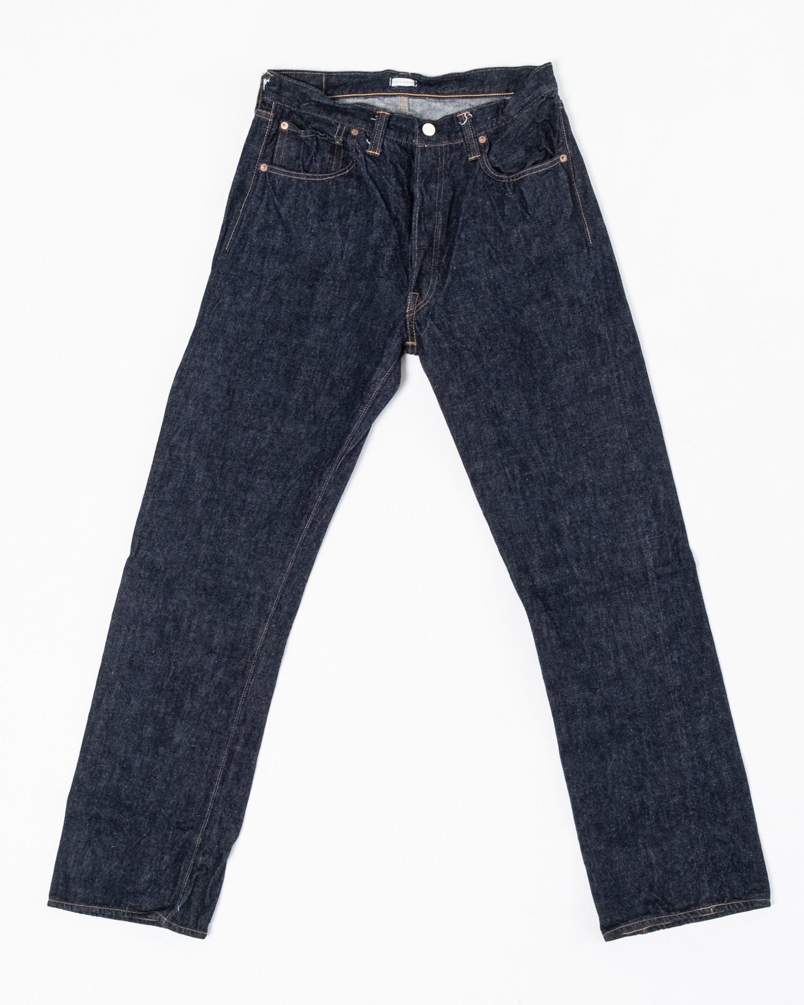 Duck Digger 1001XX One Wash van Warehouse & Co. Deze jeans heeft een 1947 snit, met een diepe taille en een zachte toelopende vorm. Warehouse naait deze in hun 13,5 oz Banner Denim. Dit rechte model is gebaseerd op een model uit de jaren '40 in een katoenmix uit Arizona, Tennessee en Texas, en recreëert de natuurlijke ongelijke garenkenmerk van die tijd. Ongekrompen denim dat één keer is gewassen voor een mooie vintage look, plus dat het je al het gedoe van krimp bespaart. Gemaakt in Japan.