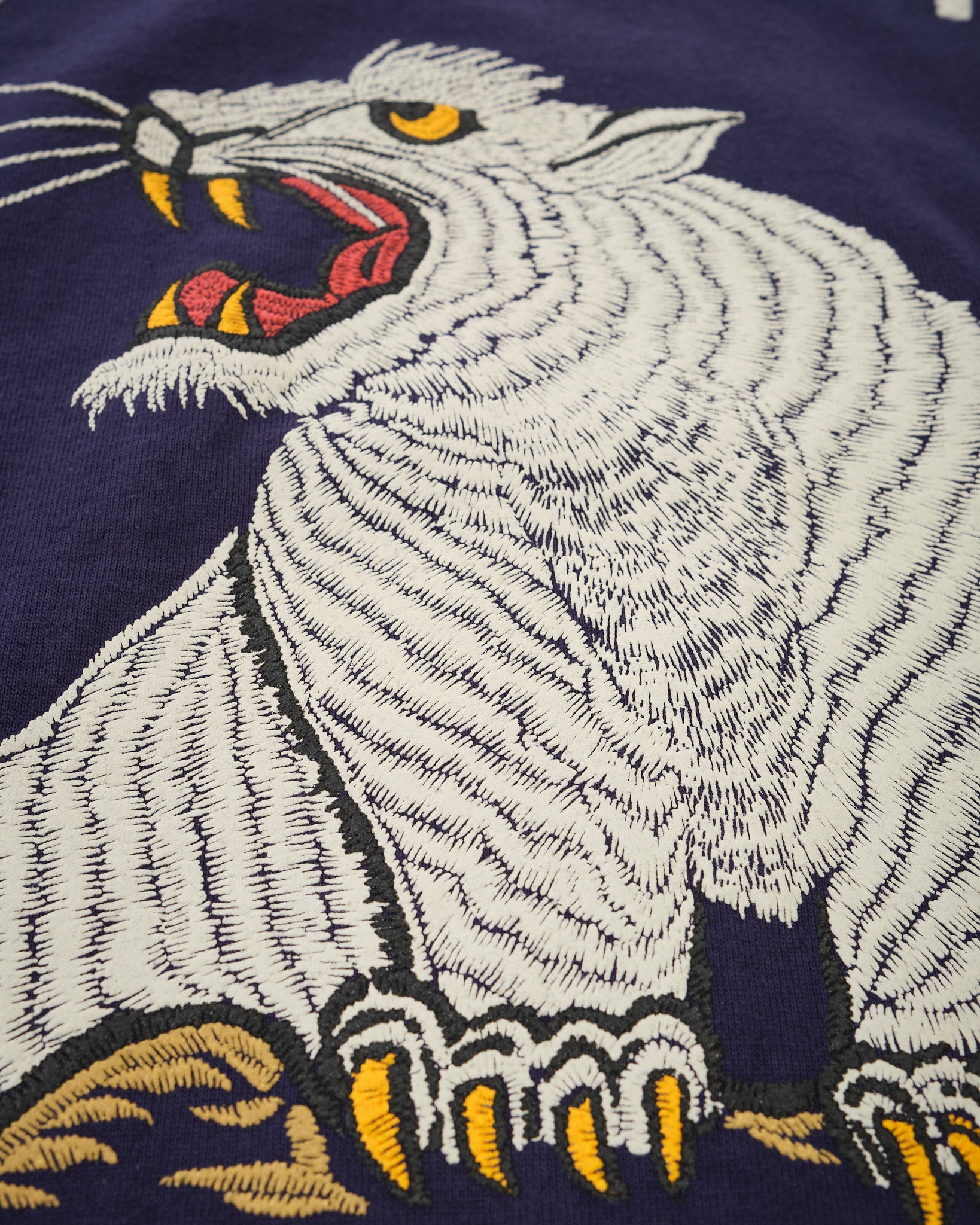 De FLAT HEAD FN-THC-060SP Tiger SS T-Shirt is een premium T-shirt met korte mouwen met een opvallende tijgerprint, die Japanse vakmanschap combineert met vintage-geïnspireerde esthetiek. Gemaakt van 100% puur katoen, biedt deze 9.7oz zware stof zowel duurzaamheid als comfort terwijl het natuurlijk veroudert over tijd.