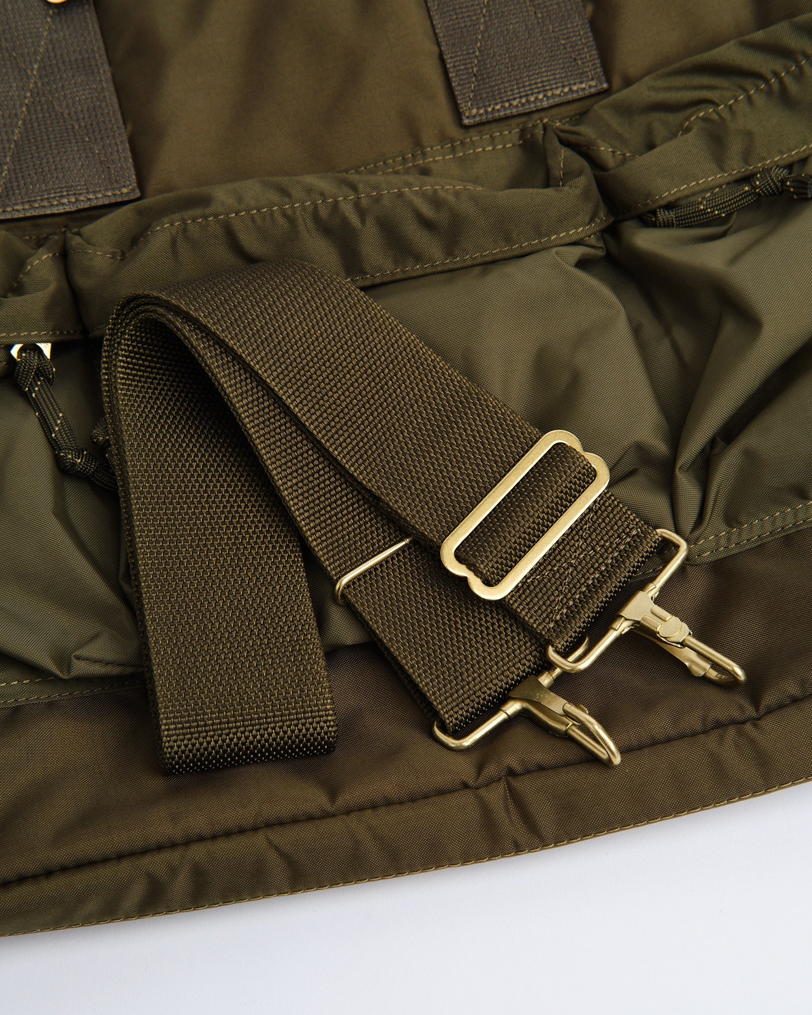 Door tot vier soorten nylon tape op sleutelgebieden te incorporeren, bereikt de tas een authentiek militair gevoel. Bovendien is het binnenvak verwijderbaar en kan als een op zichzelf staande etui dienen.