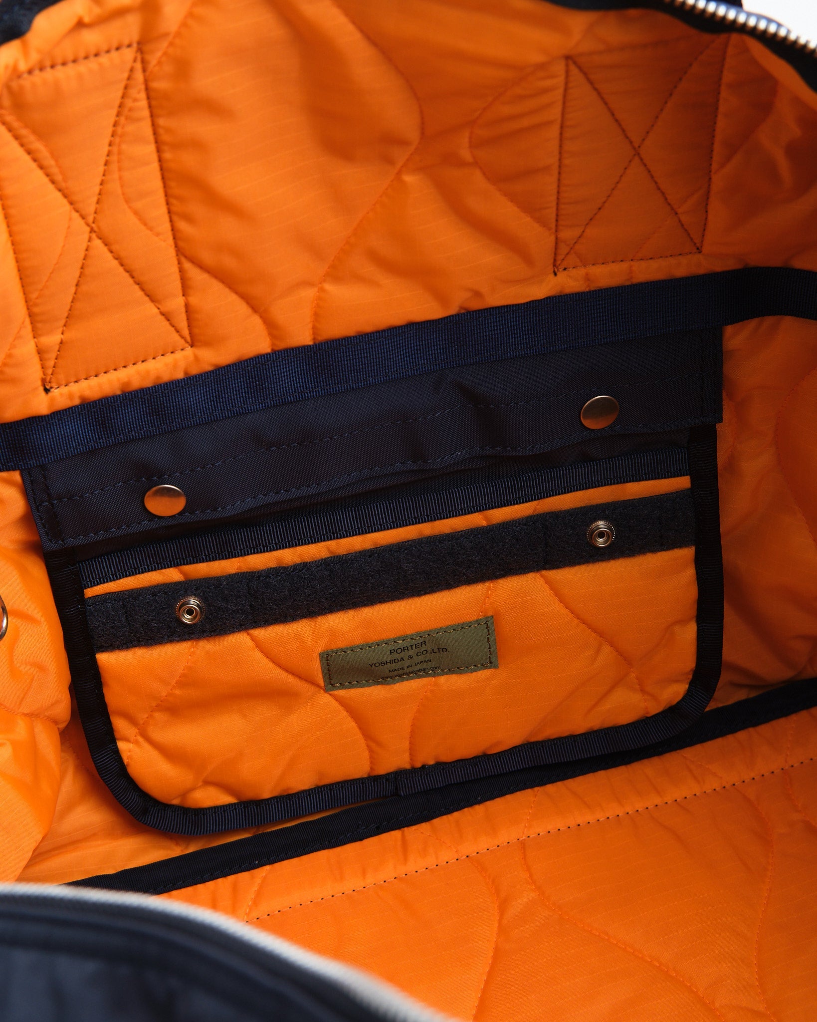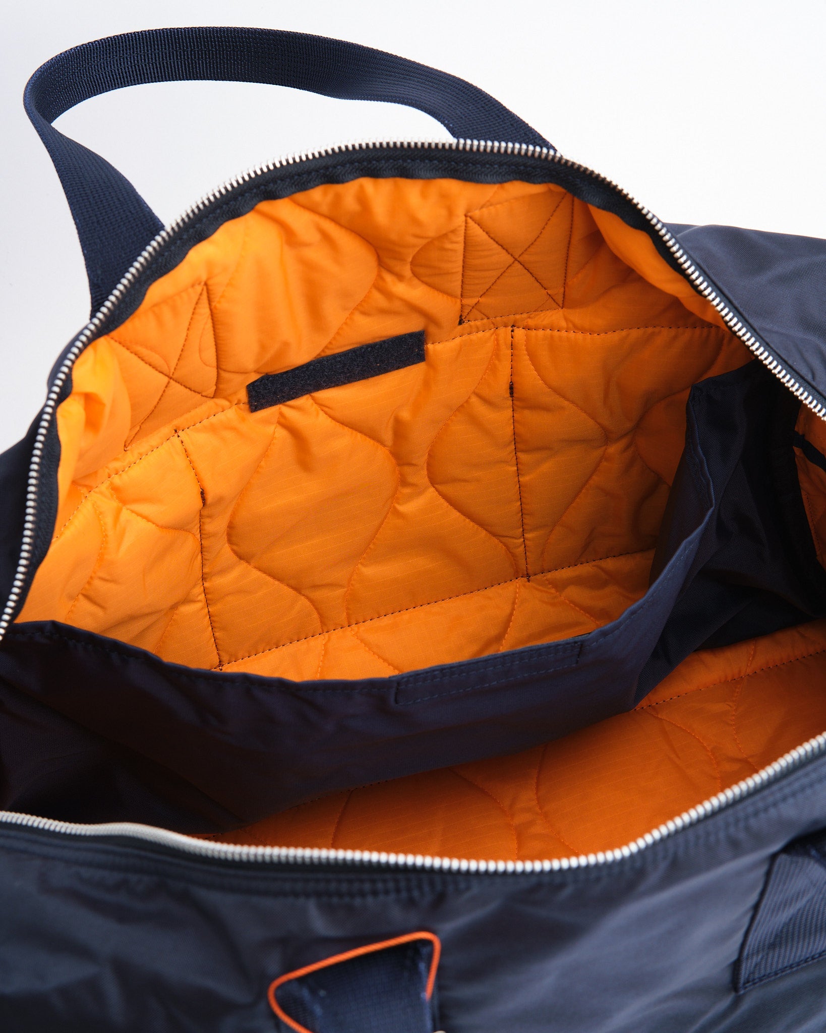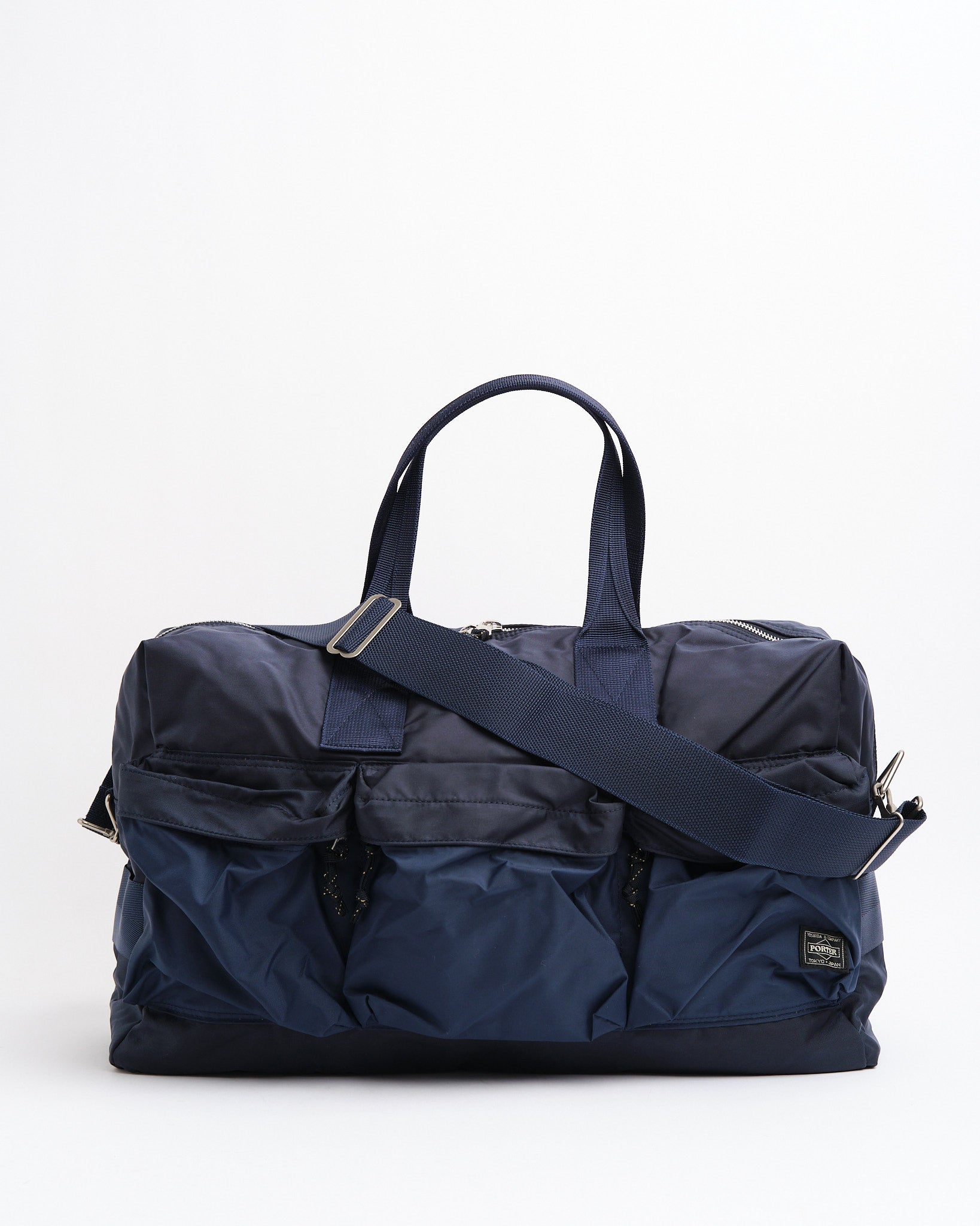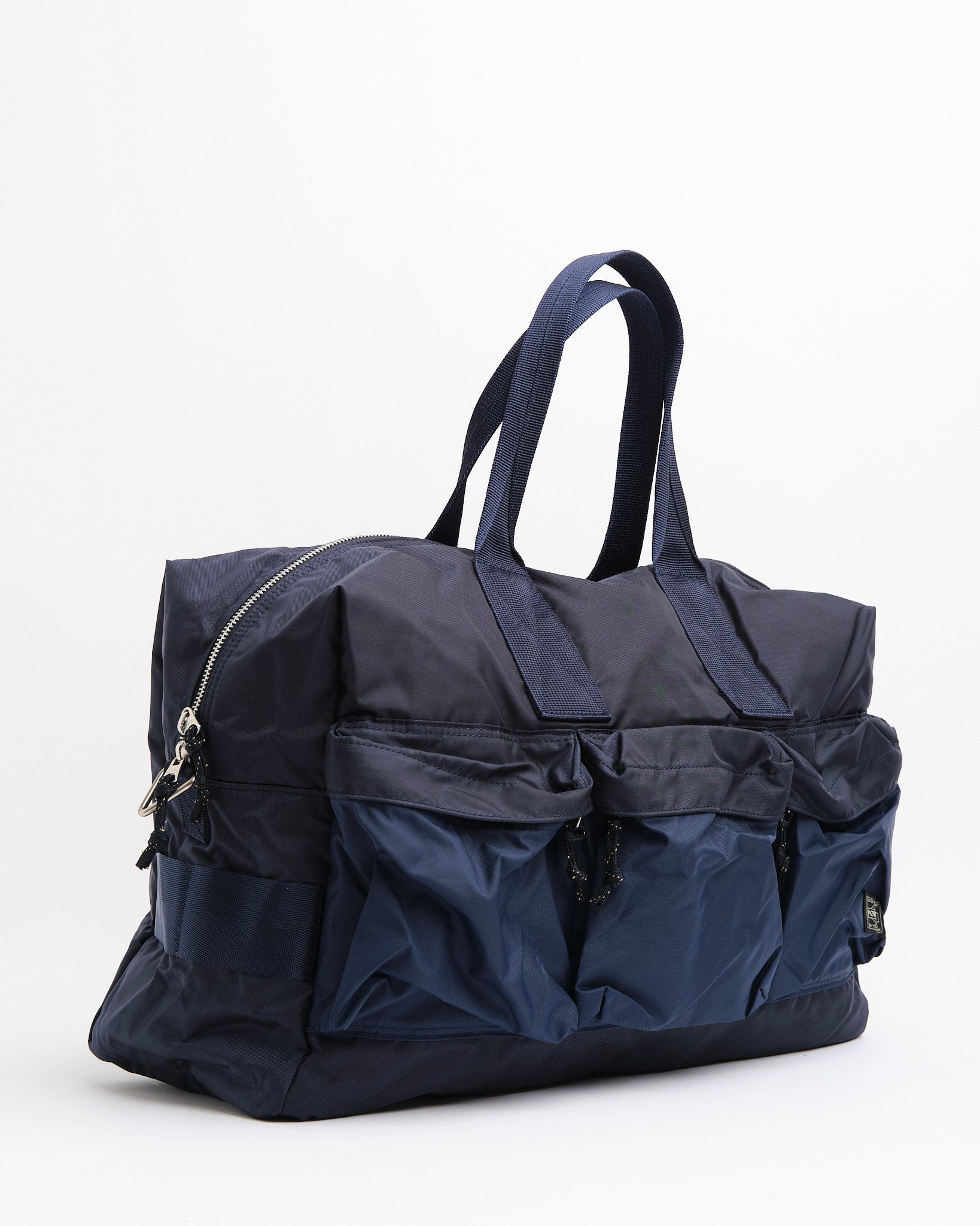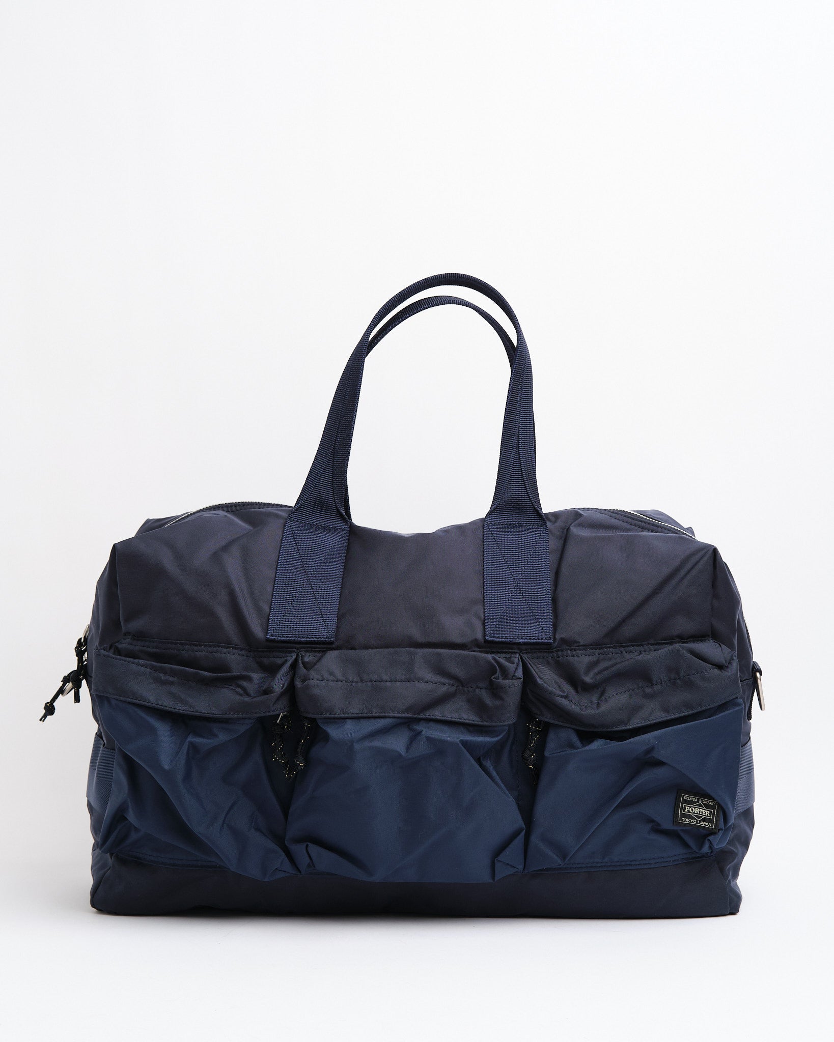 De PORTER BY YOSHIDA Force 2-Way Duffle Bag maakt deel uit van de PORTER FORCE serie, geïnspireerd door militaire esthetiek en de toevallige kleurverschillen die in militaire goederen worden gevonden. Een opvallend kenmerk van dit ontwerp is de subtiele kleurvariatie tussen de stof van het voorvak en het hoofdgedeelte van de tas, wat de indruk wekt van het gebruik van verschillende stofpartijen. Deze serie viert de onregelmatige kleurenschema's die in militaire kleding en accessoires worden gevonden.
