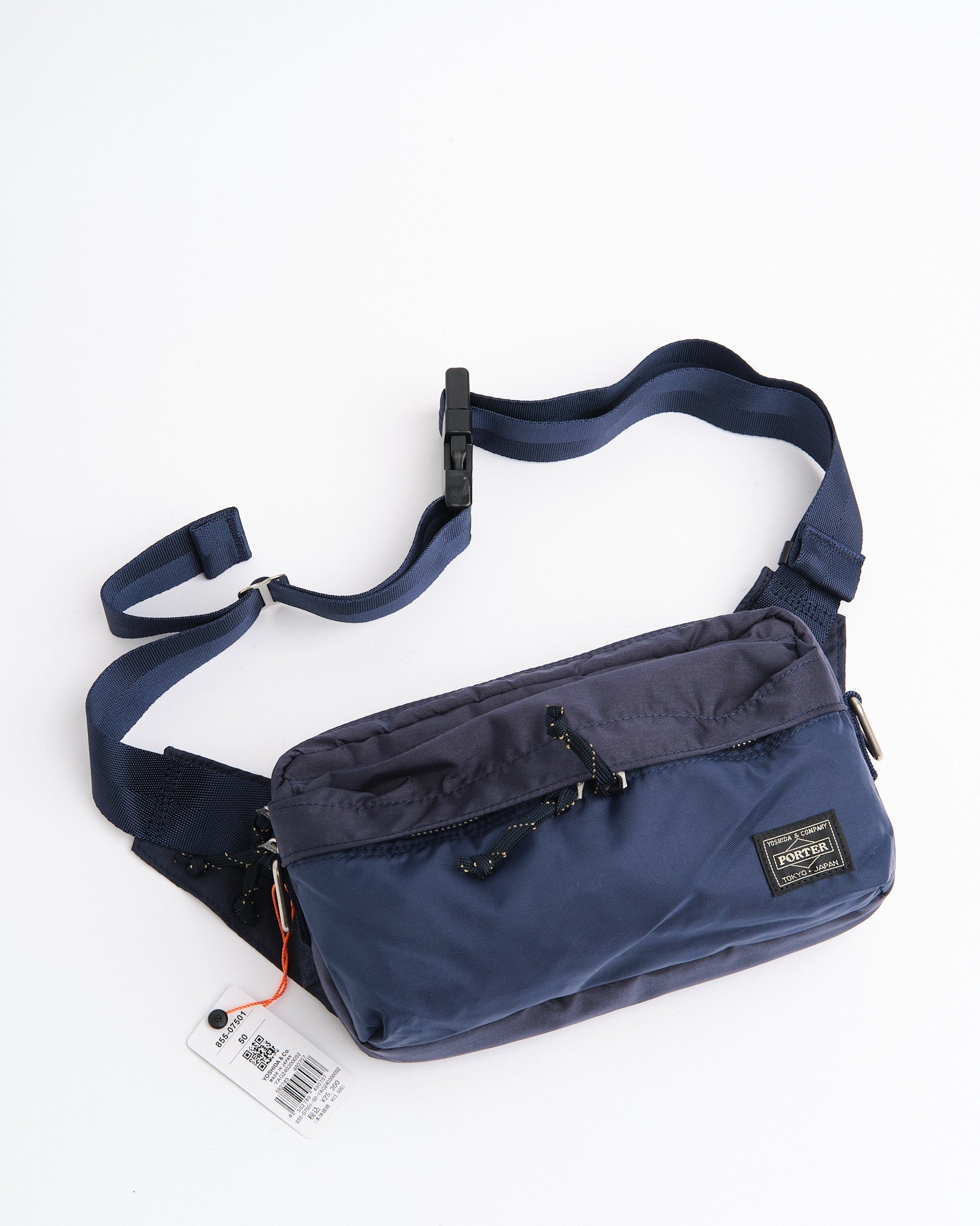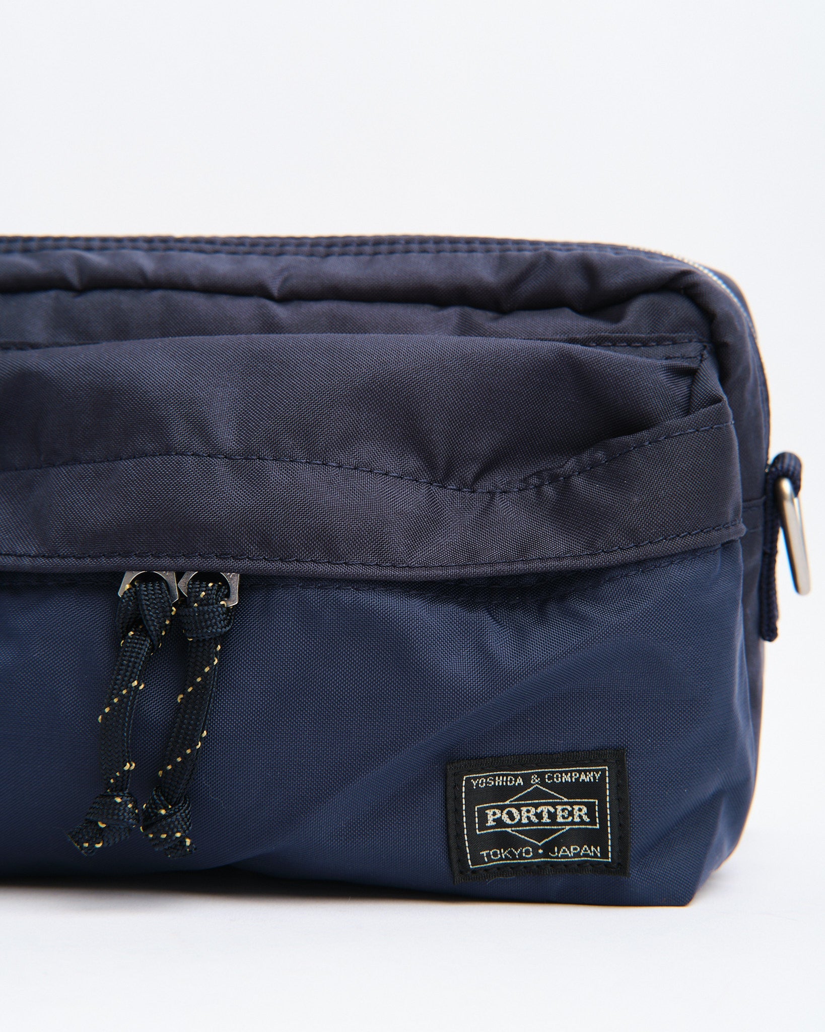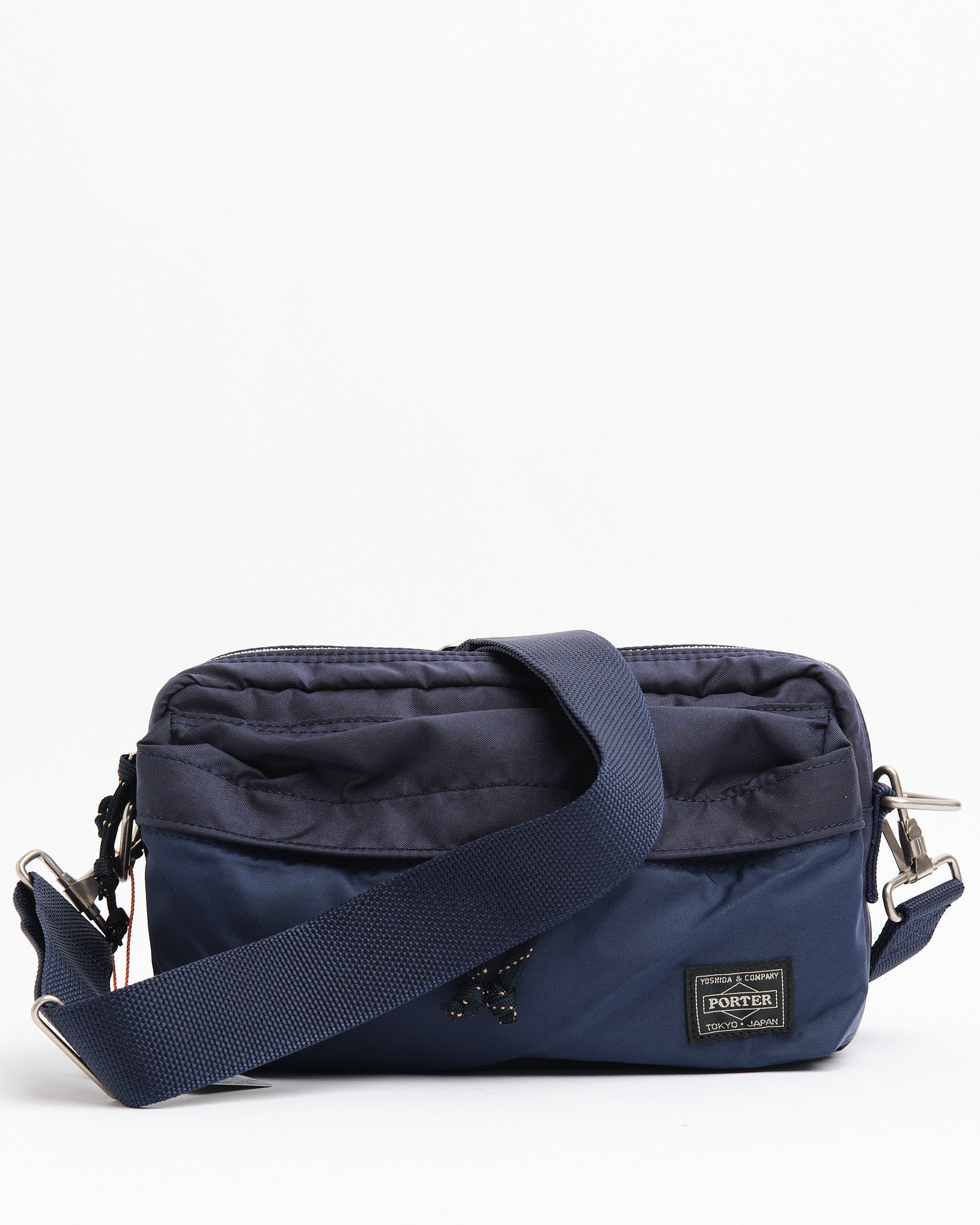 De PORTER BY YOSHIDA Force 2-Way Waist Bag maakt deel uit van de PORTER FORCE serie, geïnspireerd door militaire esthetiek en de toevallige kleurverschillen die in militaire goederen worden gevonden. Een kenmerkend kenmerk van dit ontwerp is de subtiele kleurvariatie tussen de stof van het voorvak en het hoofdlichaam van de tas, waardoor het lijkt alsof er verschillende stofpartijen worden gebruikt. Deze serie omarmt de onregelmatige kleurenschema's die van nature voorkomen in militaire kleding en accessoires.