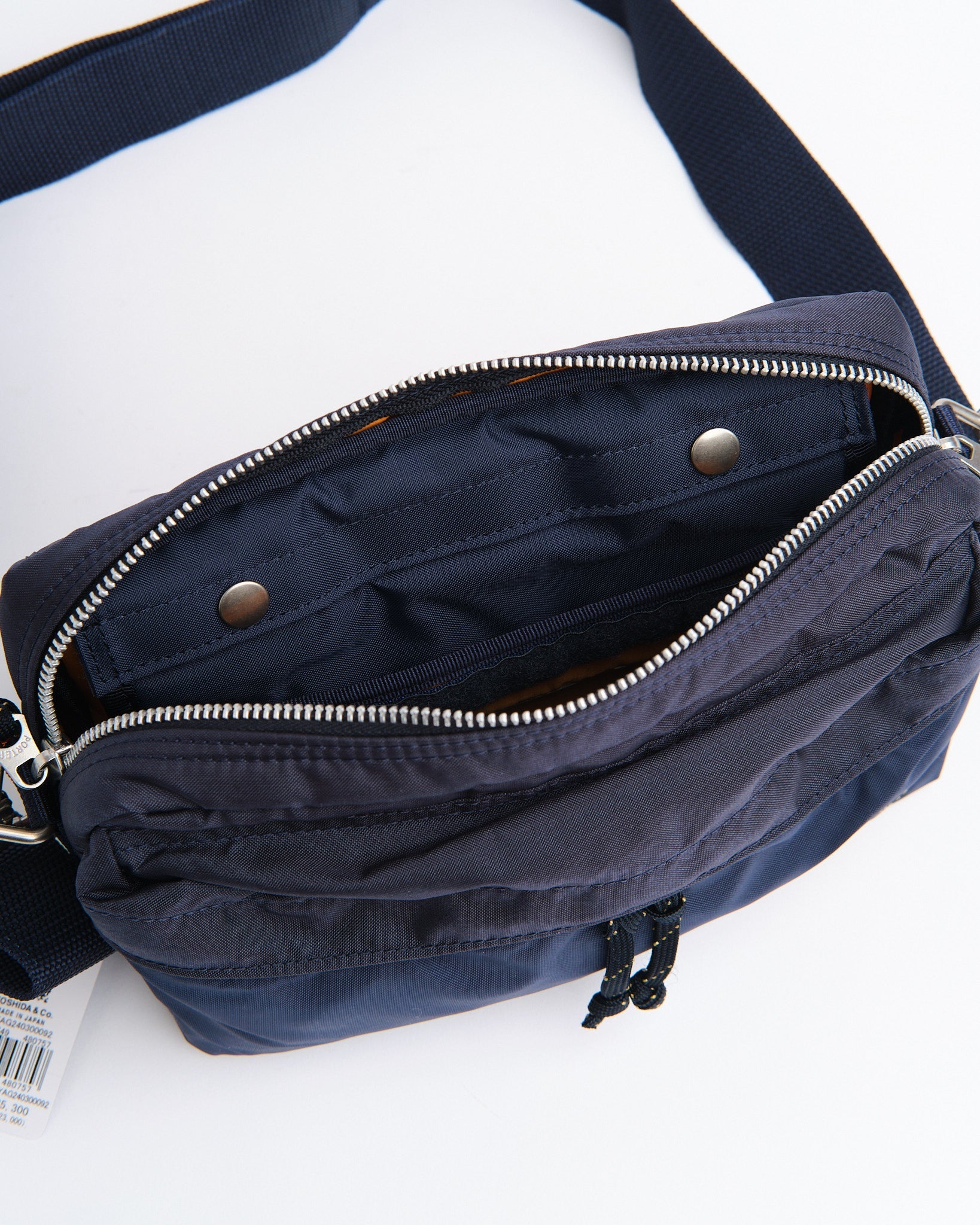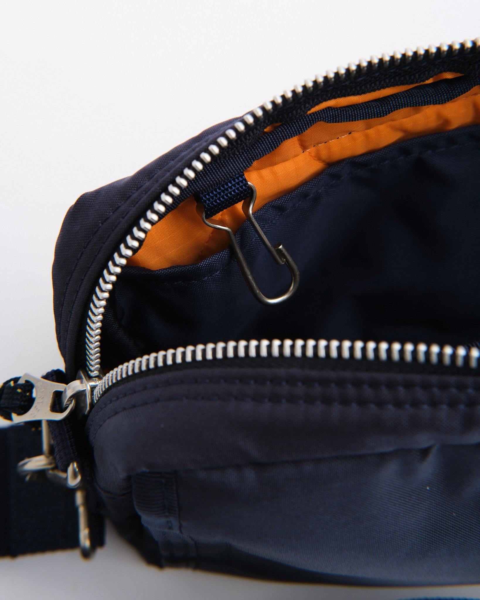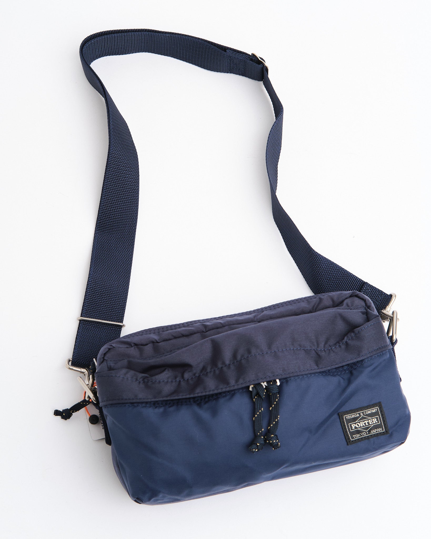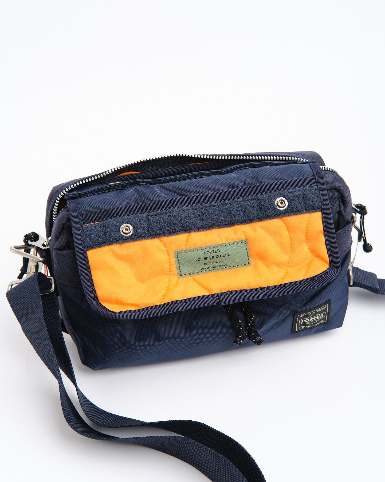 De PORTER BY YOSHIDA Force 2-Way Waist Bag maakt deel uit van de PORTER FORCE serie, geïnspireerd door militaire esthetiek en de toevallige kleurverschillen die in militaire goederen worden gevonden. Een kenmerkend kenmerk van dit ontwerp is de subtiele kleurvariatie tussen de stof van het voorvak en het hoofdlichaam van de tas, waardoor het lijkt alsof er verschillende stofpartijen worden gebruikt. Deze serie omarmt de onregelmatige kleurenschema's die van nature voorkomen in militaire kleding en accessoires.