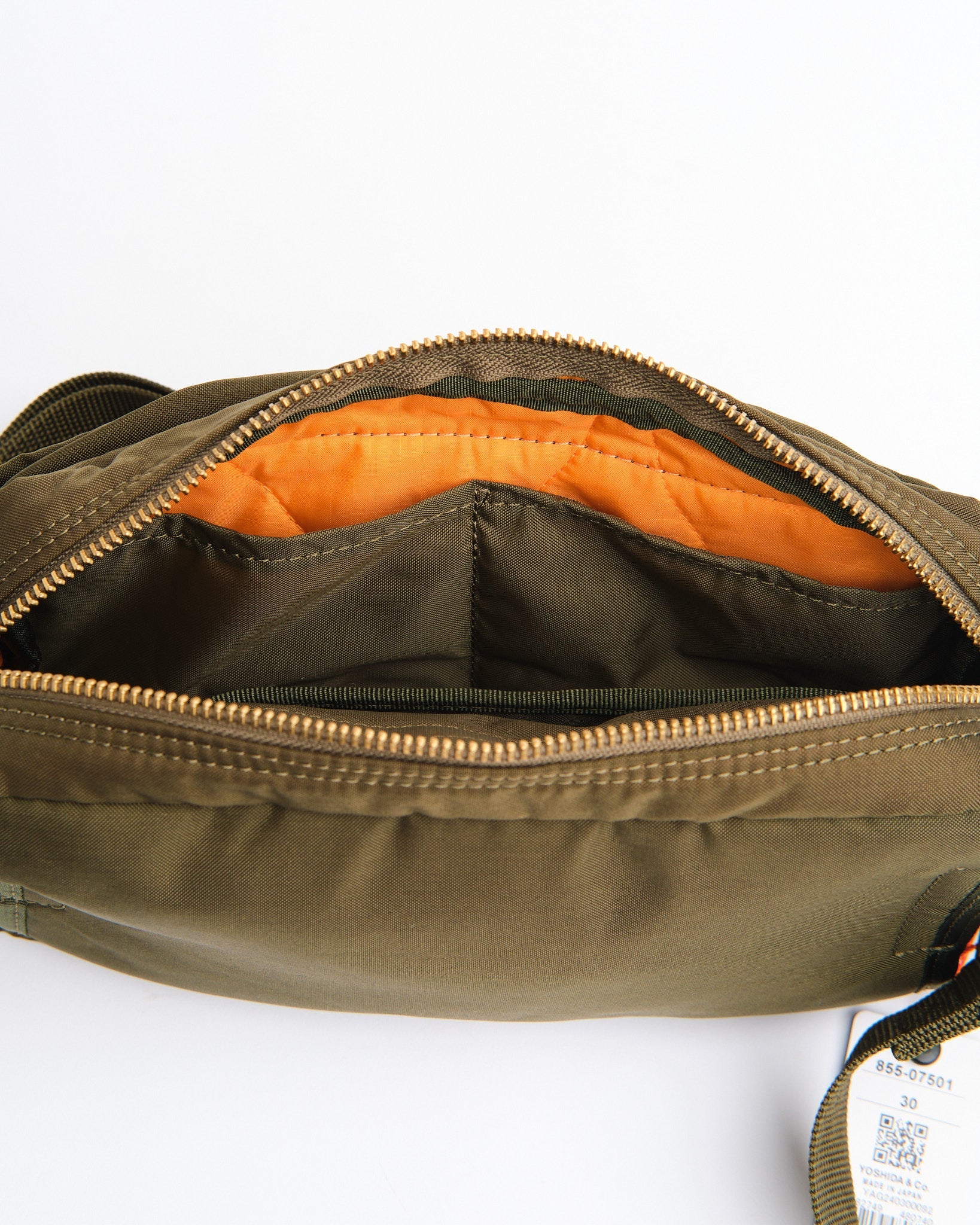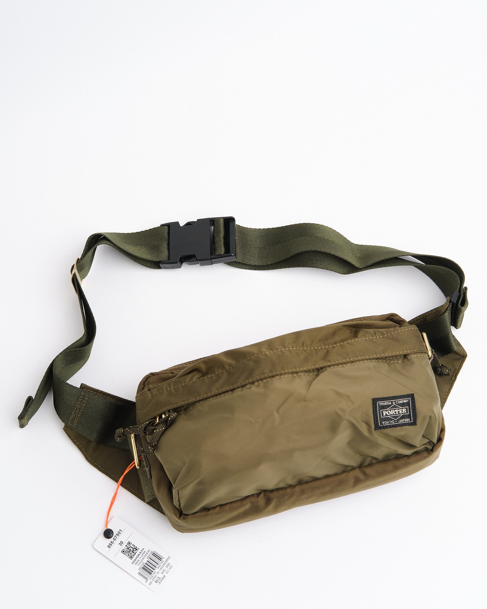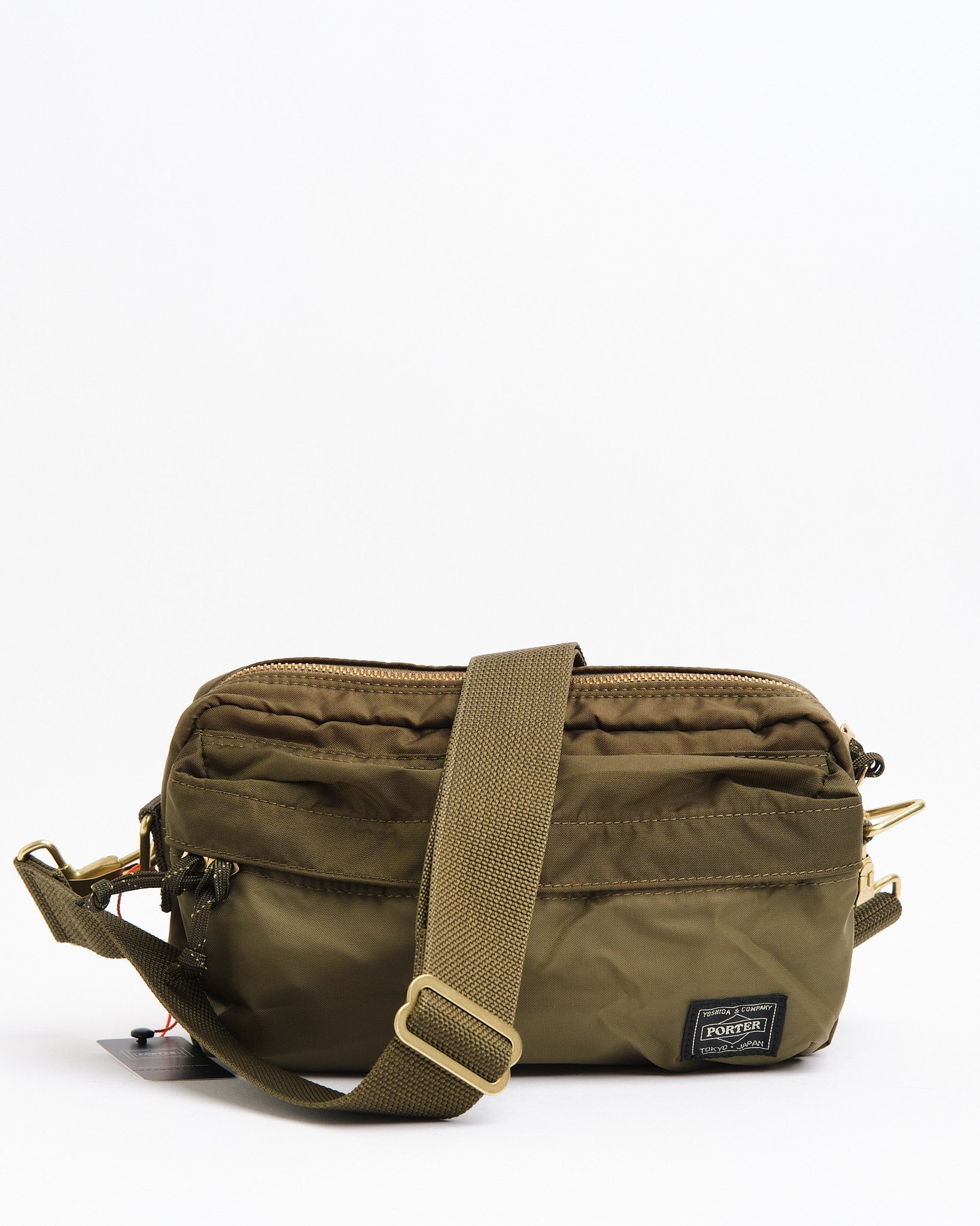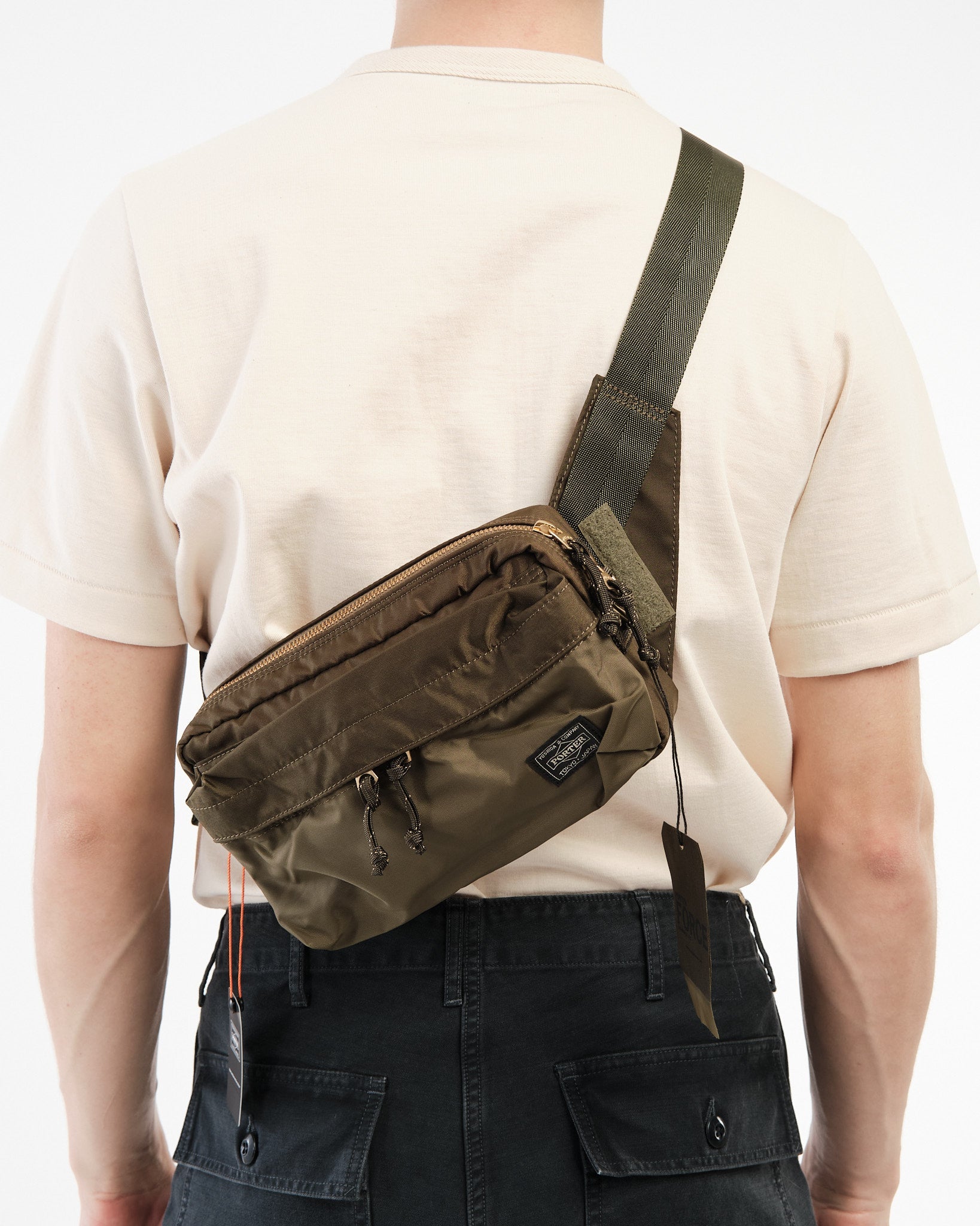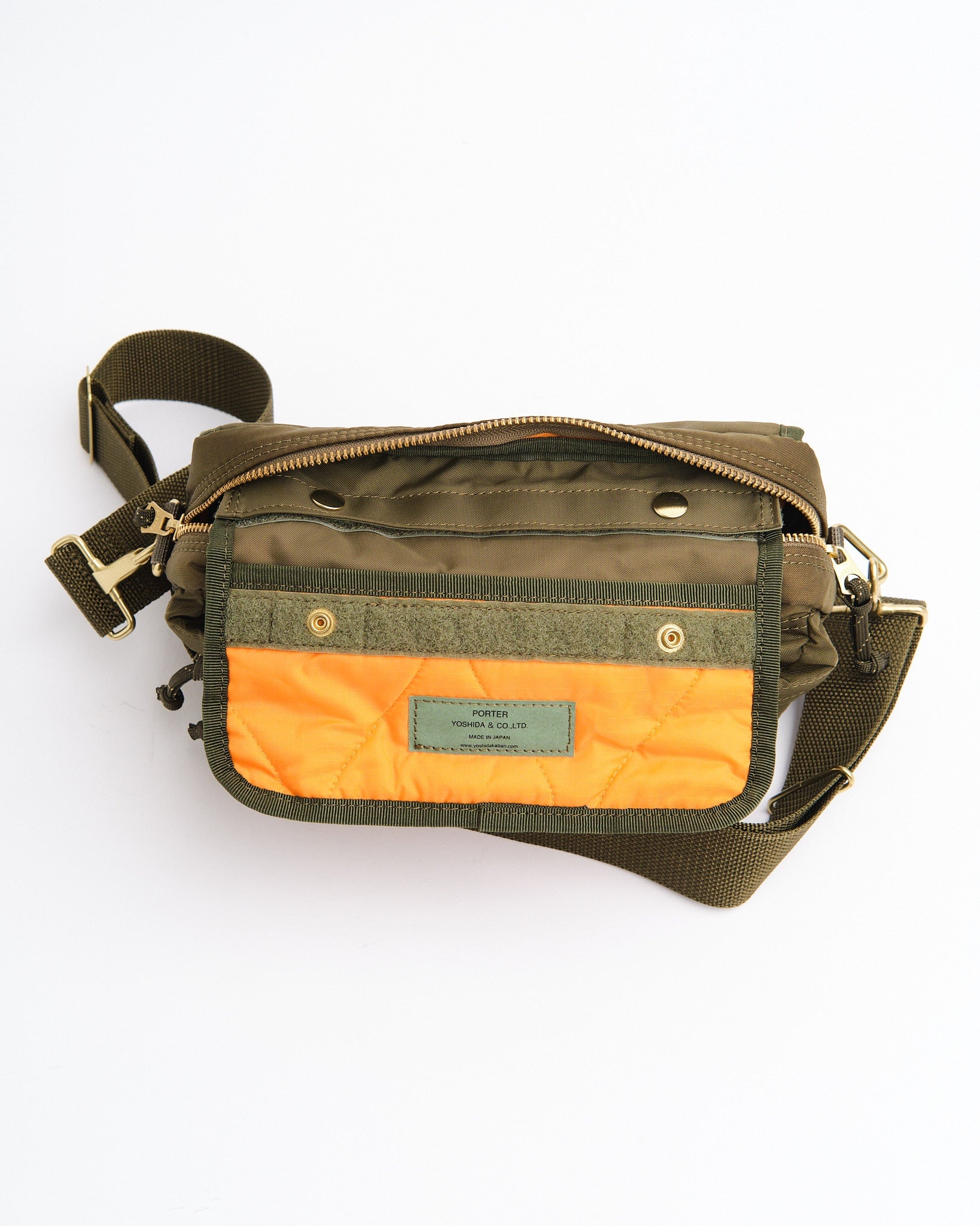 De PORTER BY YOSHIDA Force 2-Way Waist Bag maakt deel uit van de PORTER FORCE serie, geïnspireerd door militaire esthetiek en de toevallige kleurverschillen die in militaire goederen worden gevonden. Een kenmerkend kenmerk van dit ontwerp is de subtiele kleurvariatie tussen de stof van het voorvak en het hoofdlichaam van de tas, waardoor het lijkt alsof er verschillende stofpartijen worden gebruikt. Deze serie omarmt de onregelmatige kleurenschema's die van nature voorkomen in militaire kleding en accessoires.