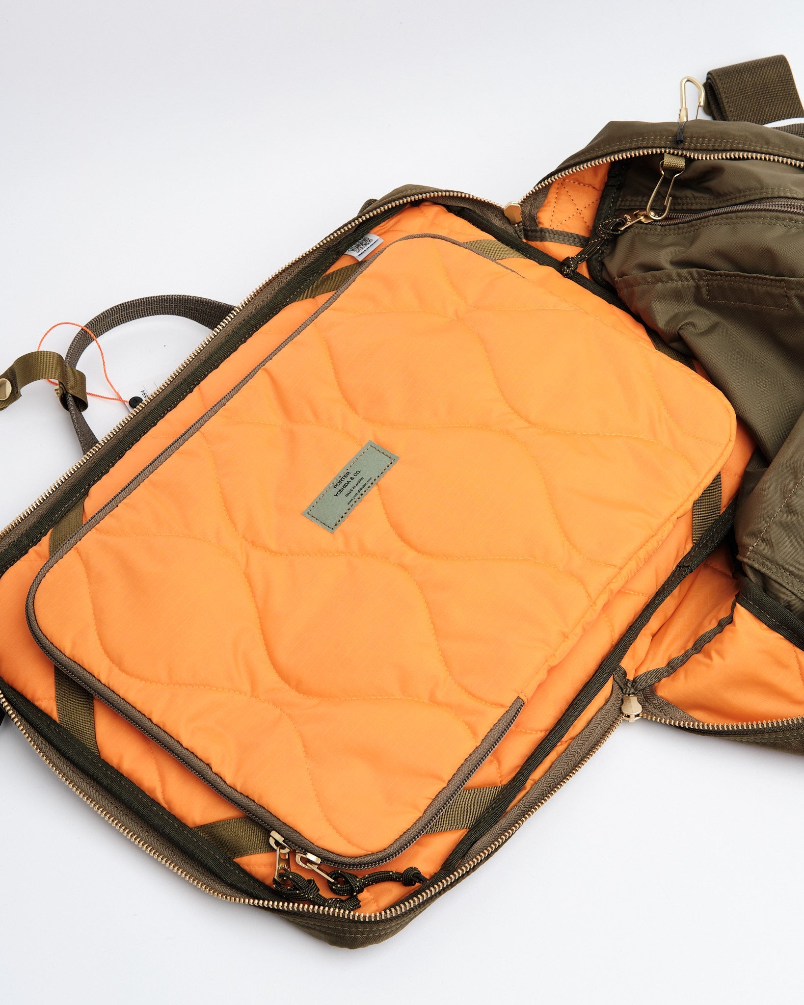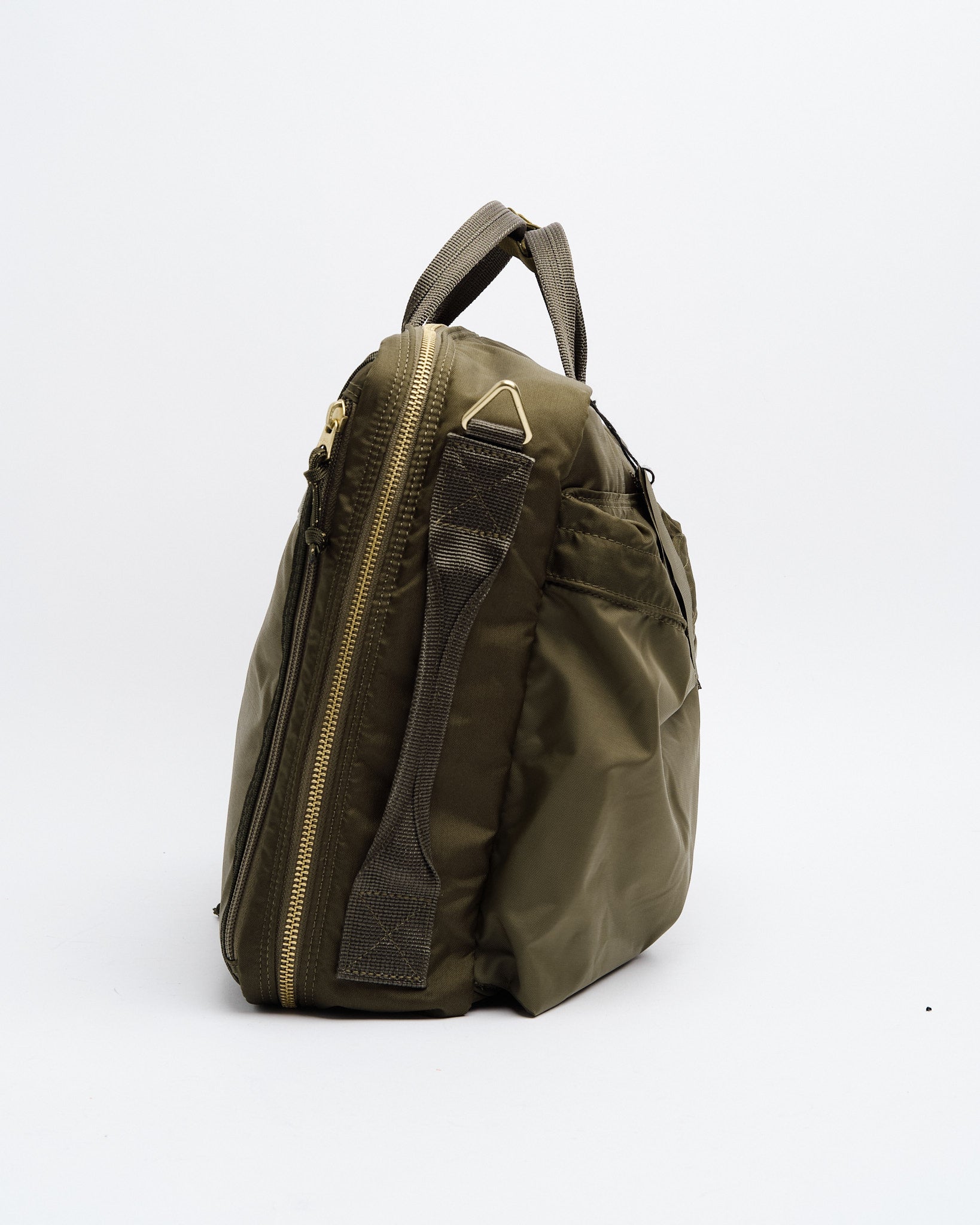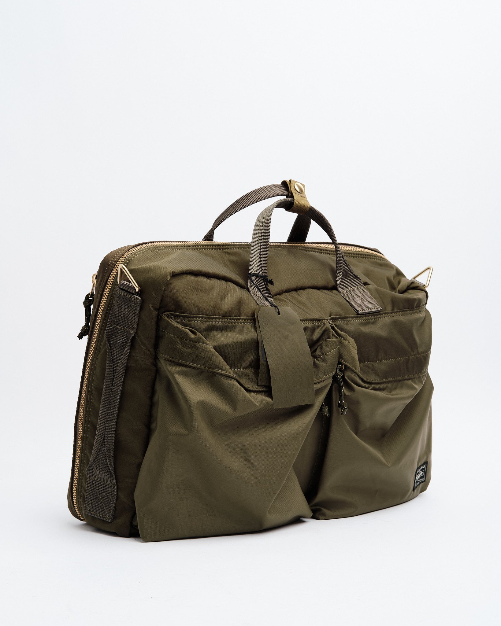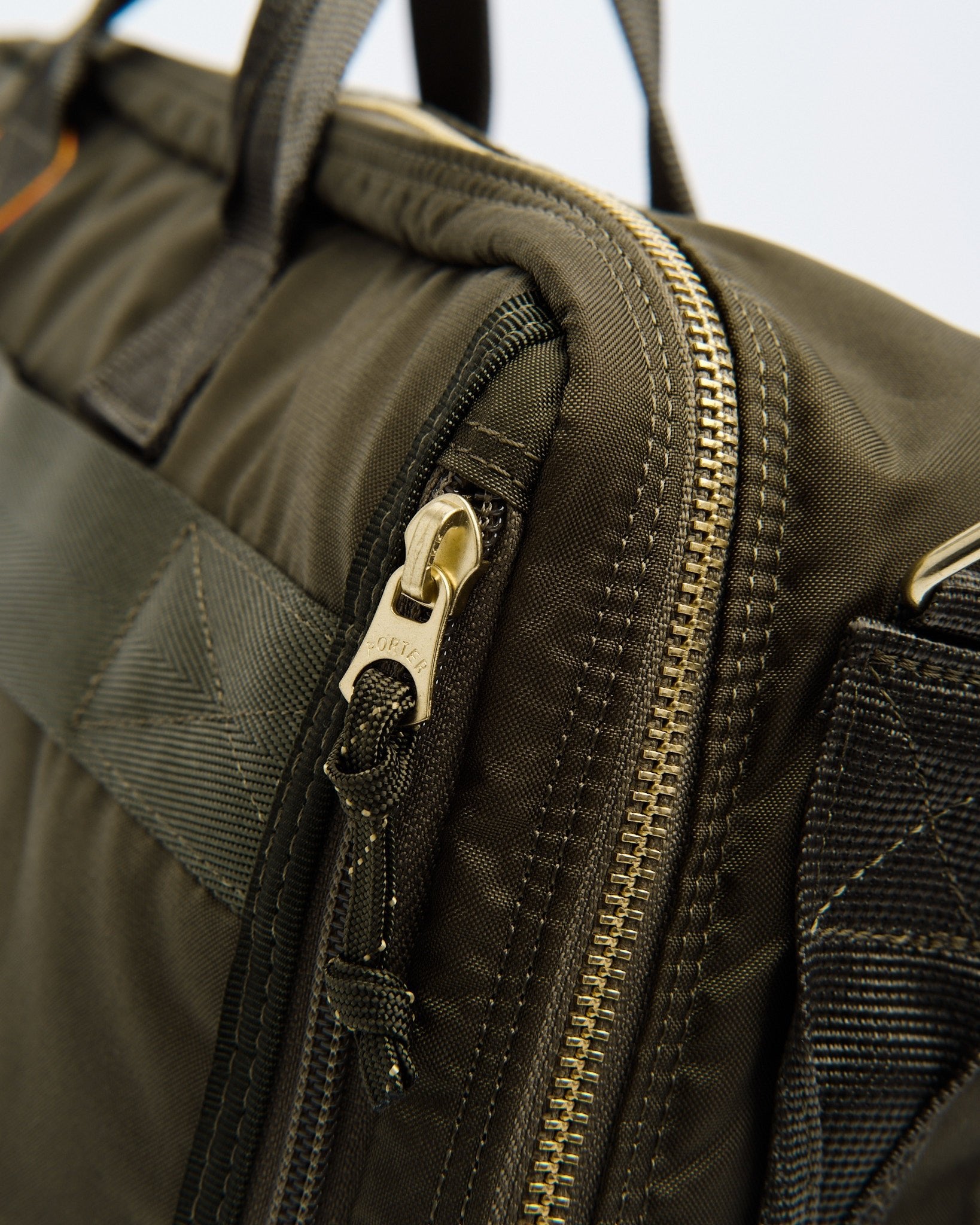 De PORTER BY YOSHIDA Force 3-Way Aktetas maakt deel uit van de PORTER FORCE serie, geïnspireerd door militaire esthetiek en de toevallige kleurverschillen gevonden in militaire goederen. Een opvallend kenmerk van dit ontwerp is de subtiele kleurvariatie tussen de stof van het voorvak en het hoofdgedeelte van de tas, wat de indruk wekt van het gebruik van verschillende stofpartijen. Deze serie viert de onregelmatige kleurenschema's gevonden in militaire kleding en accessoires.