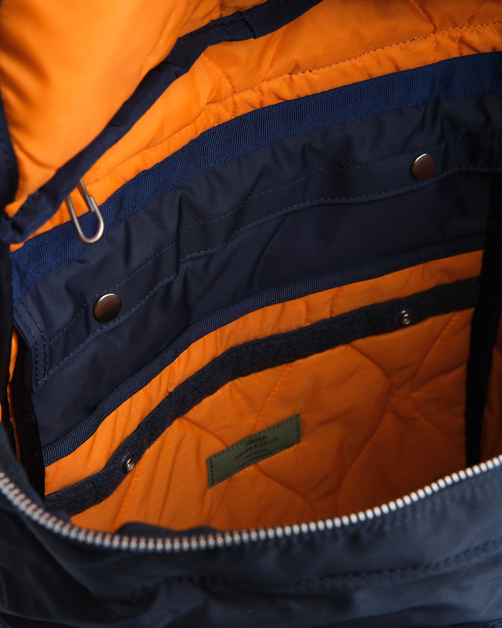 De Navy PORTER YOSHIDA Force Daypack (stijlcode 855-07596-50) is een rugzak die militair geïnspireerde esthetiek combineert met dagelijkse bruikbaarheid vanuit Japans vakmanschapsperspectief. Gemaakt met een stevige buitenkant van nylon en een gevoerde ripstop nylon binnenkant voor duurzaamheid en weerstand tegen slijtage; meet ongeveer 29 cm breed bij 41 cm hoog bij 13 cm diep (ongeveer 11 inch bij 16 inch bij 5 inch) en biedt voldoende ruimte voor je dagelijkse benodigdheden. De daypack komt met externe ritscompartimenten voor snelle toegang en een verwijderbare binnenzak, om dingen op orde te houden terwijl de gewatteerde schouderbanden extra comfort bieden bij het gebruik ervan.