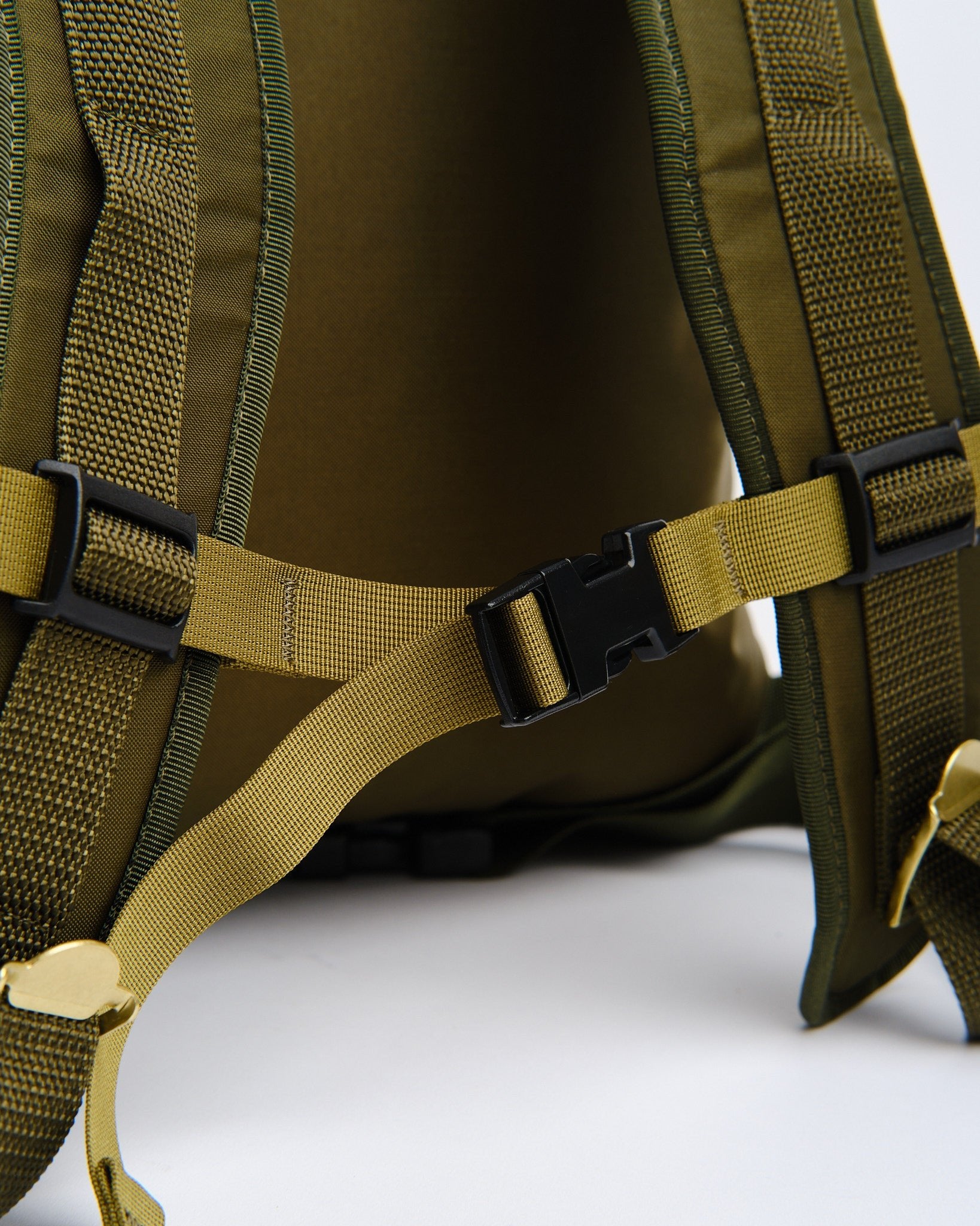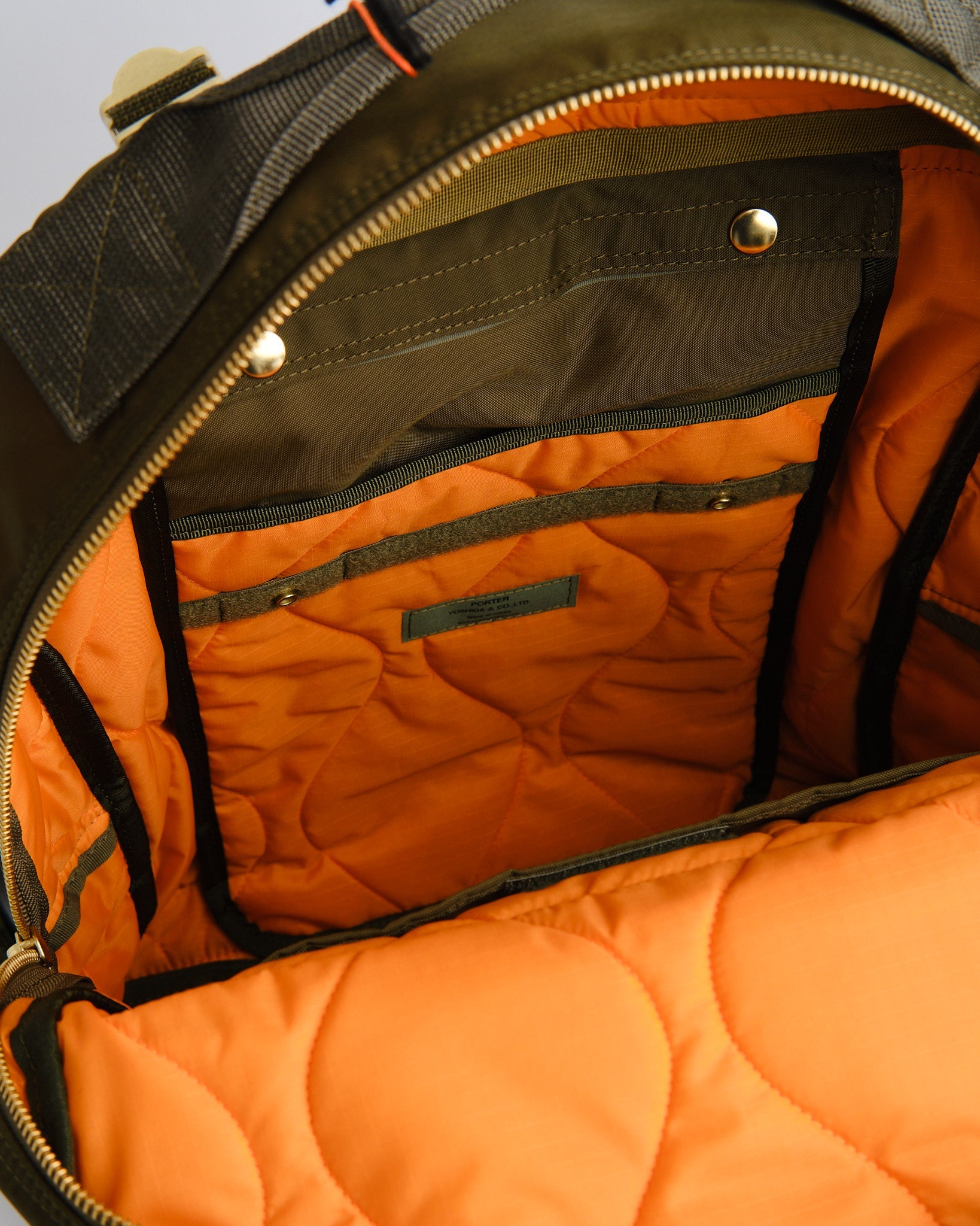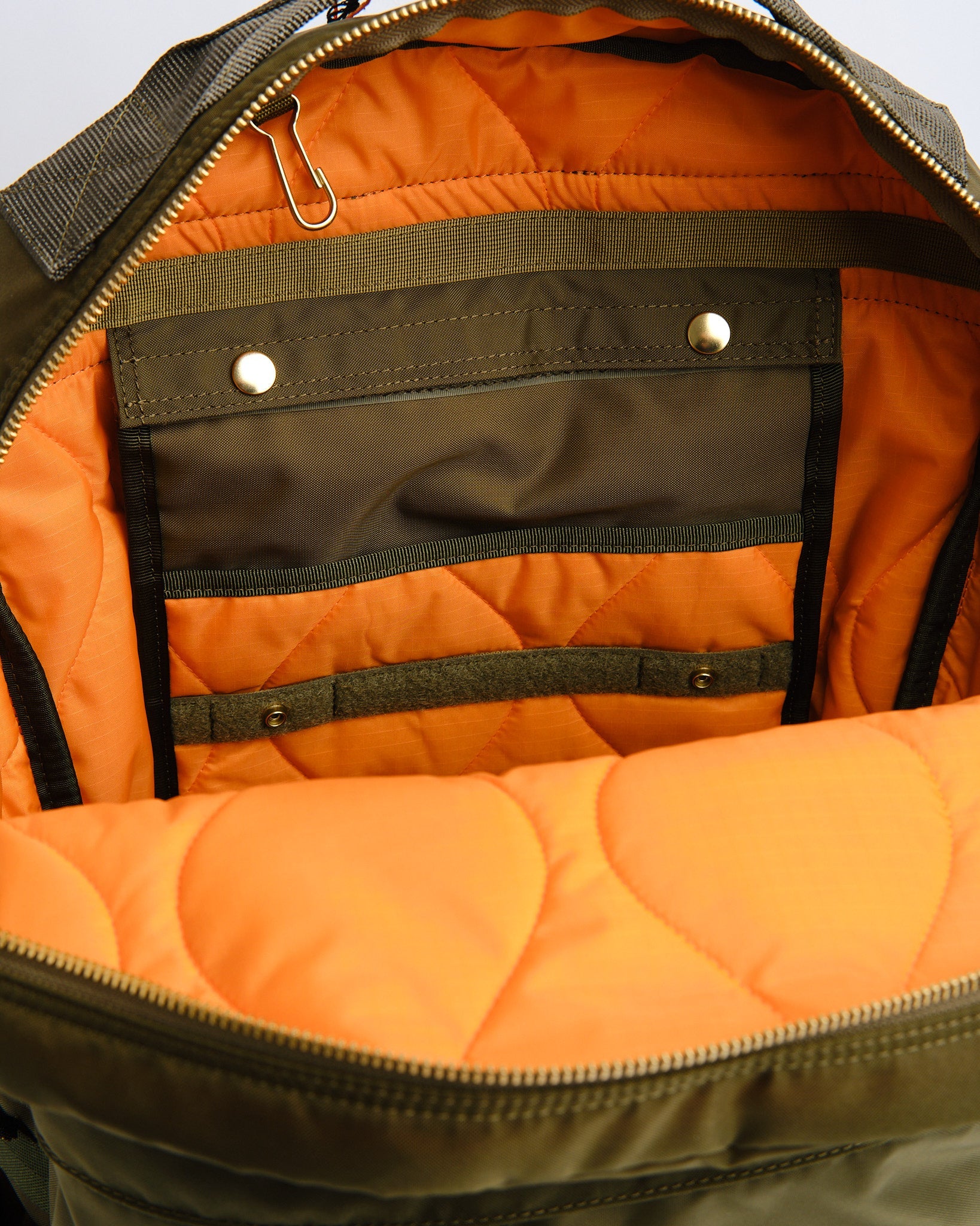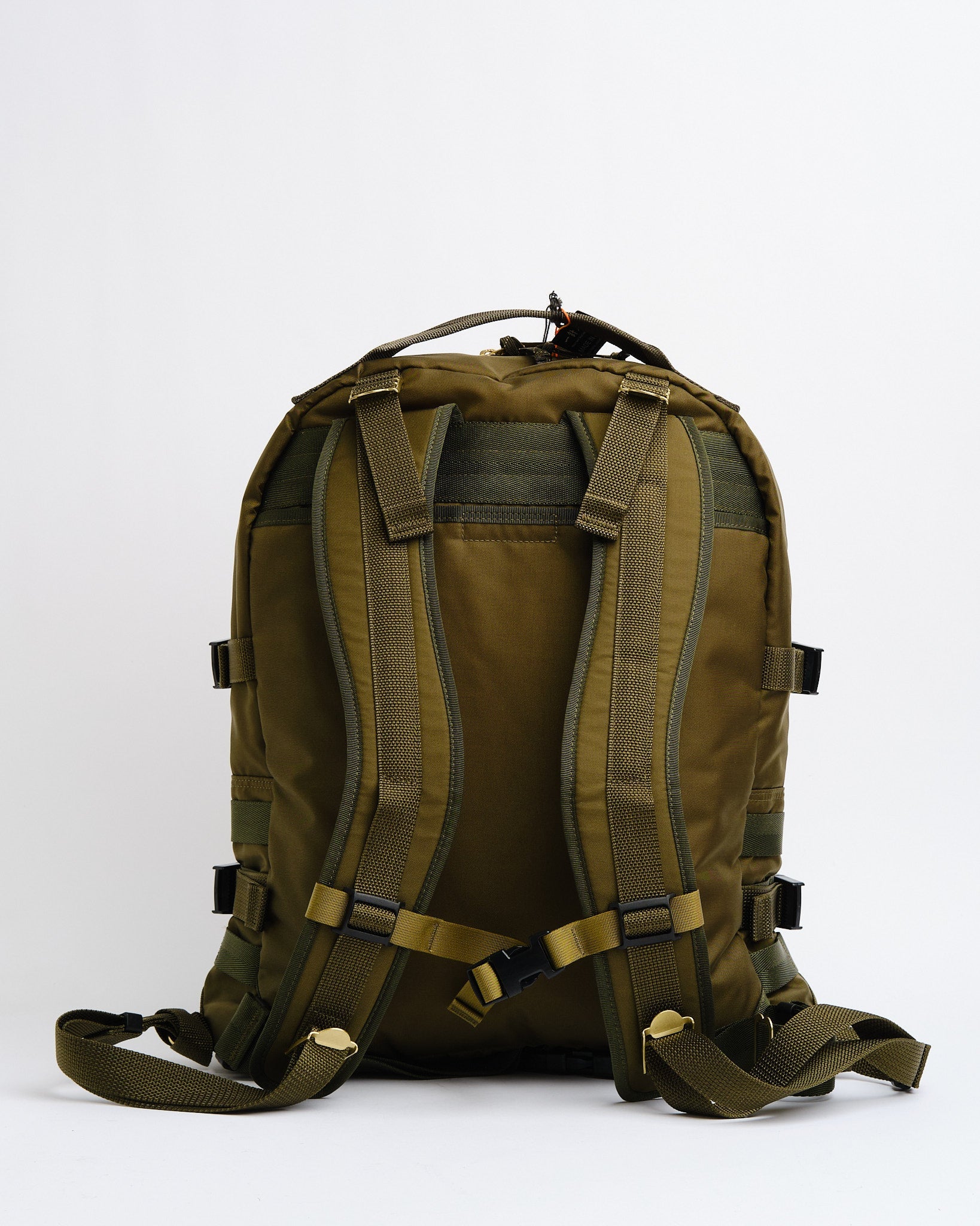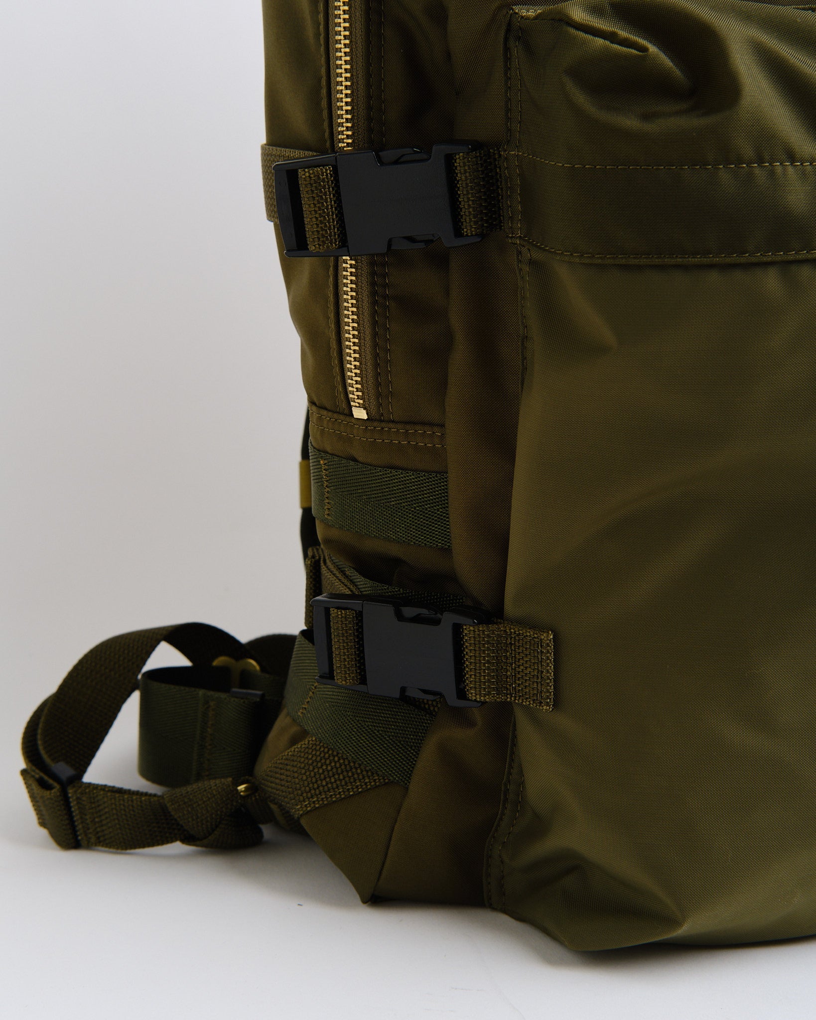 De PORTER BY YOSHIDA Force Daypack maakt deel uit van de PORTER FORCE serie, geïnspireerd door militaire esthetiek en de toevallige kleurverschillen die in militaire goederen worden gevonden. Een opvallend kenmerk van dit ontwerp is de subtiele kleurvariatie tussen de stof van het voorvak en het hoofdlichaam, waardoor het lijkt alsof er verschillende stofpartijen worden gebruikt. Deze serie viert de onregelmatige kleurenschema's die in militaire kleding en accessoires worden gevonden.
