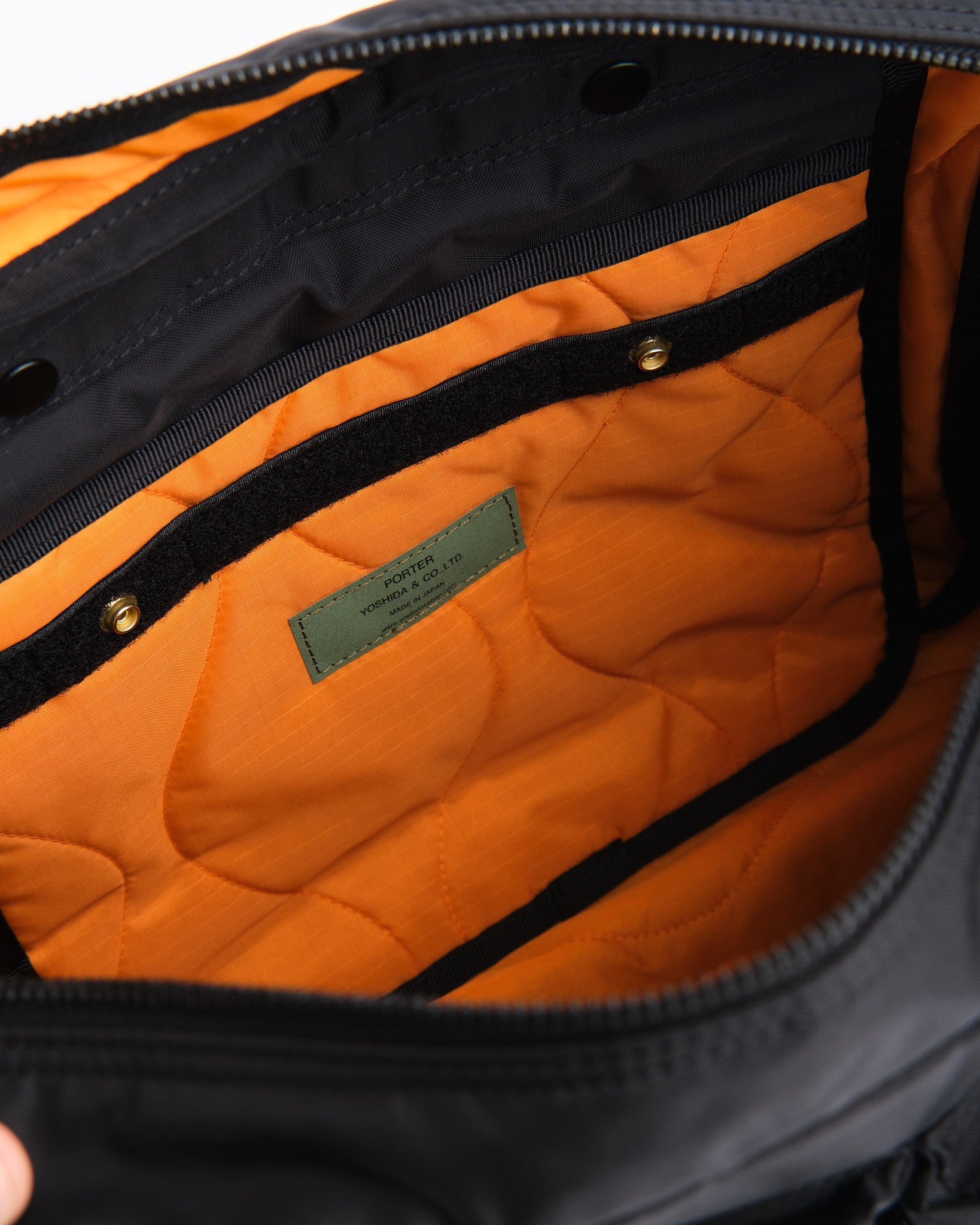 De PORTER BY YOSHIDA Force Schoudertas maakt deel uit van de PORTER FORCE serie, die inspiratie haalt uit militaire esthetiek en de toevallige kleurverschillen die te vinden zijn in militaire goederen. Een opvallend kenmerk van dit ontwerp is de subtiele kleurvariatie tussen de stof van het voorvak en het hoofdgedeelte van de tas, waardoor het lijkt alsof er verschillende stofpartijen zijn gebruikt. Deze serie viert deze onregelmatige kleurenschema's, die vaak te zien zijn in militaire kleding en accessoires.
