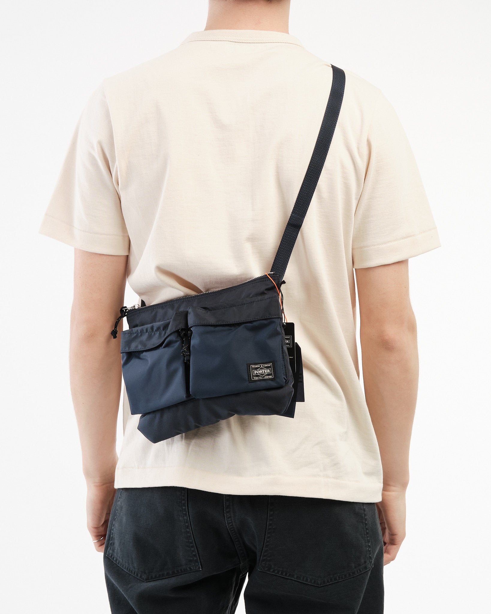 De PORTER BY YOSHIDA Force Schoudertas maakt deel uit van de PORTER FORCE serie, geïnspireerd door militaire esthetiek en de toevallige kleurverschillen die in militaire goederen worden gevonden. Het meest opvallende kenmerk van deze tas is de subtiele kleurvariatie tussen de stof van het voorvak en het hoofdgedeelte van de tas, wat de indruk geeft dat er verschillende stofpartijen zijn gebruikt. Deze serie viert de onregelmatige kleurenschema's die van nature kunnen voorkomen in militaire kleding en tassen.