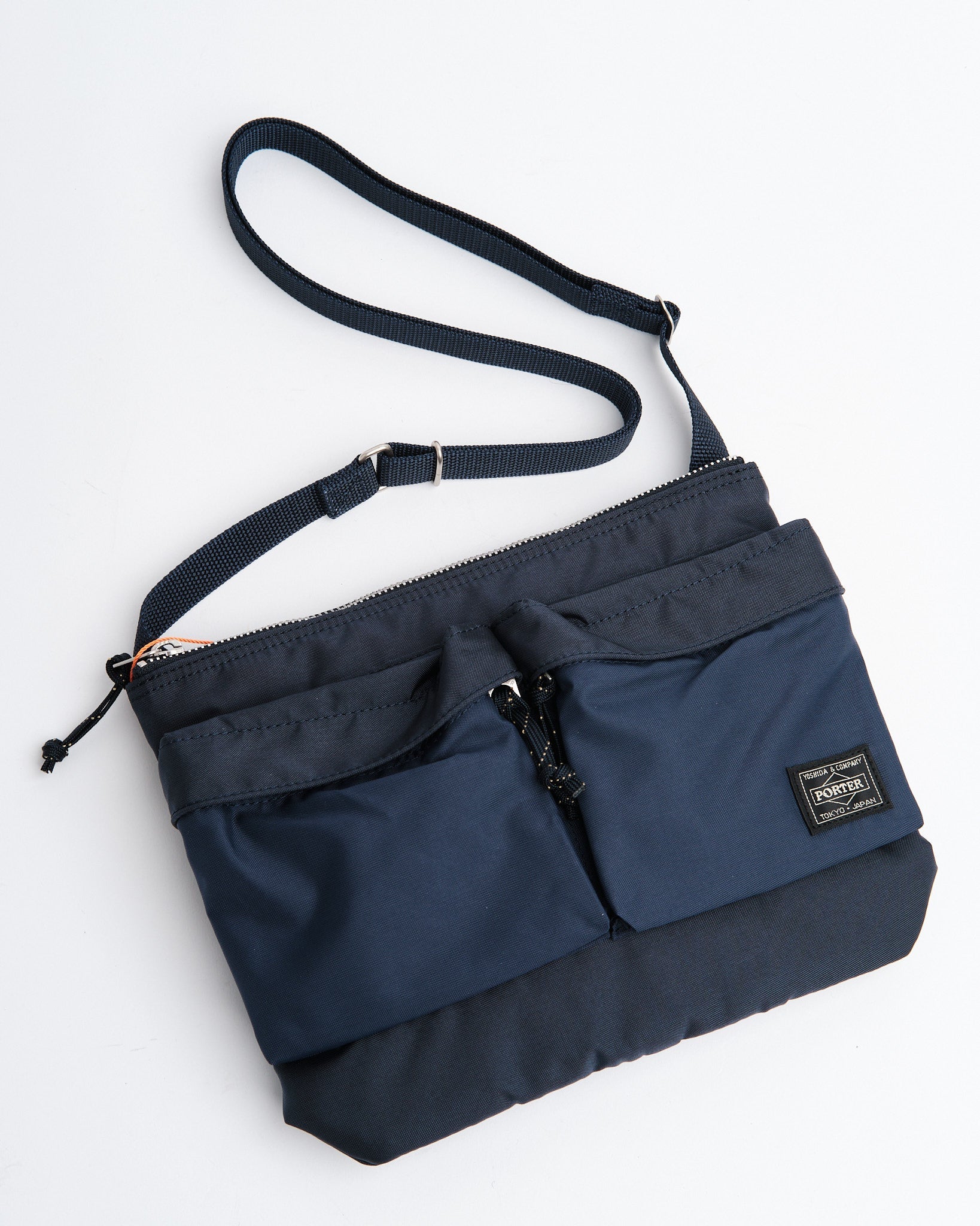De PORTER BY YOSHIDA Force Schoudertas maakt deel uit van de PORTER FORCE serie, geïnspireerd door militaire esthetiek en de toevallige kleurverschillen die in militaire goederen worden gevonden. Het meest opvallende kenmerk van deze tas is de subtiele kleurvariatie tussen de stof van het voorvak en het hoofdgedeelte van de tas, wat de indruk geeft dat er verschillende stofpartijen zijn gebruikt. Deze serie viert de onregelmatige kleurenschema's die van nature kunnen voorkomen in militaire kleding en tassen.