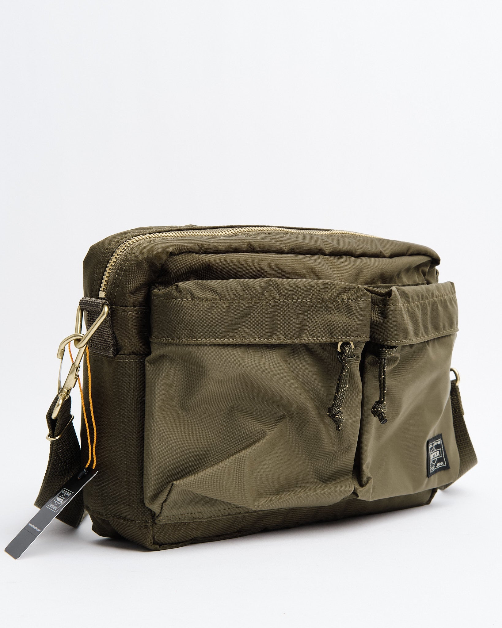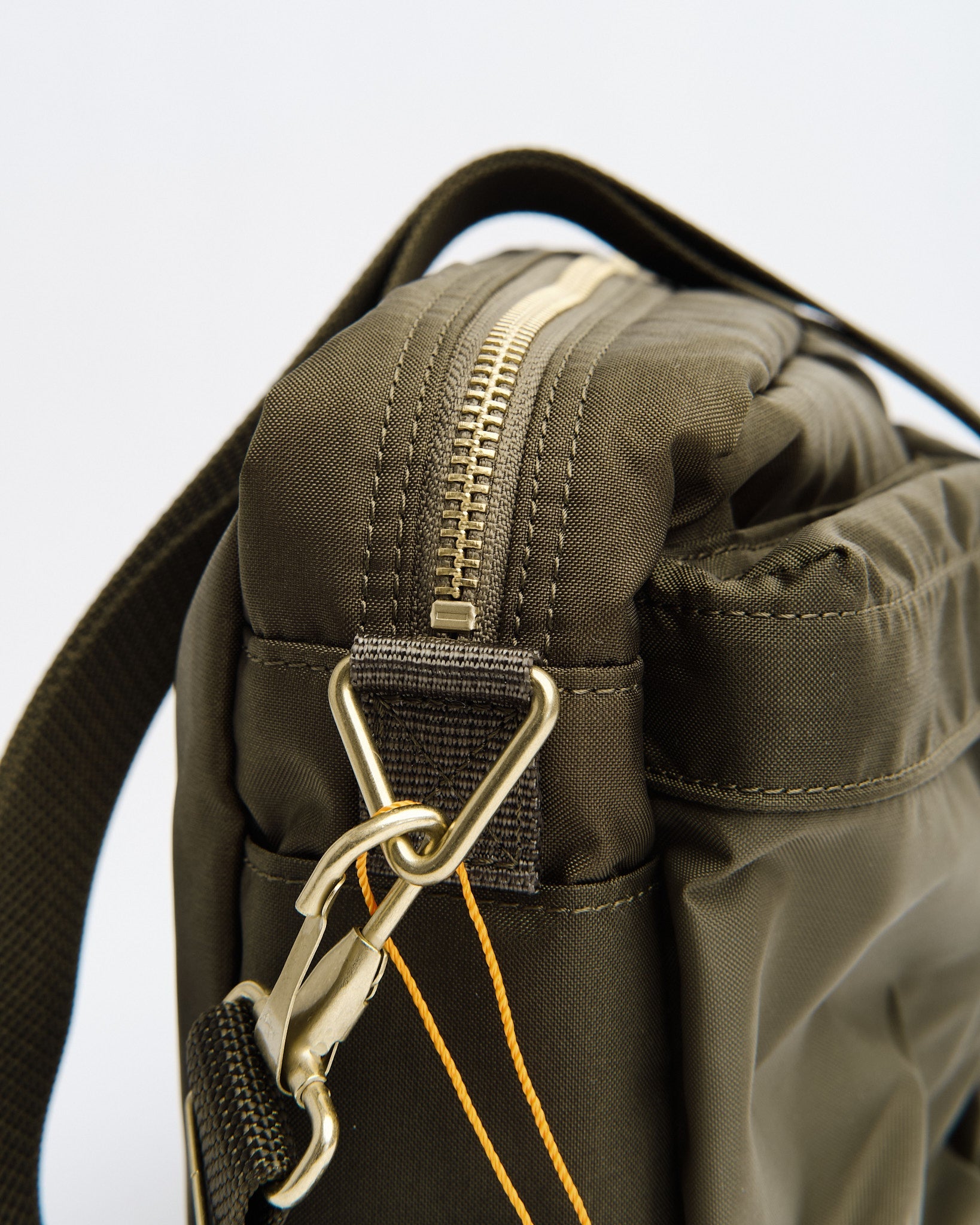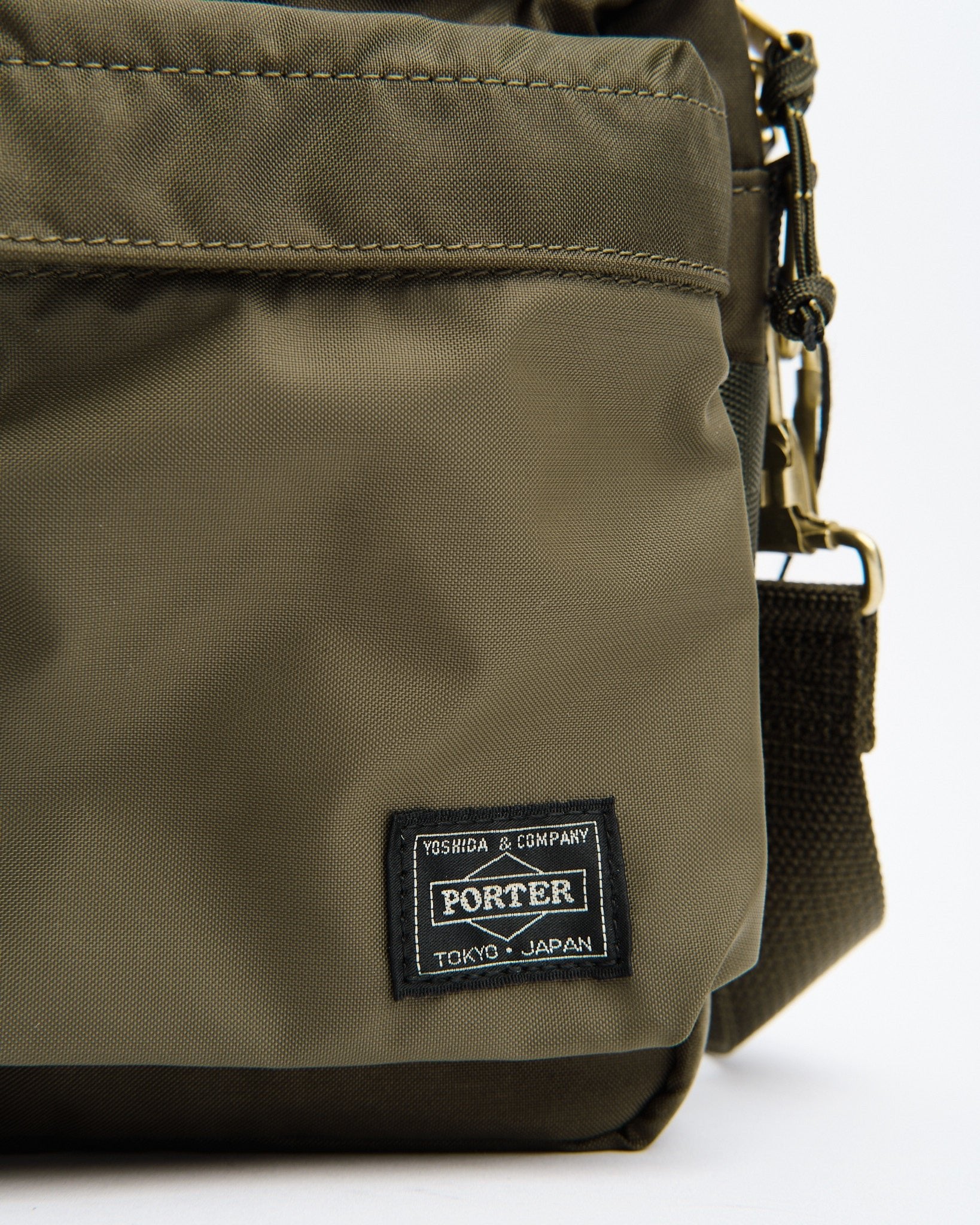 De PORTER BY YOSHIDA Force Schoudertas (S) maakt deel uit van de PORTER FORCE-serie, die inspiratie haalt uit militaire esthetiek en de toevallige kleurverschillen die in militaire goederen worden gevonden. Een opvallend kenmerk van dit ontwerp is de subtiele kleurvariatie tussen de stof van het voorvak en het hoofdgedeelte van de tas, wat de indruk geeft van het gebruik van verschillende stofpartijen. Deze serie viert deze onregelmatige kleurenschema's, vaak gevonden in militaire kleding en accessoires.