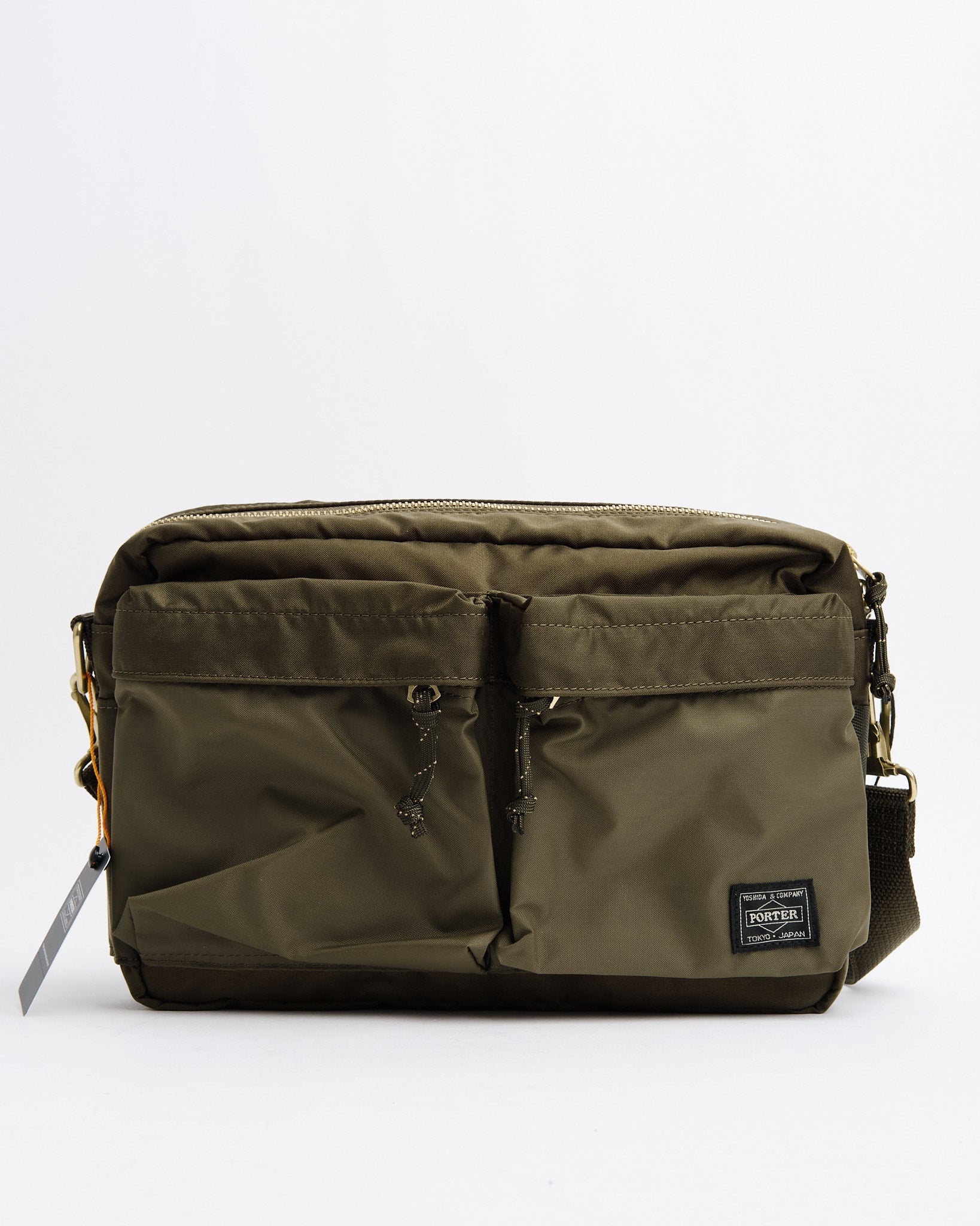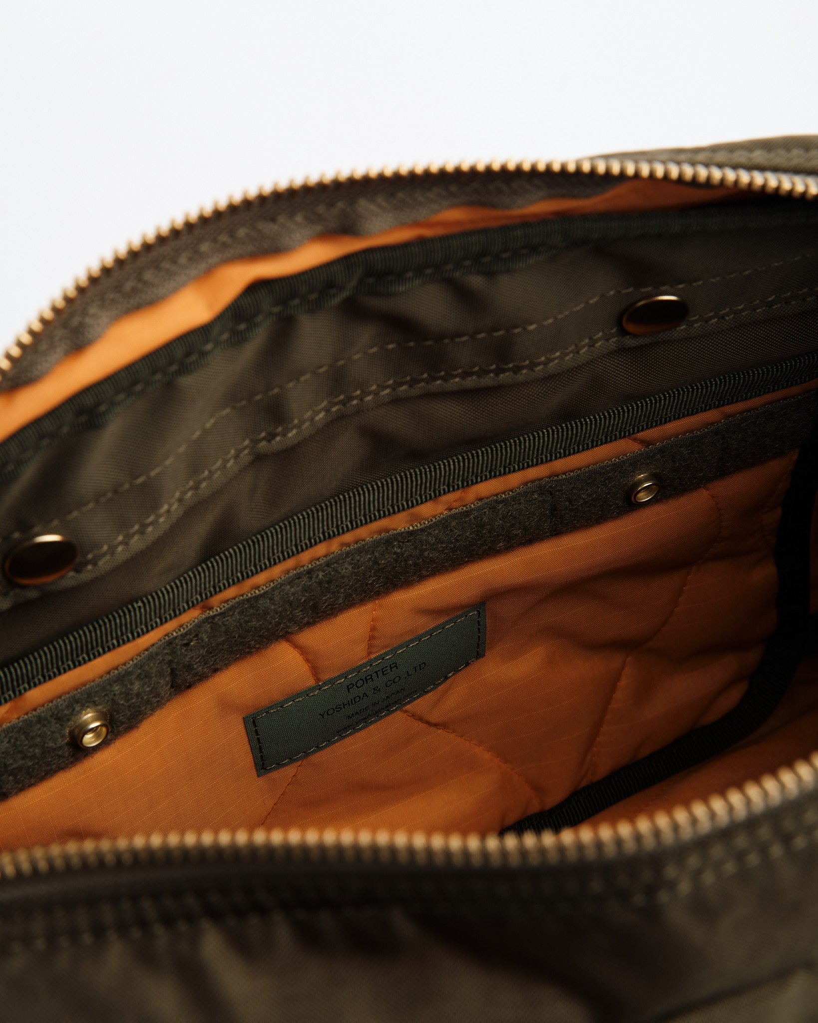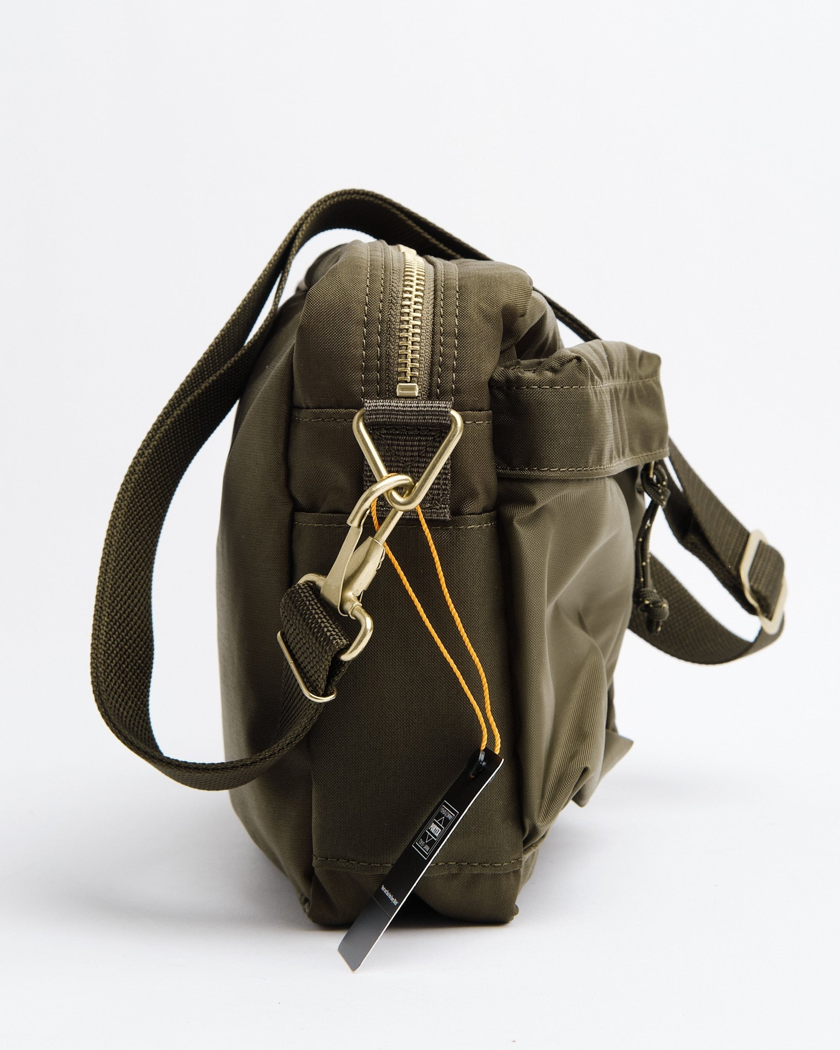 De PORTER BY YOSHIDA Force Schoudertas (S) maakt deel uit van de PORTER FORCE-serie, die inspiratie haalt uit militaire esthetiek en de toevallige kleurverschillen die in militaire goederen worden gevonden. Een opvallend kenmerk van dit ontwerp is de subtiele kleurvariatie tussen de stof van het voorvak en het hoofdgedeelte van de tas, wat de indruk geeft van het gebruik van verschillende stofpartijen. Deze serie viert deze onregelmatige kleurenschema's, vaak gevonden in militaire kleding en accessoires.