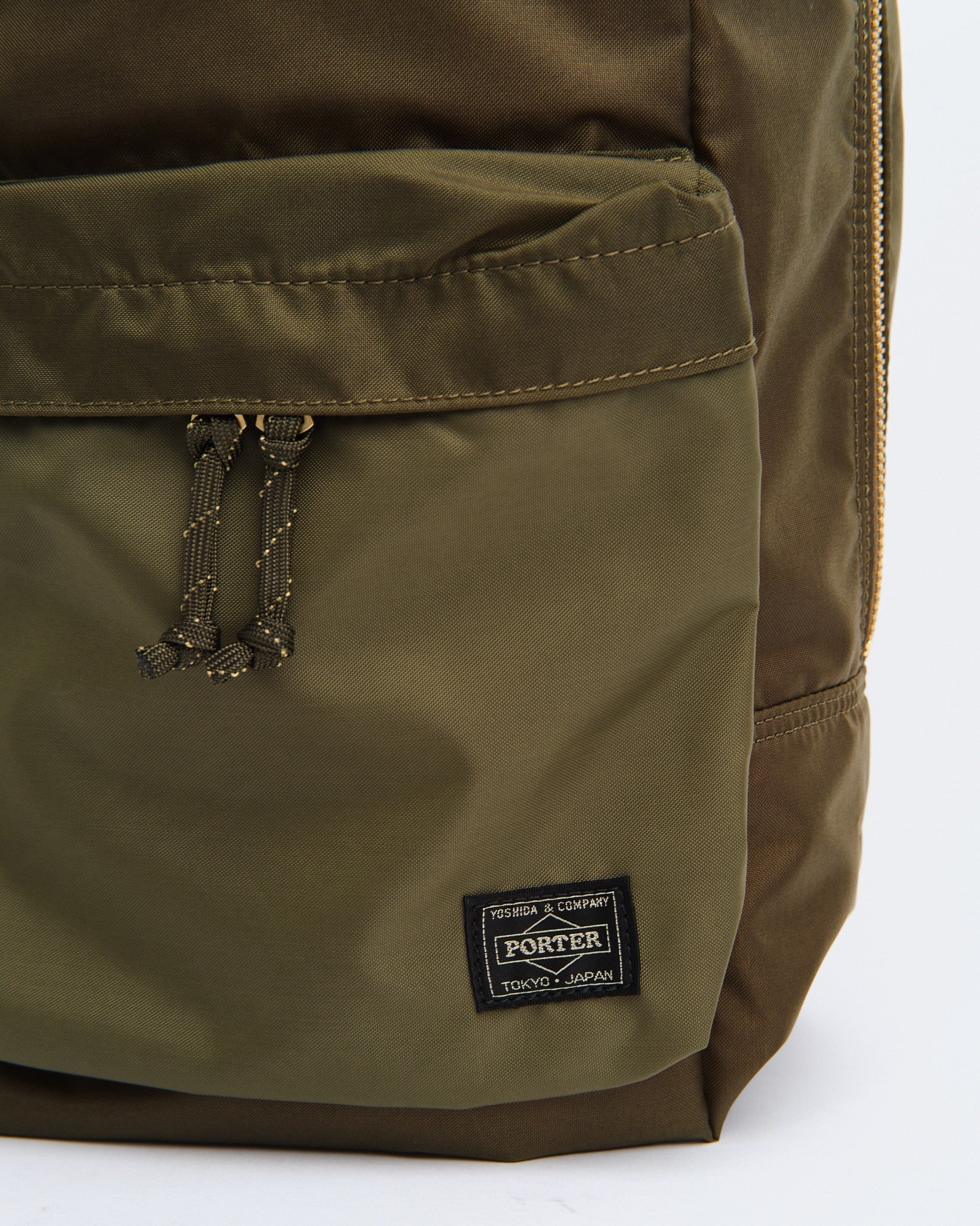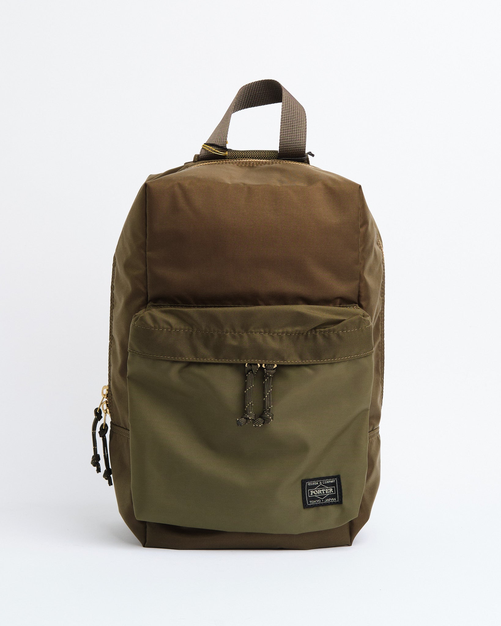 Introductie van de Olive Drab Sling Schoudertas van PORTER door Yoshida, ook bekend als de "FORCE Series" Sling Schoudertas. Deze casual tas heeft een militair geïnspireerd ontwerp en beschikt over unieke toevallige kleurverschillen die zelden te zien zijn op militaire items.