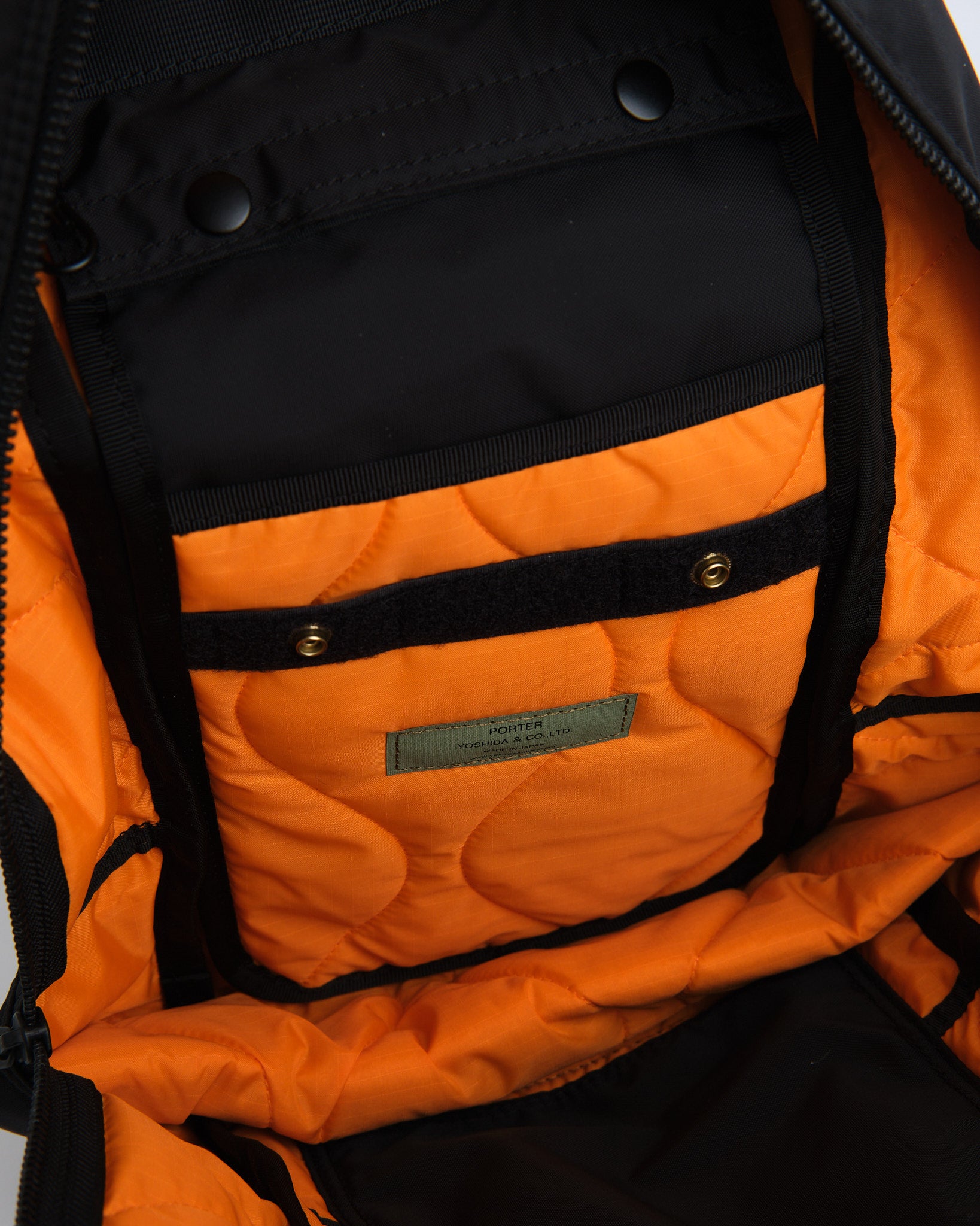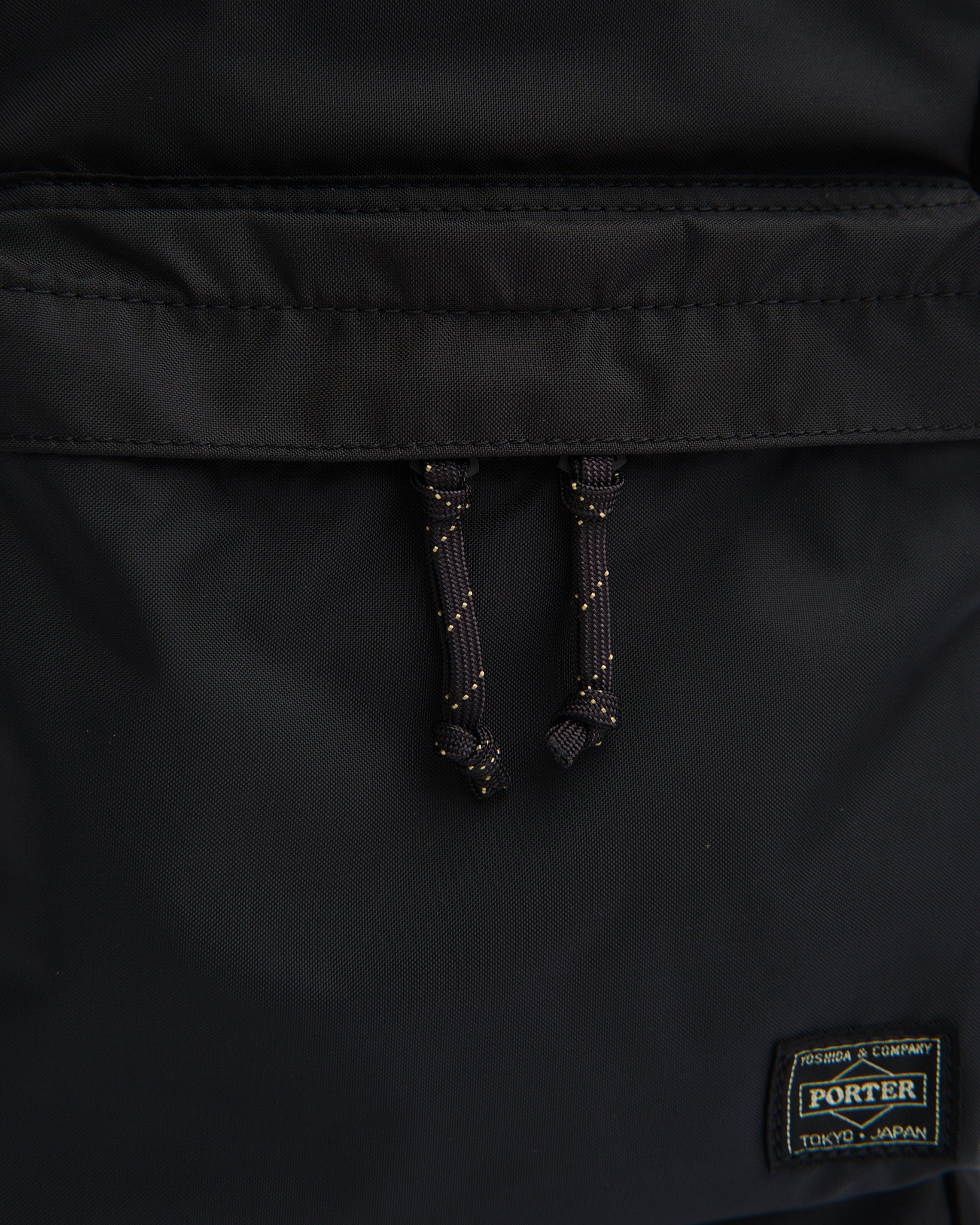 Vervaardigd met industrieel-grade 210 denier 6 nylon hoge tenaciteit garens, deze zwarte PORTER tas is gebouwd om lang mee te gaan. De unieke kleuronregelmatigheid tussen de voorzak en het lichaam creëert een uiterlijk van verschillende partijen, wat bijdraagt aan zijn ruige charme. Een verwijderbare zak fungeert als een etui, wat extra functionaliteit biedt.