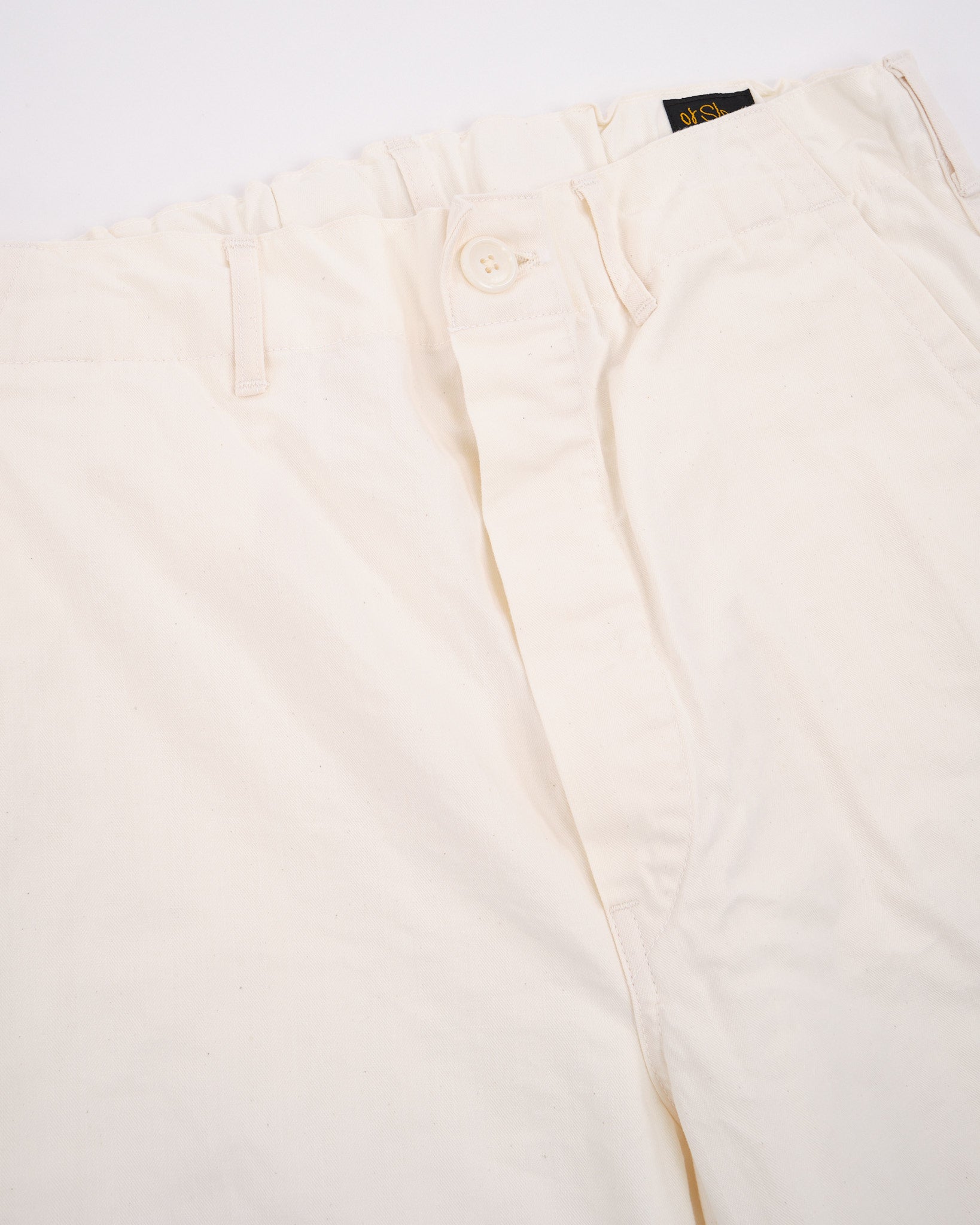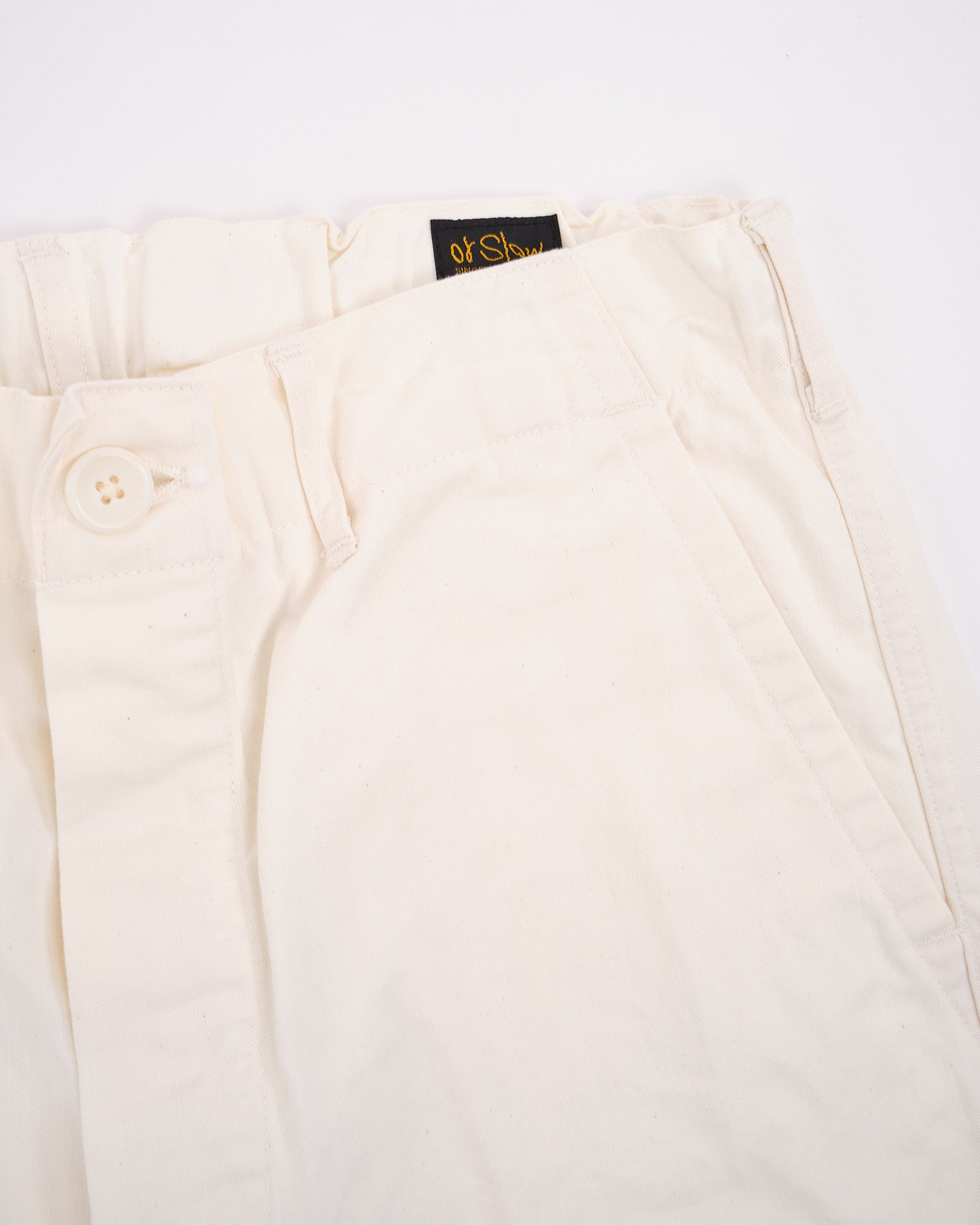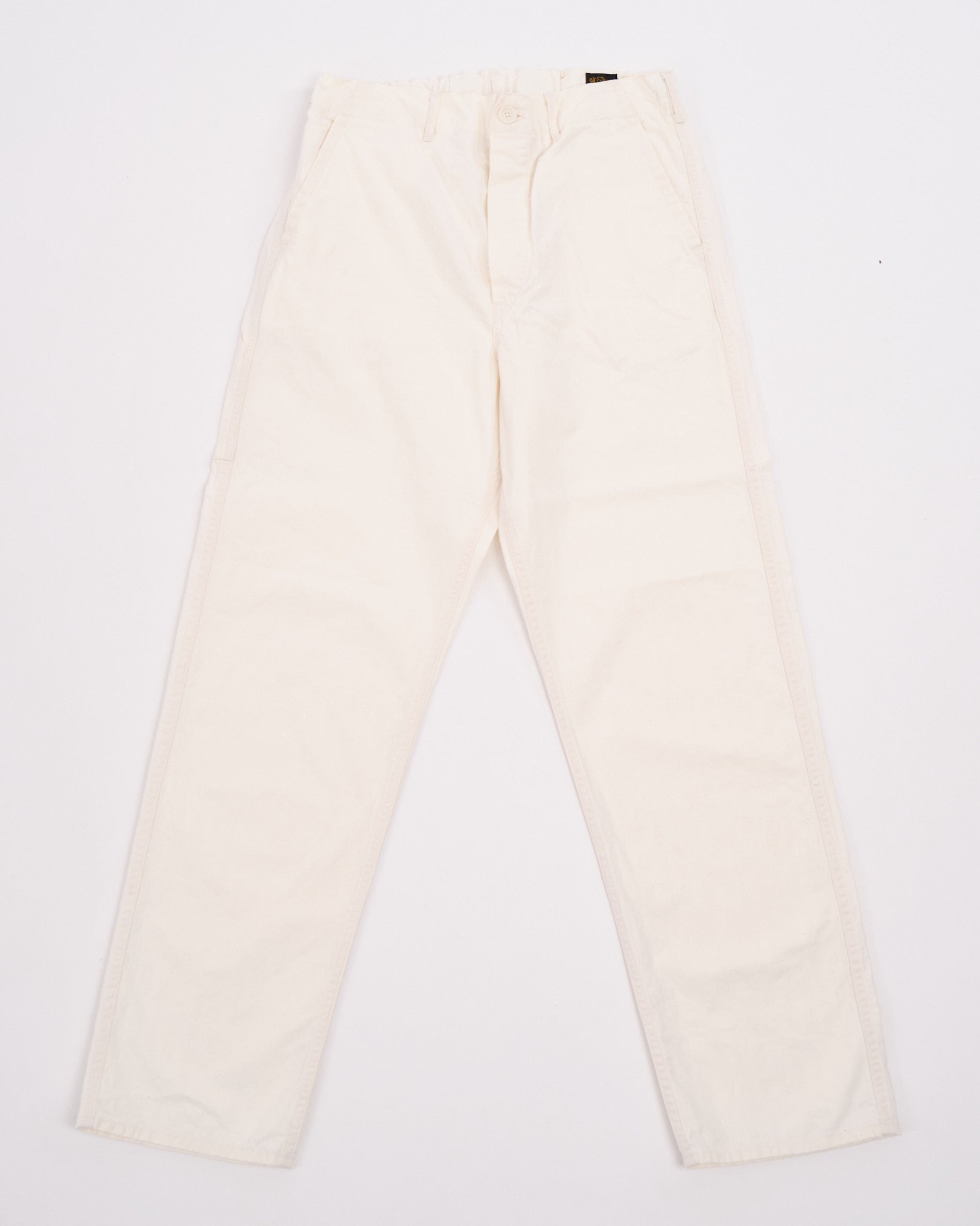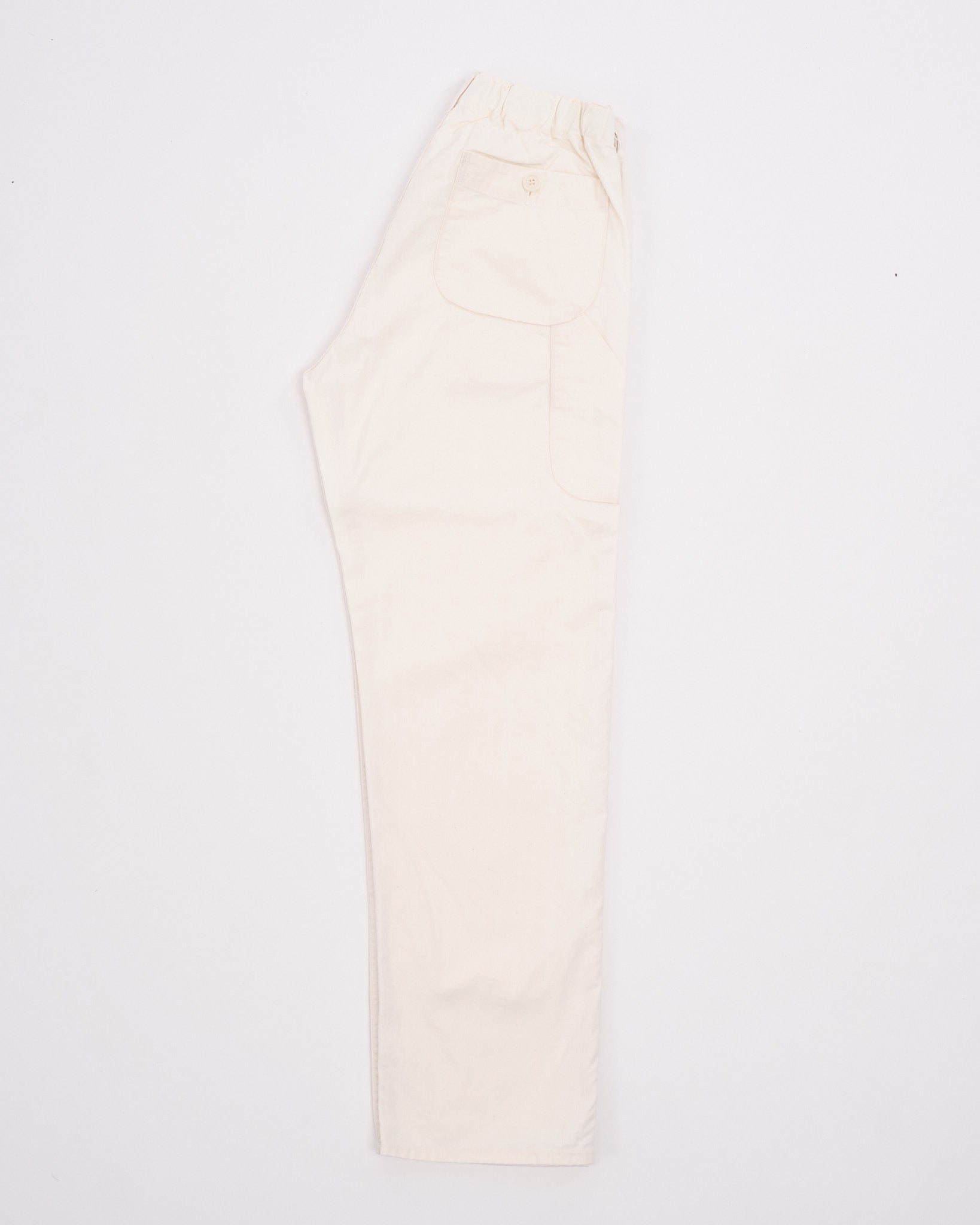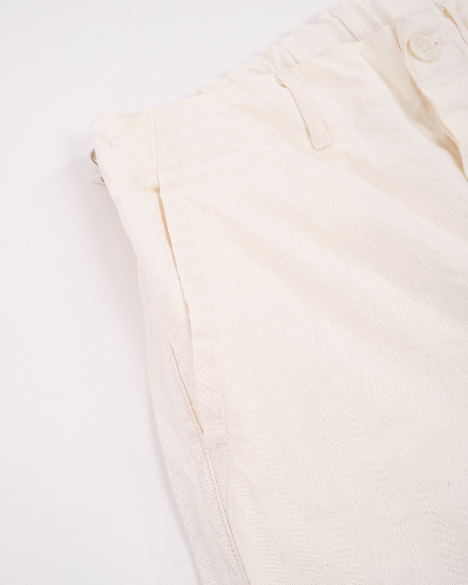 Ervaar de combinatie van traditioneel vakmanschap en praktisch ontwerp met de orSlow Franse Werkbroeken in een stijlvolle ECRU kleur. Deze broeken, met trots gemaakt in Japan, zijn vervaardigd uit een lichtgewicht katoenen visgraat twill stof die zowel comfort als duurzaamheid garandeert. Ze hebben een Franse werkbroekstijl met een normale taille en pasvorm waardoor ze geschikt zijn voor verschillende gelegenheden. De elastische tailleband zorgt voor een comfortabele pasvorm en voegt een moderne touch toe aan het paar. Met ruimte voor zakken, inclusief twee schuine handzakken, achterzakken met patch en een gereedschapszak, zijn deze broeken de belichaming van stijl die functionaliteit ontmoet.