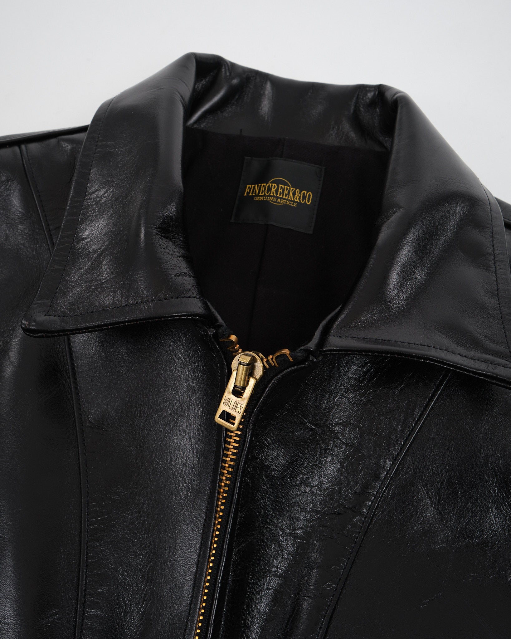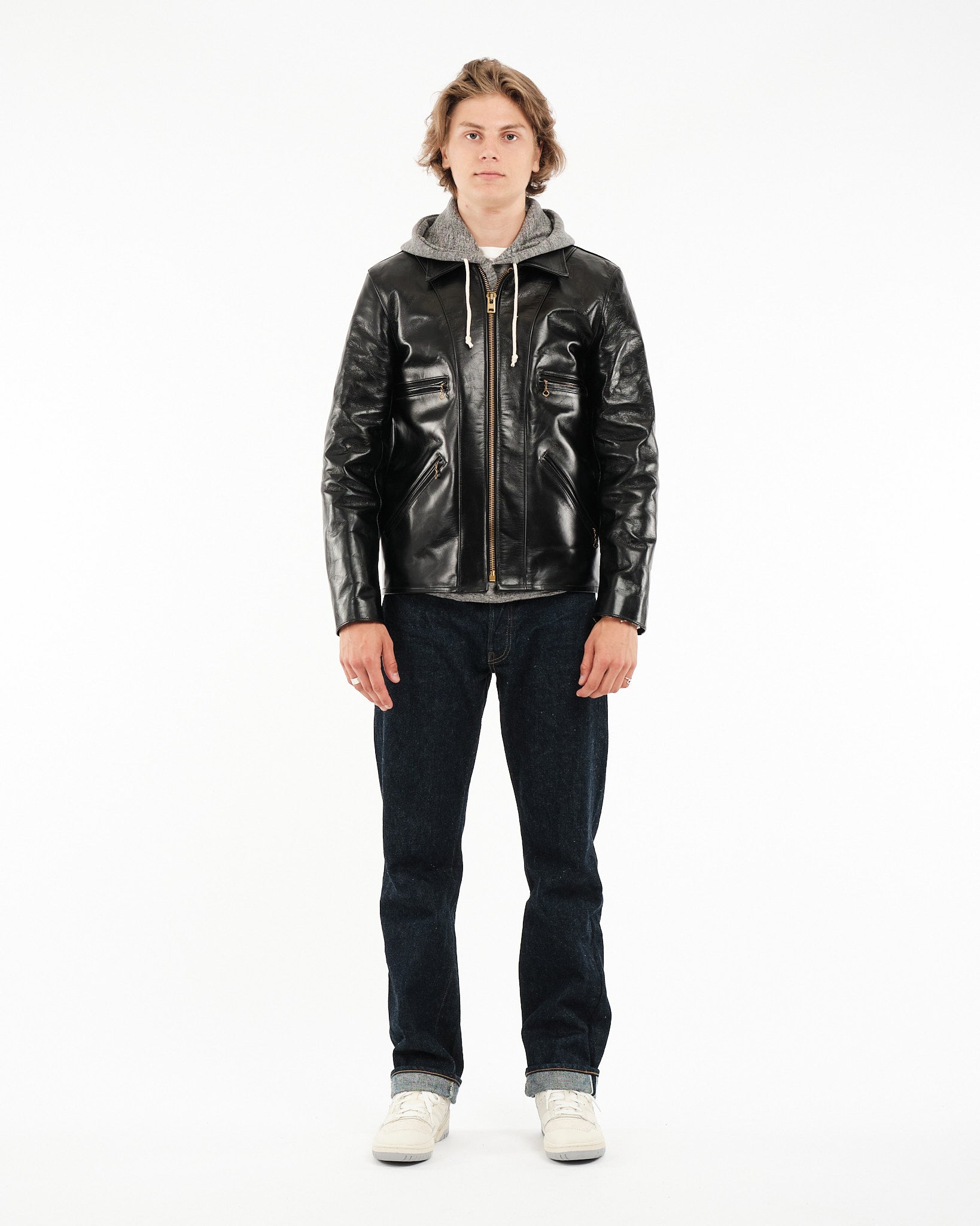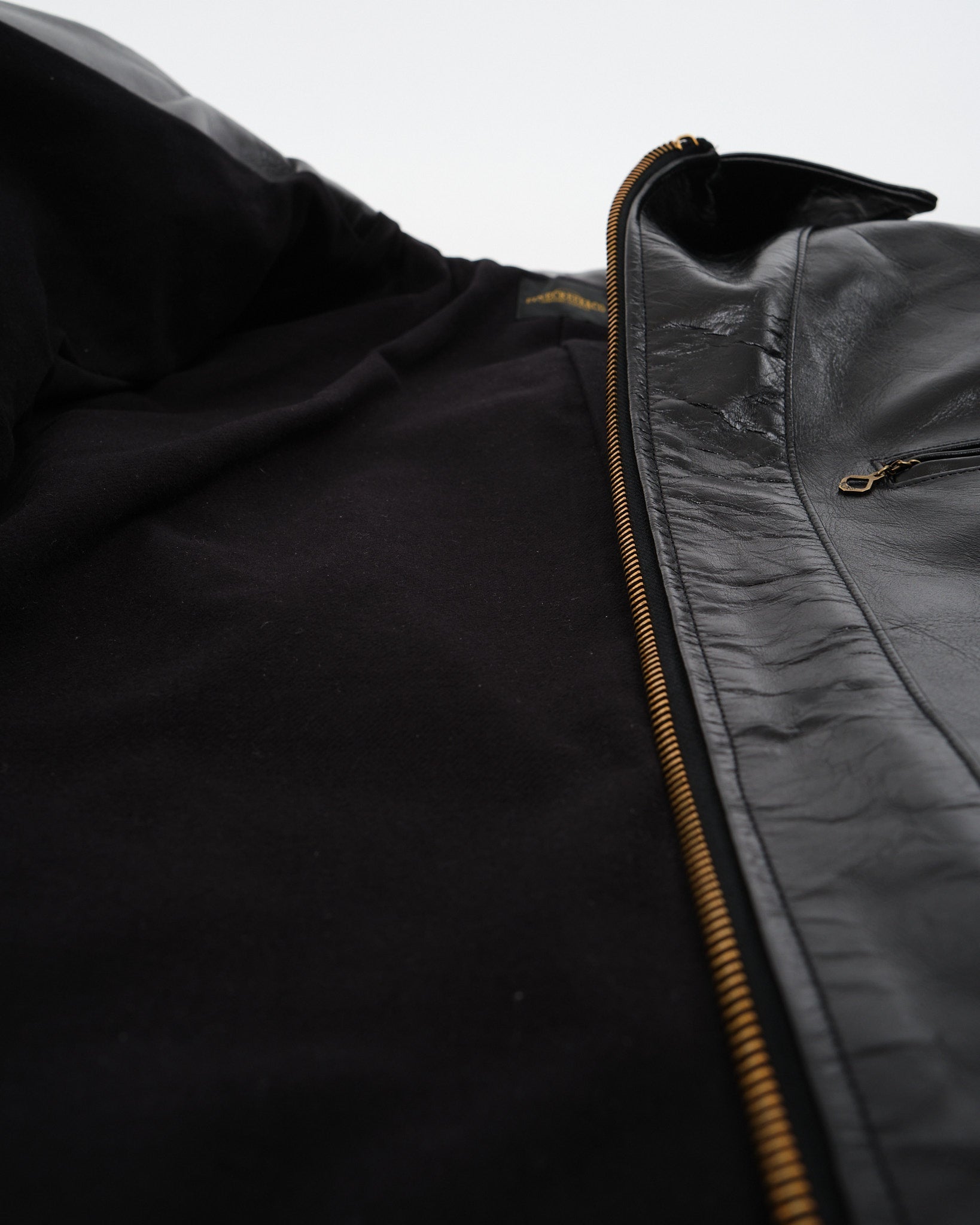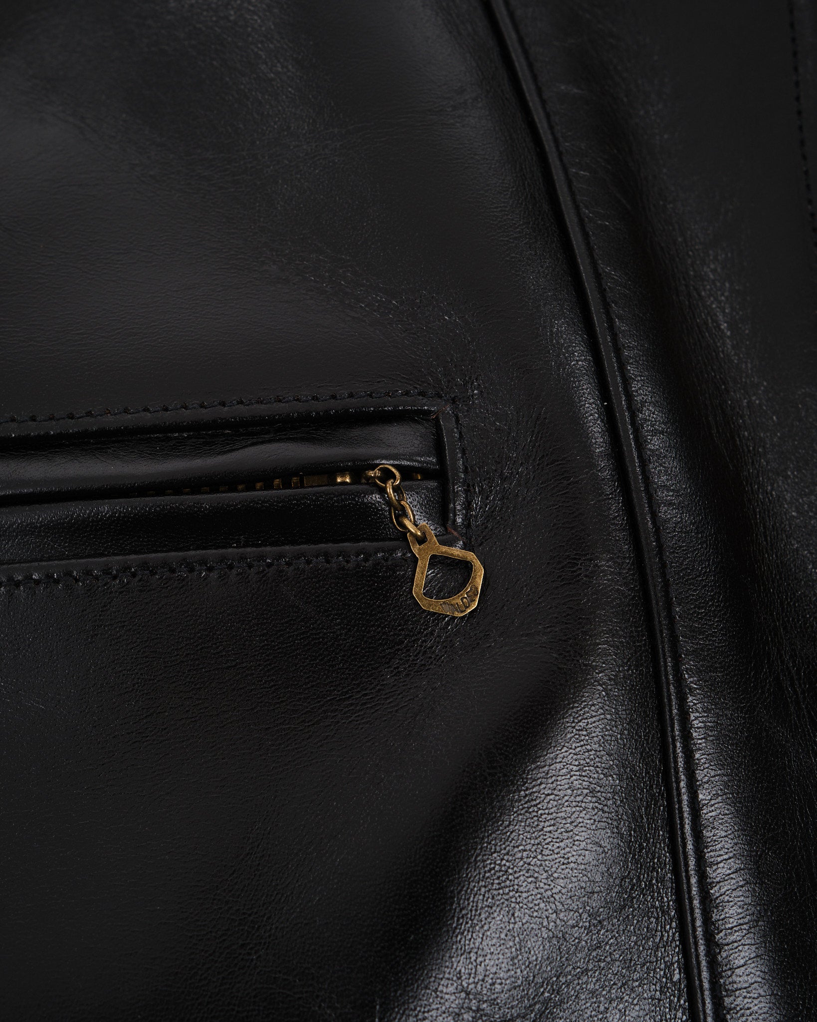 De Fine Creek Leathers Freddy jas is niet zomaar een kledingstuk; het is een toewijding aan vakmanschap. Geworteld in de ethos van het merk om de mogelijkheden van paardenhuid te verkennen, is deze jas een arbeid van Japanse expertise. Het combineert de coolheid van de jaren '90 met de elegantie van de jaren '30 en '40, en is gemaakt van Noordse paardenhuid die 1,3 mm dik is. Voel de warmte en het gemak van beweging van de 100% katoenen voering. Kijk hoe een unieke patina zich ontvouwt, en een rijke, bruine onderlaag onthult.