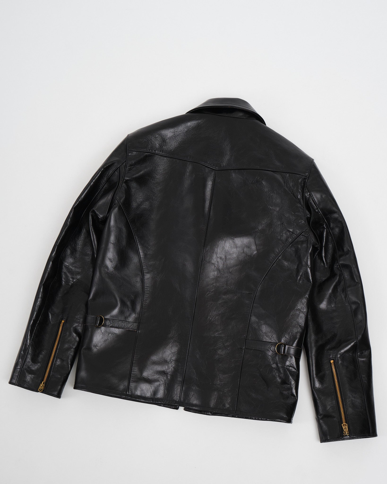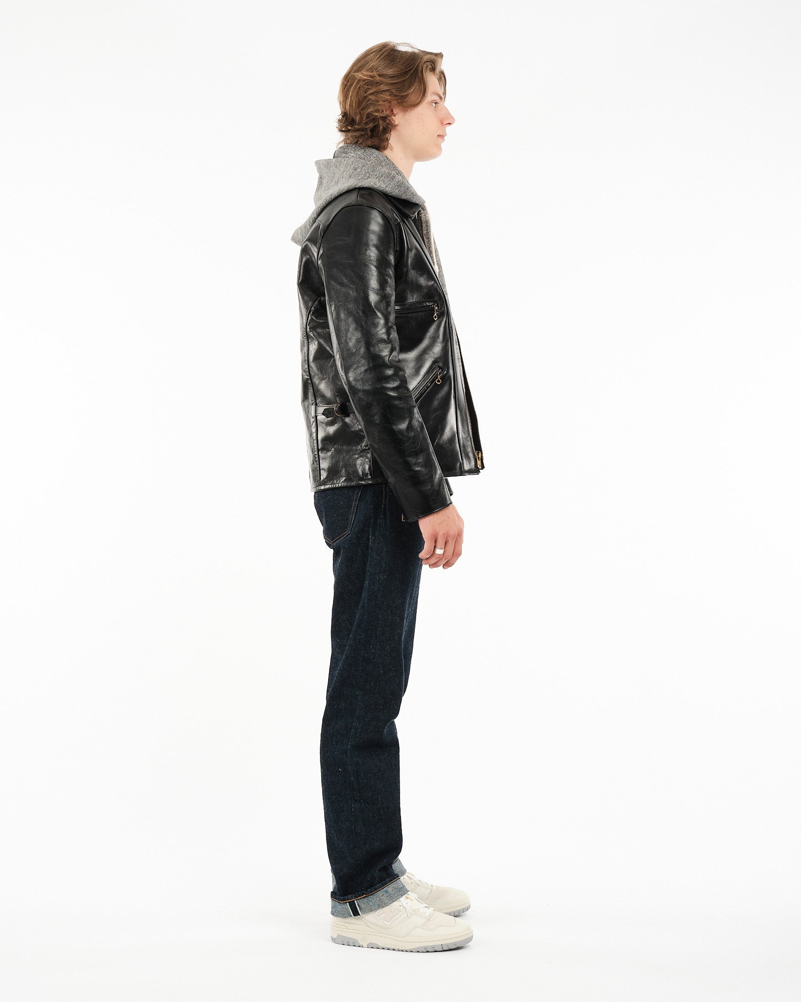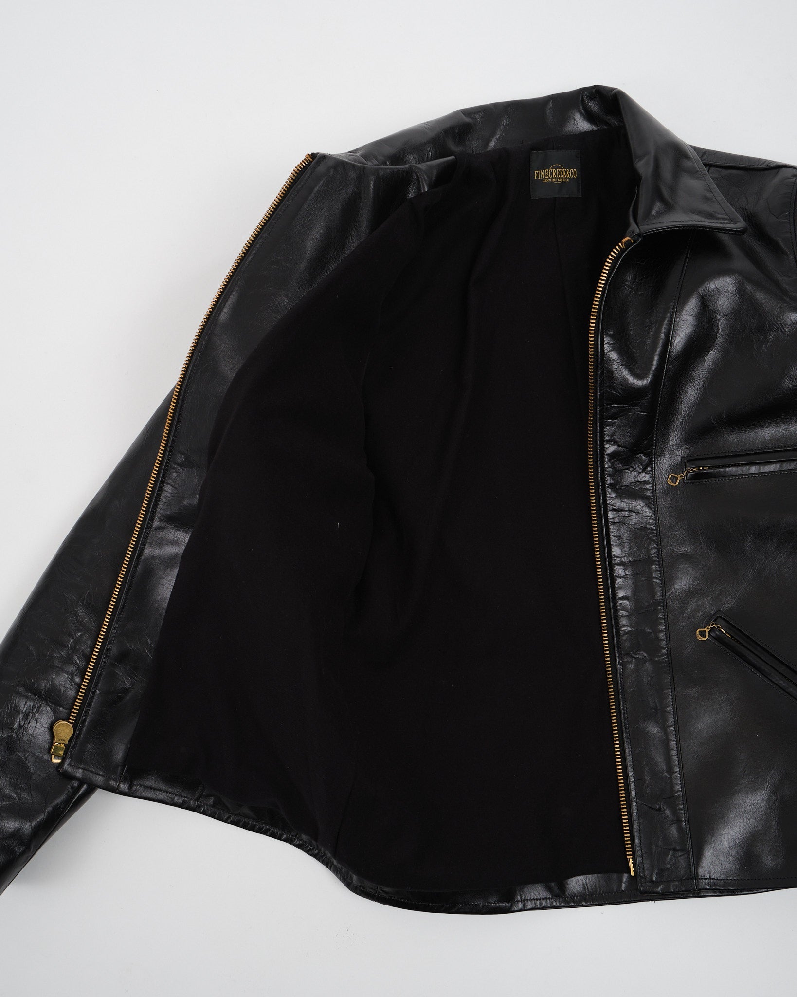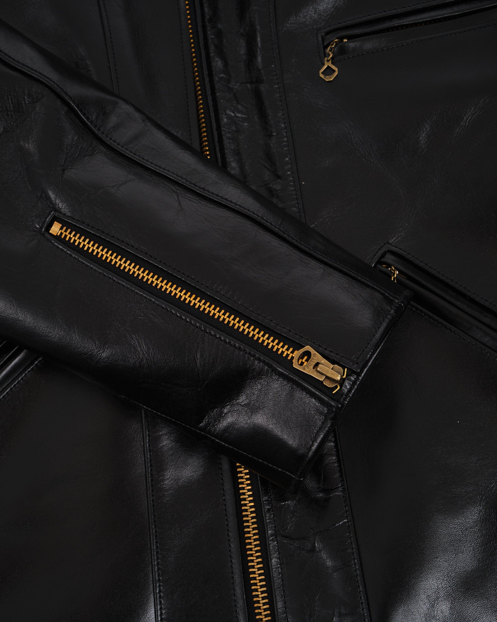 De Fine Creek Leathers Freddy jas is niet zomaar een kledingstuk; het is een toewijding aan vakmanschap. Geworteld in de ethos van het merk om de mogelijkheden van paardenhuid te verkennen, is deze jas een arbeid van Japanse expertise. Het combineert de coolheid van de jaren '90 met de elegantie van de jaren '30 en '40, en is gemaakt van Noordse paardenhuid die 1,3 mm dik is. Voel de warmte en het gemak van beweging van de 100% katoenen voering. Kijk hoe een unieke patina zich ontvouwt, en een rijke, bruine onderlaag onthult.