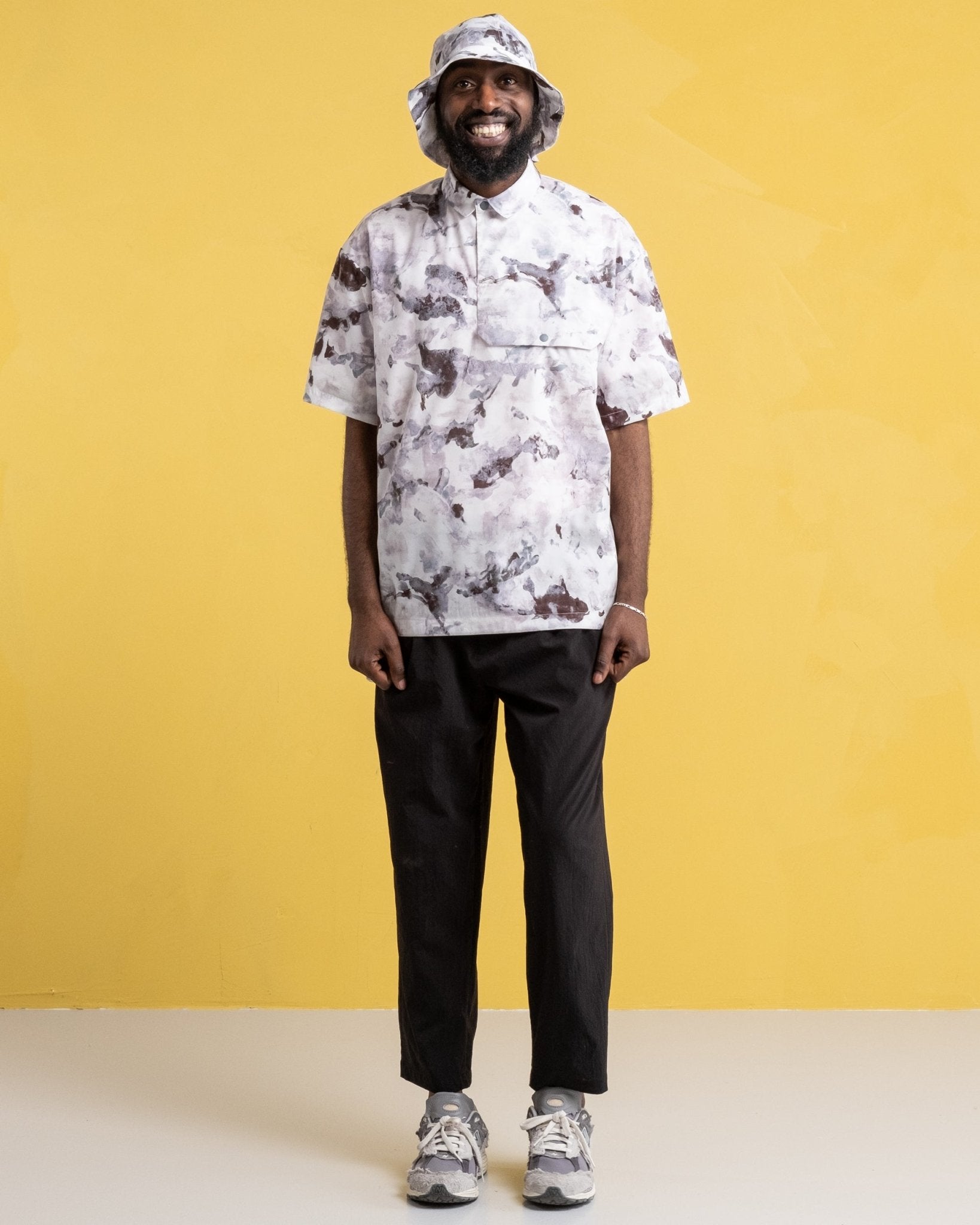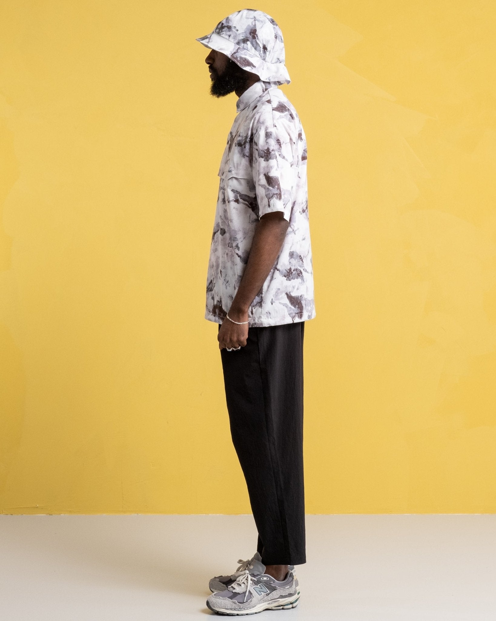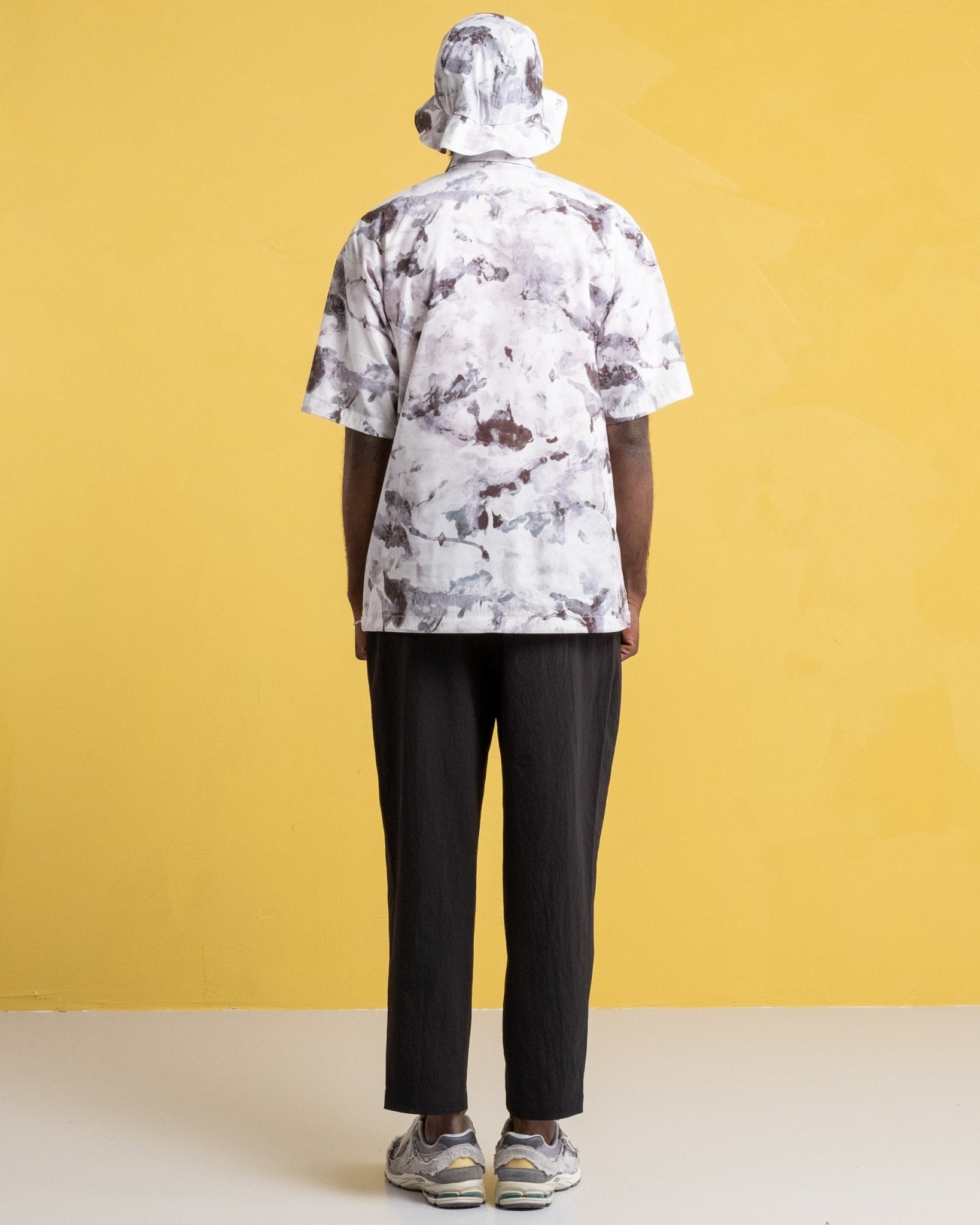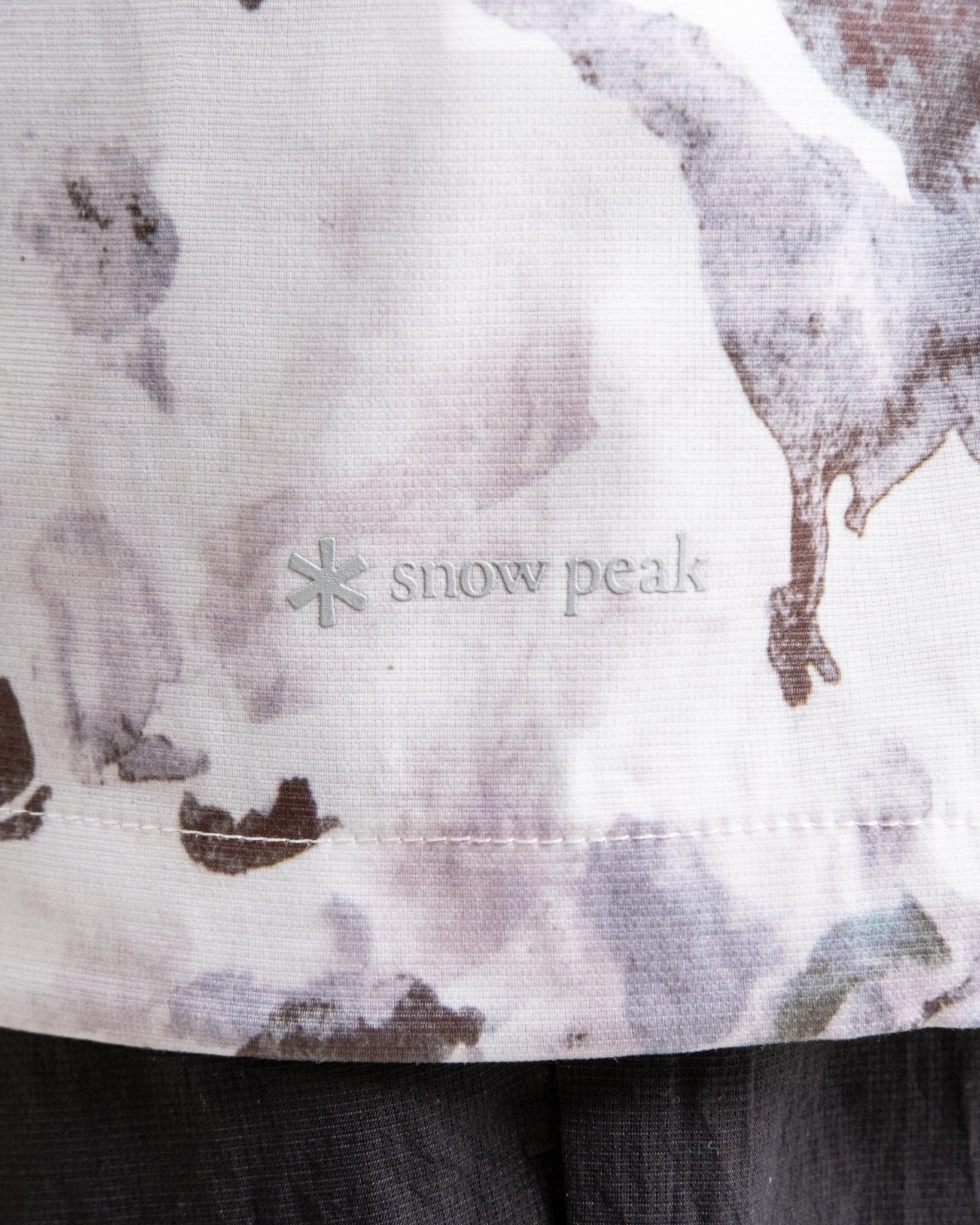 Gedrukt Quick Dry PoloShirt Grijs van Snow Peak. Ontspannen pasvorm shirt gemaakt van een mix van gerecyclede PET-flessen en ademend Primeflex™️. Met een gemarmerde print, geknoopte kraag, rechterborstzak en trekkoord in de zoom. Gemaakt in China.
