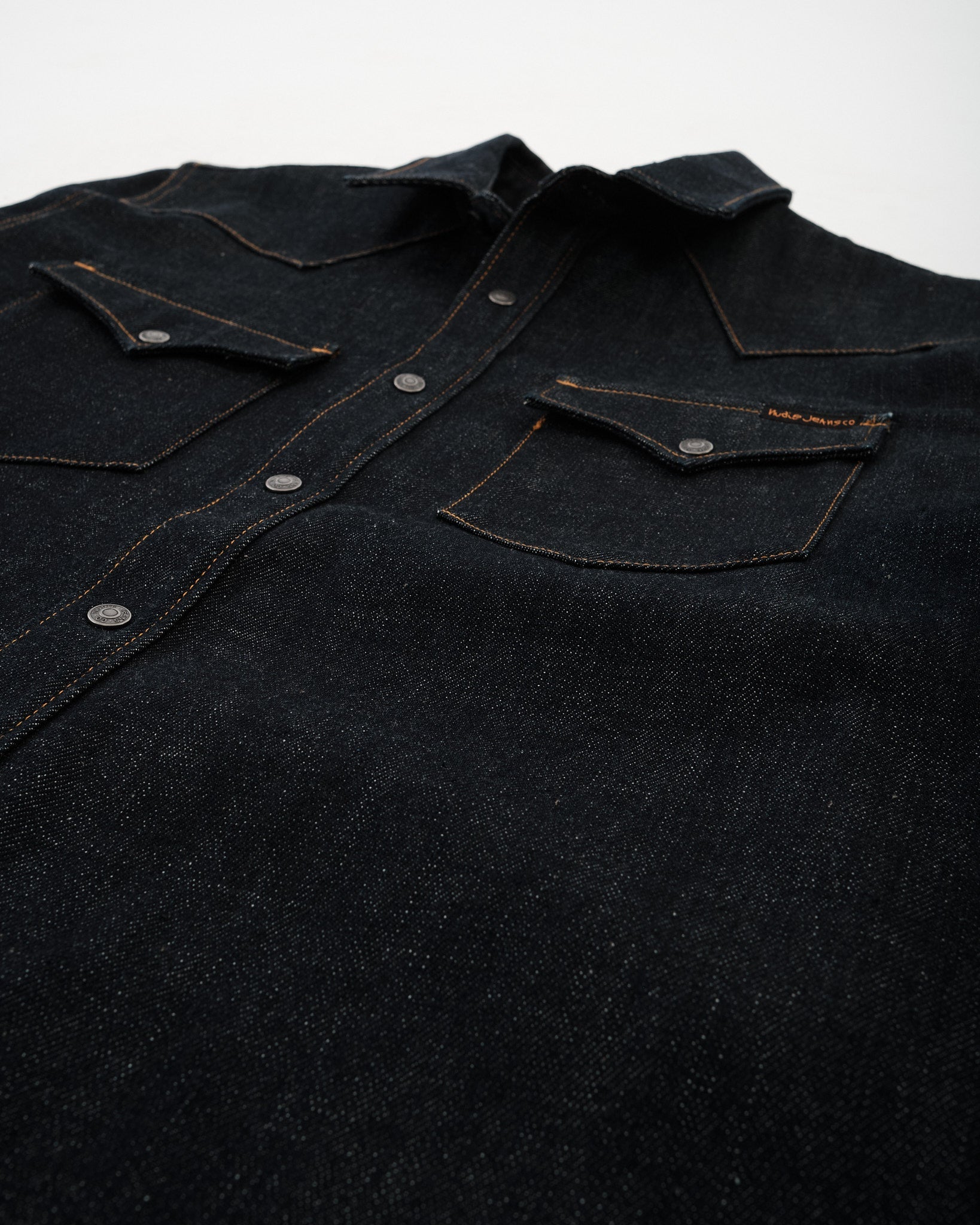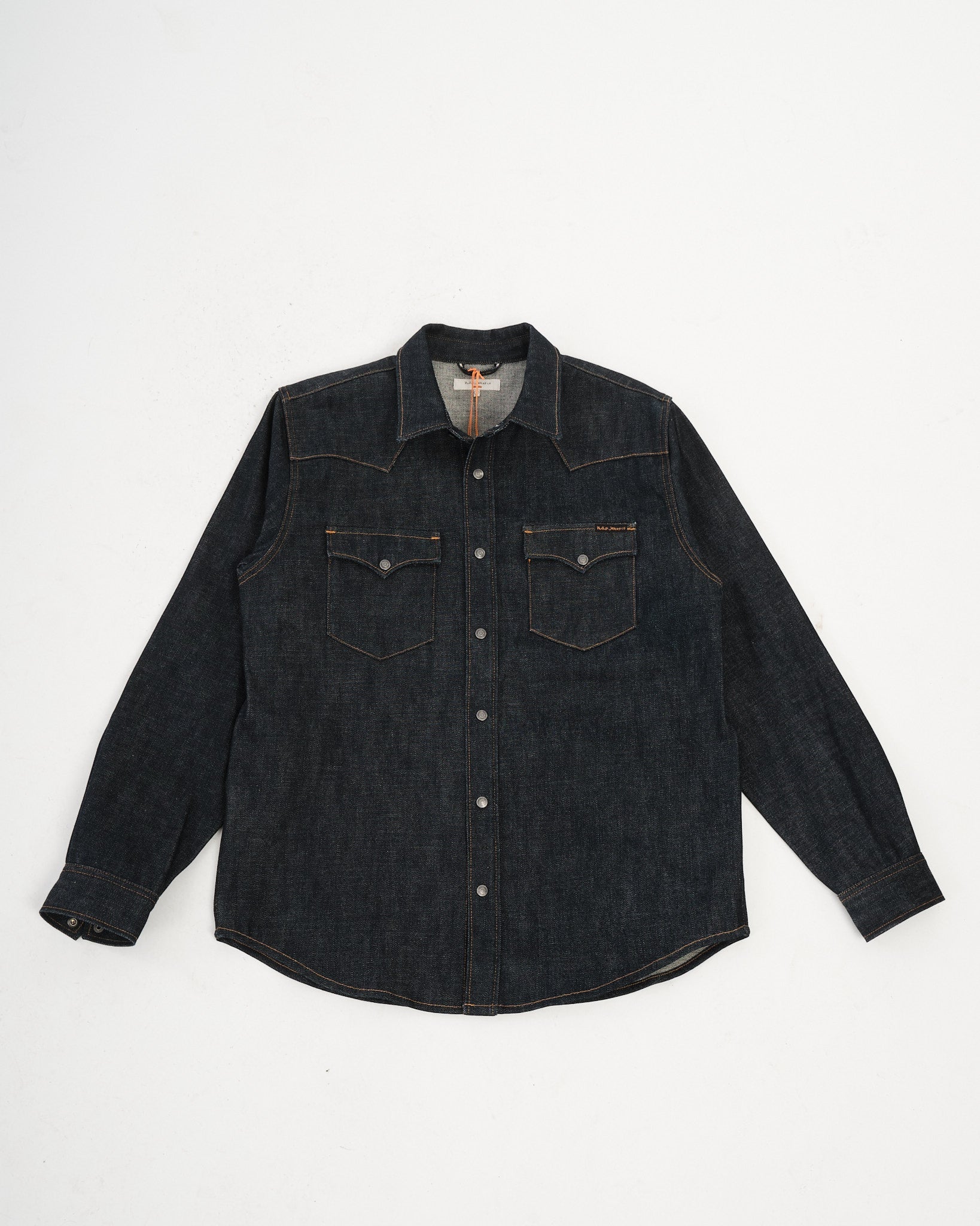 Product Code: 140851 Gemaakt van 100% biologisch katoen selvage denim. Raw Dry Blue selvage stof ontwikkelt een unieke patina met dragen. Op maat gemaakt voor een scherpe silhouet. Button-down kraag voor klassieke details. Borstzak voor praktisch gebruik en stijl. Duurzame constructie voor langdurig dragen. Veelzijdig ontwerp voor gelaagdheid of als enkel kledingstuk. Weerspiegelt Nudie's toewijding aan duurzaamheid en vakmanschap. Een tijdloos stuk voor casual of verfijnde styling.
