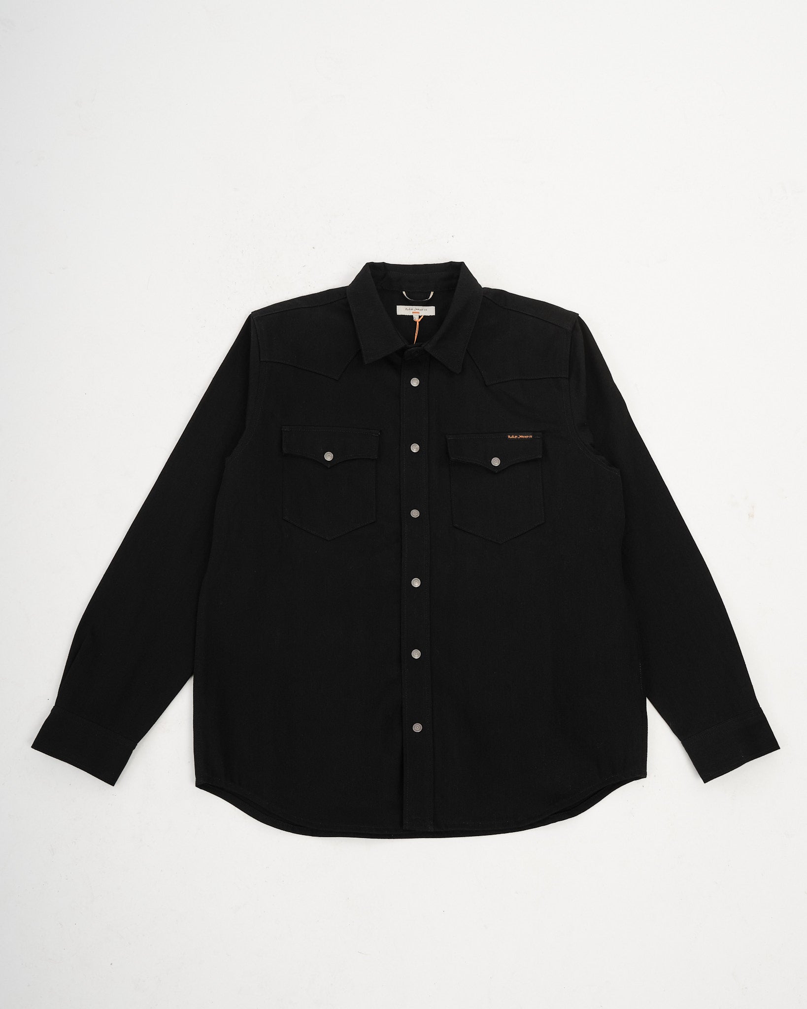 Productcode: 140852 Gemaakt van 100% biologisch katoen selvage denim. Droge zwarte kleur voor een moderne, ingetogen look. Getailleerde pasvorm voor een scherp silhouet. Button-down kraag voor een klassieke touch. Borstzak voor praktisch gebruik en stijl. Ruwe denim afwerking ontwikkelt een unieke patina met dragen. Veelzijdig ontwerp voor gelaagdheid of alleen dragen. Weerspiegelt Nudie's toewijding aan duurzame mode. Duurzame constructie voor langdurige kwaliteit.