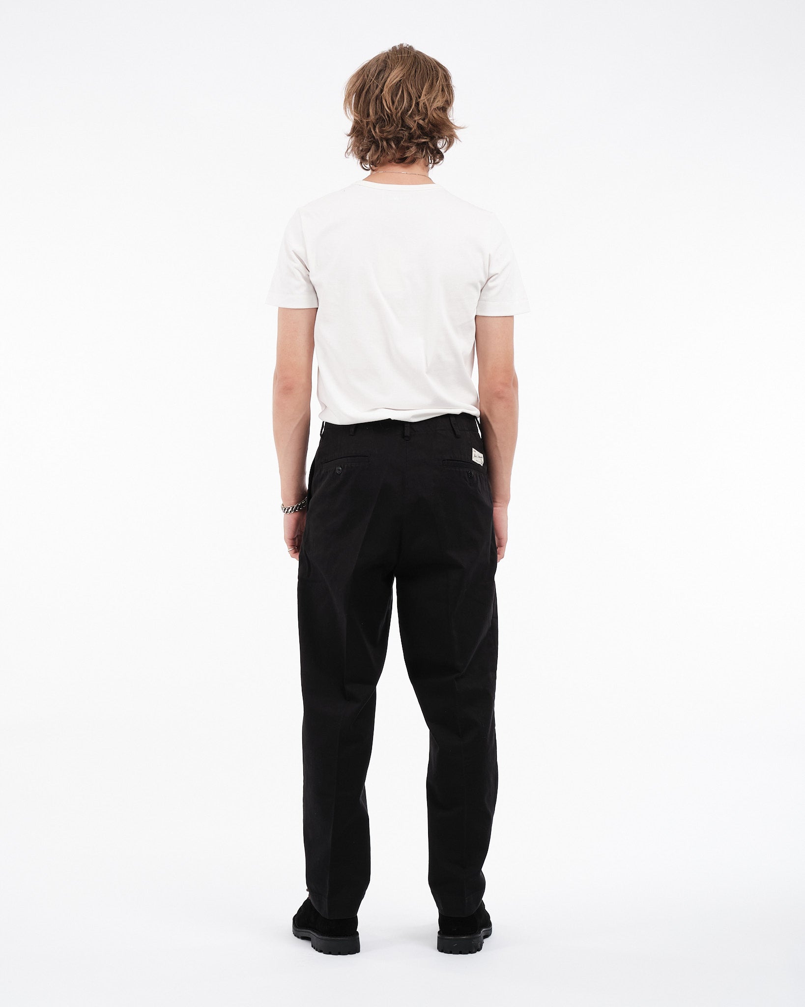 De Merz B Schwanen diepzwarte chino is een comfortabele keuze voor dagelijks gebruik met zijn 100% biologische katoenen twill stof en ontspannen pasvorm ontwerp dat stevig 8 oz materiaal perfect bevat, voor elke gelegenheid of kledingbehoefte terwijl het traditionele elementen biedt inclusief twee achterzakken en een muntzakje afgewerkt met hoogwaardige corozo vissenoogknopen om zijn algehele stijl te verbeteren waardoor het een veelzijdige must-have is in ieders kast voor zowel geklede als casual looks.