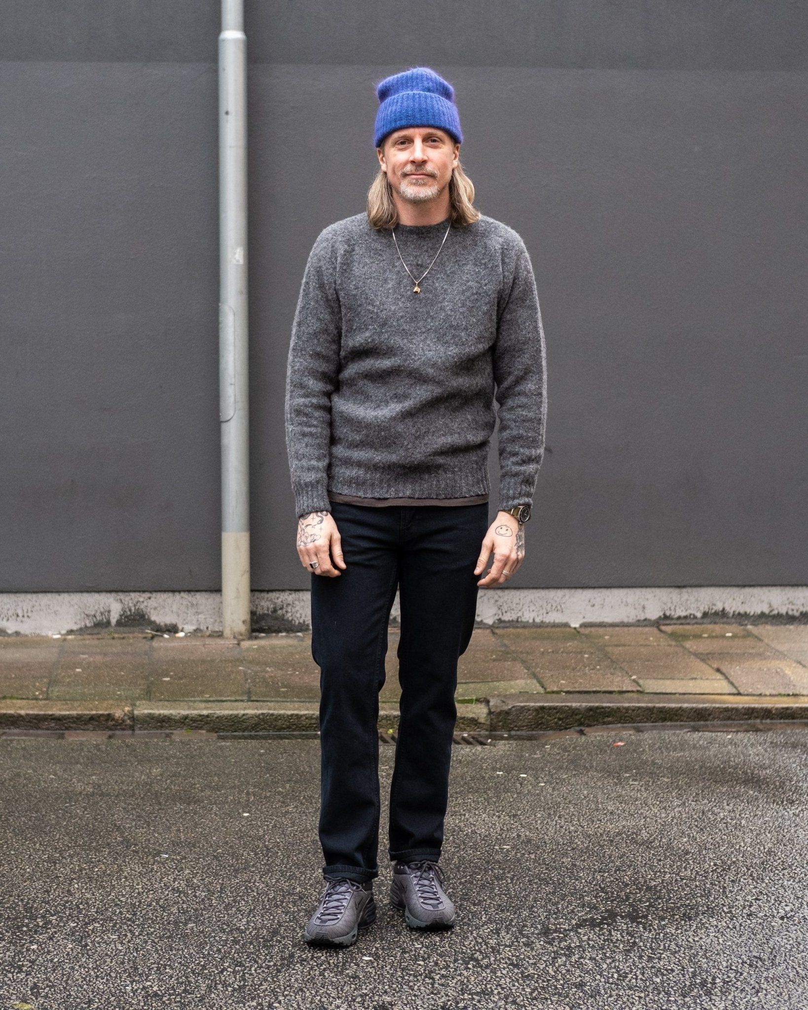 Ludjero is 179 cm lang, slank gebouwd en draagt een 29/32.
