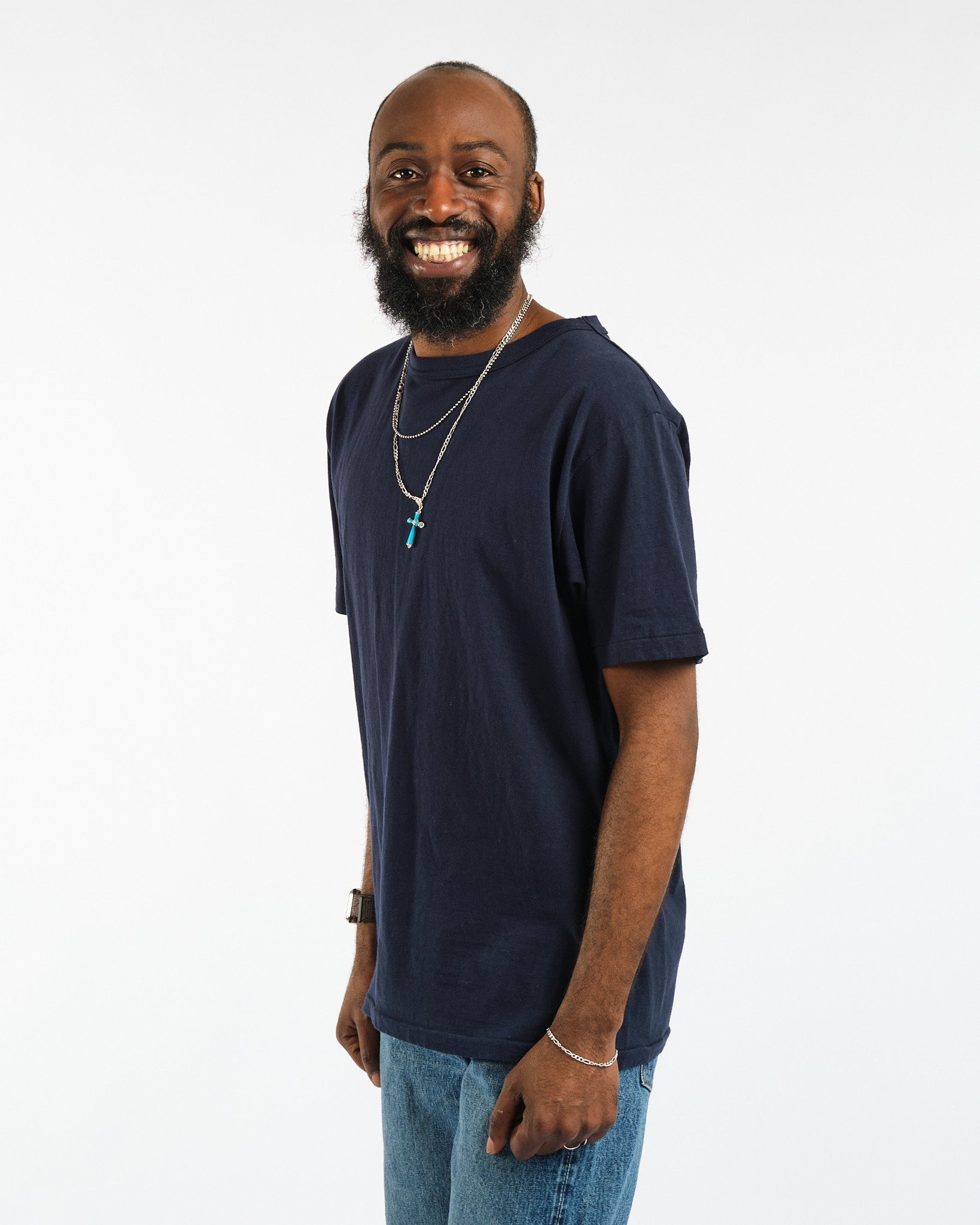 Maak kennis met het Haleiwa korte mouwen T-shirt in donkerblauw van Sunray Sportswear, een viering van de traditionele stijlen uit de jaren '50. Dit in Japan gemaakte T-shirt heeft een ontspannen, reguliere pasvorm samen met een traditionele kraag, rib-ontwerp en stoffen. Elk Sunray T-shirt is vervaardigd op antieke rondbreimachines, wat zorgt voor een unieke constructie zonder zijnaad. Het zorgvuldige proces neemt meer dan 1,5 uur in beslag voor elk T-shirt, wat een kledingstuk belooft dat zijn vorm en comfort behoudt. Duik in het tijdloze ontwerp, de blijvende kwaliteit en de authentieke charme van Sunray Sportswear.