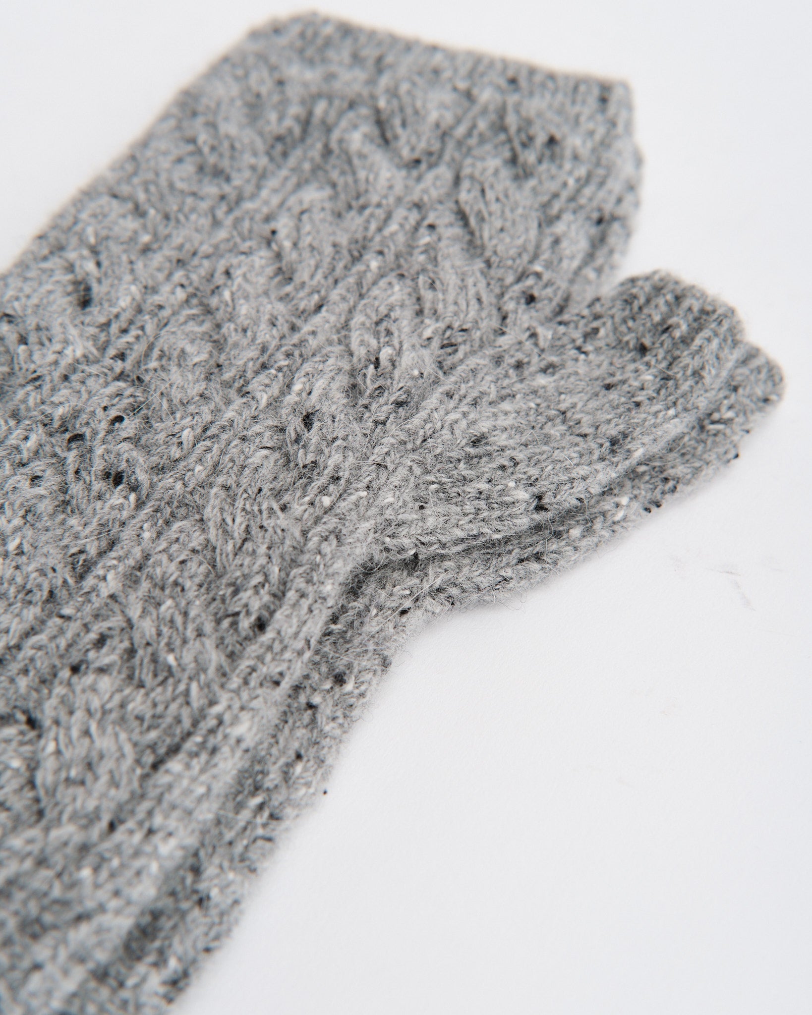 Ontdek de unieke Grey Found Feather Handwarmers, een must-have voor je wintergarderobe. Deze handwarmers zijn geïnspireerd op een Zweeds militair ontwerp uit de jaren 50, maar met een moderne draai van een kabelgebreide weving. Vervaardigd uit Italiaanse Donegal Tweed Wol bieden ze een zachte aanraking. Hun ontwerp veelzijdigheid maakt het mogelijk om ze uitgestrekt tot de onderarm te dragen of omgeslagen bij de pols, waardoor ze perfect zijn om zowel warmte als stijl aan elke outfit toe te voegen. Geschikt voor iedereen, deze handwarmers zijn niet alleen een traktatie voor je handen, maar betonen ook eer aan tijdloze en blijvende modetrends.