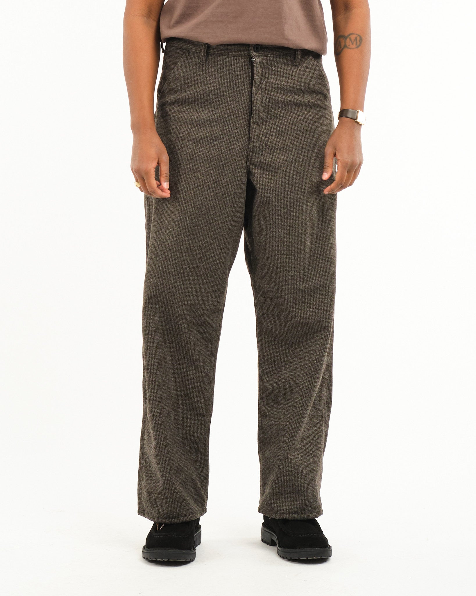 De OrSlow 01-5328-155 Houndstooth Dad's Fit Painter Pants Brown Hound's Tooth combineert de traditionele look van werkkleding met het kenmerkende houndstooth ruitpatroon. Deze broeken hebben een ontspannen vaderpasvorm en zijn gemaakt van hoogwaardige Japanse stof, wat ze zowel functioneel als klassiek in ontwerp maakt. Deze broeken bevatten handige functies zoals lussen voor gereedschap en zakken met patches, wat ze geschikt maakt voor zowel casual kleding als meer streetwear/werkkleding geïnspireerde looks. Ze worden vervaardigd in Japan en zijn een uitstekend voorbeeld van orSlow's focus op de kwaliteit van het ontwerp.