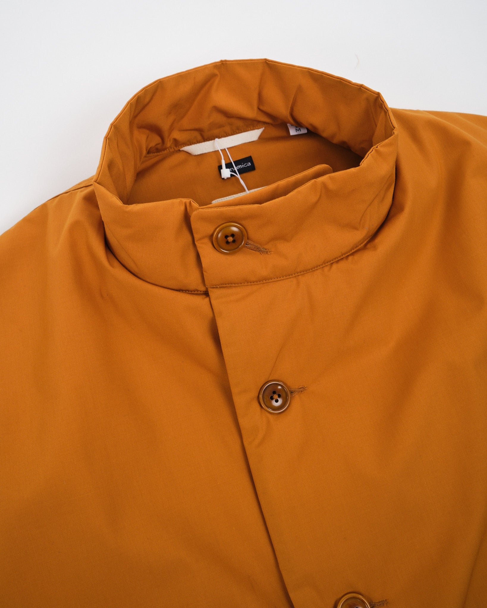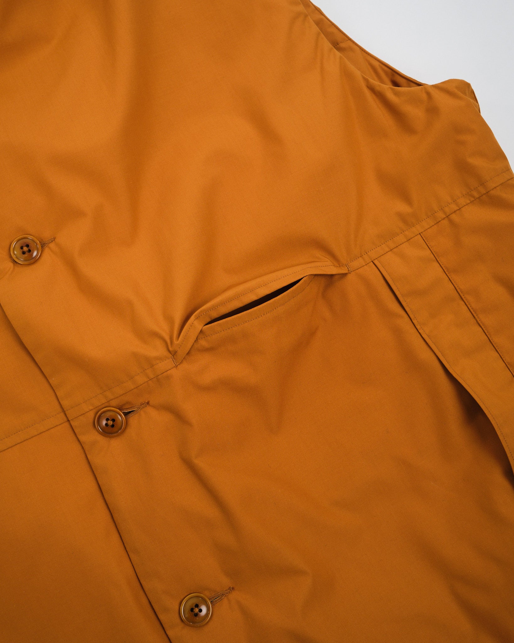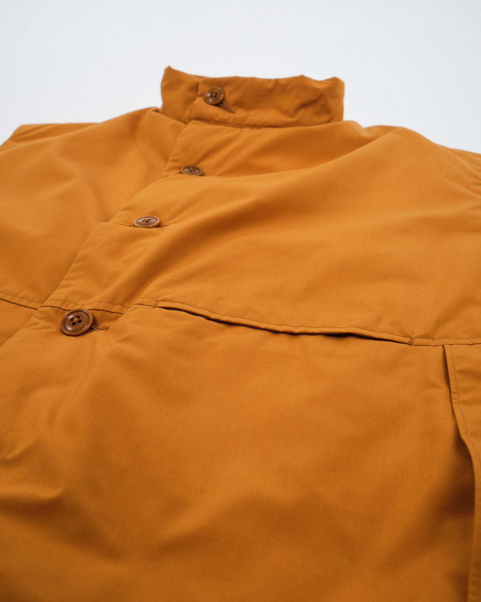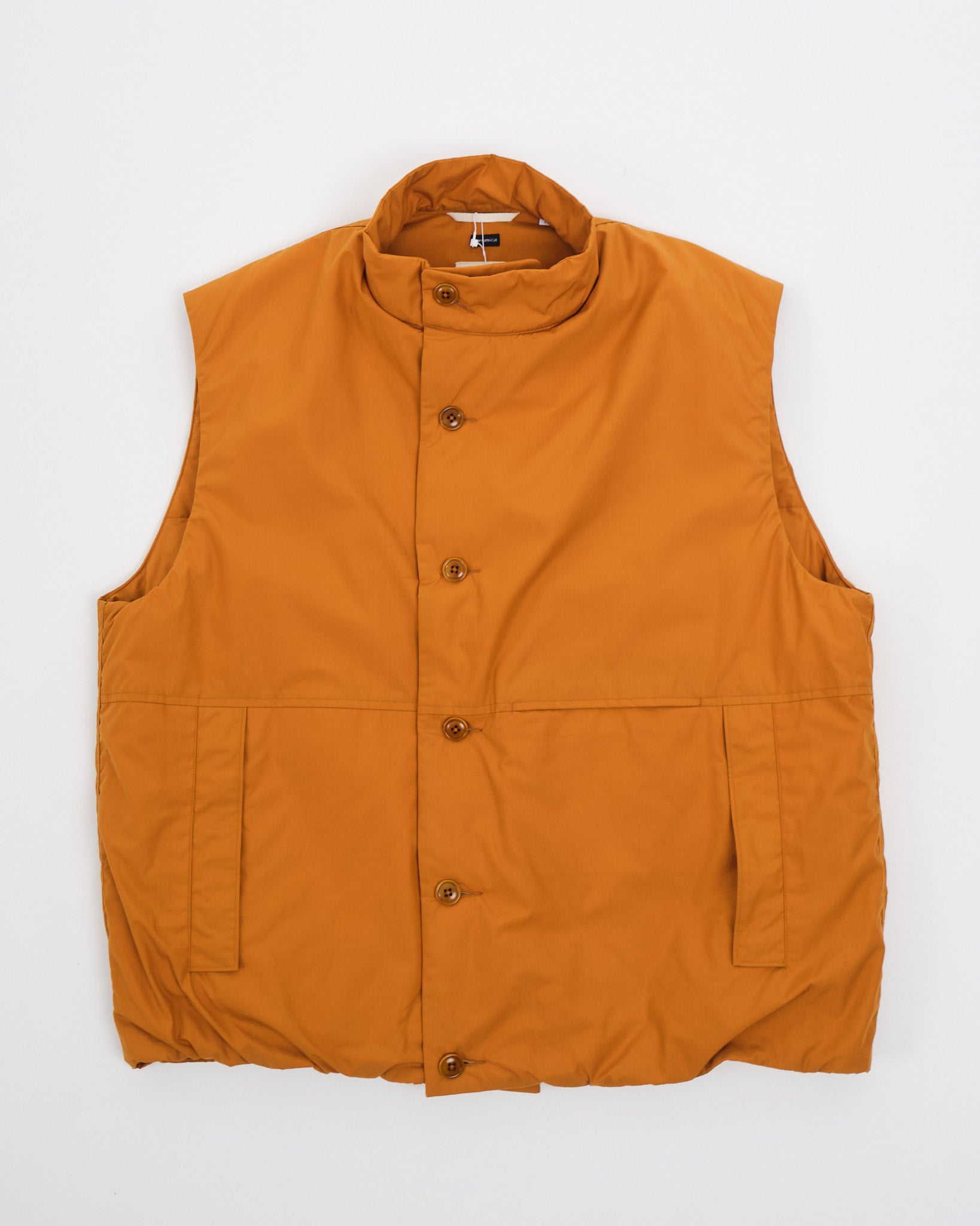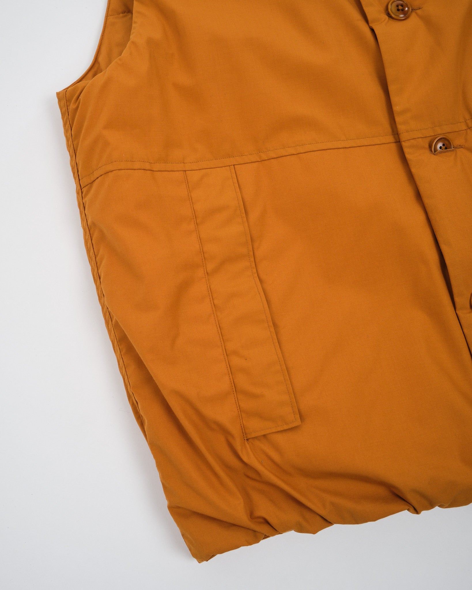 Duik in de warmte van Nanamica's Isolatievest, een mix van klassiek en modern in de stralende Sunset kleur. De diepe voorkant overlap bestrijdt slim de kille winden, en sluit de natuurlijke warmte van je lichaam in. Met een erfelijke knipoog naar klassieke buitenkleding, pronkt de buitenlaag met een hoogdichtheidsweefsel van een polyester-katoen mix, wat zijn weerstand tegen het weer versterkt.