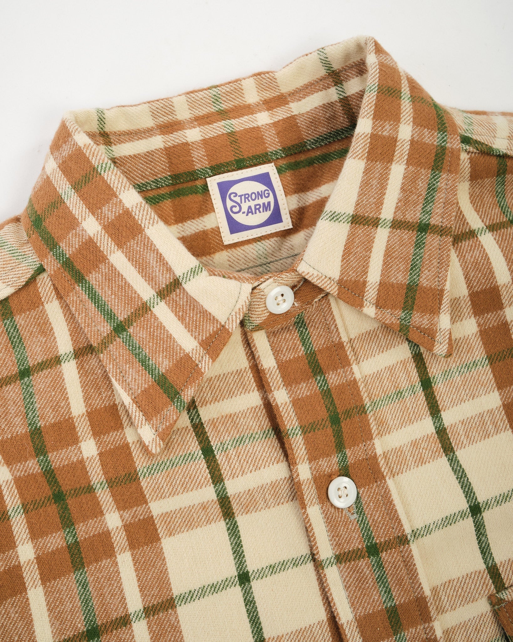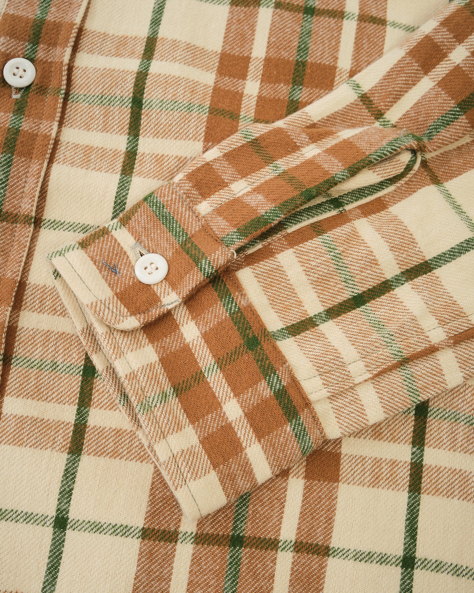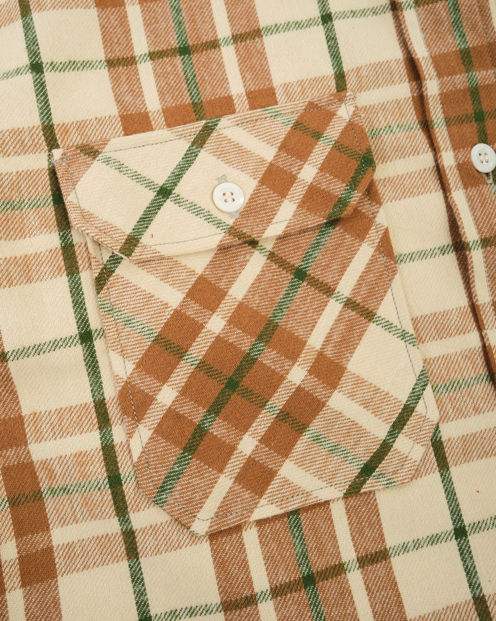 De Moderne Flanel is de seizoensgebonden interpretatie van Warehouse & Co. van het tijdloze geruite overhemd. Dit seizoen komt het in vier frisse patronen. Vervaardigd in een verzadigd beige ruit met opmerkelijke diepte, is de stof ontworpen om sierlijk te verouderen en karakter te ontwikkelen door dragen en wassen. Trouw aan de reputatie van Warehouse, is het gevoel in de hand uitstekend: een zachte maar stevige flanel die comfort en duurzaamheid combineert. Met zijn gebalanceerde pasvorm en traditionele details, mengt dit stuk dagelijks nut met vintage charme. Het is het soort overhemd dat met elk seizoen beter wordt.