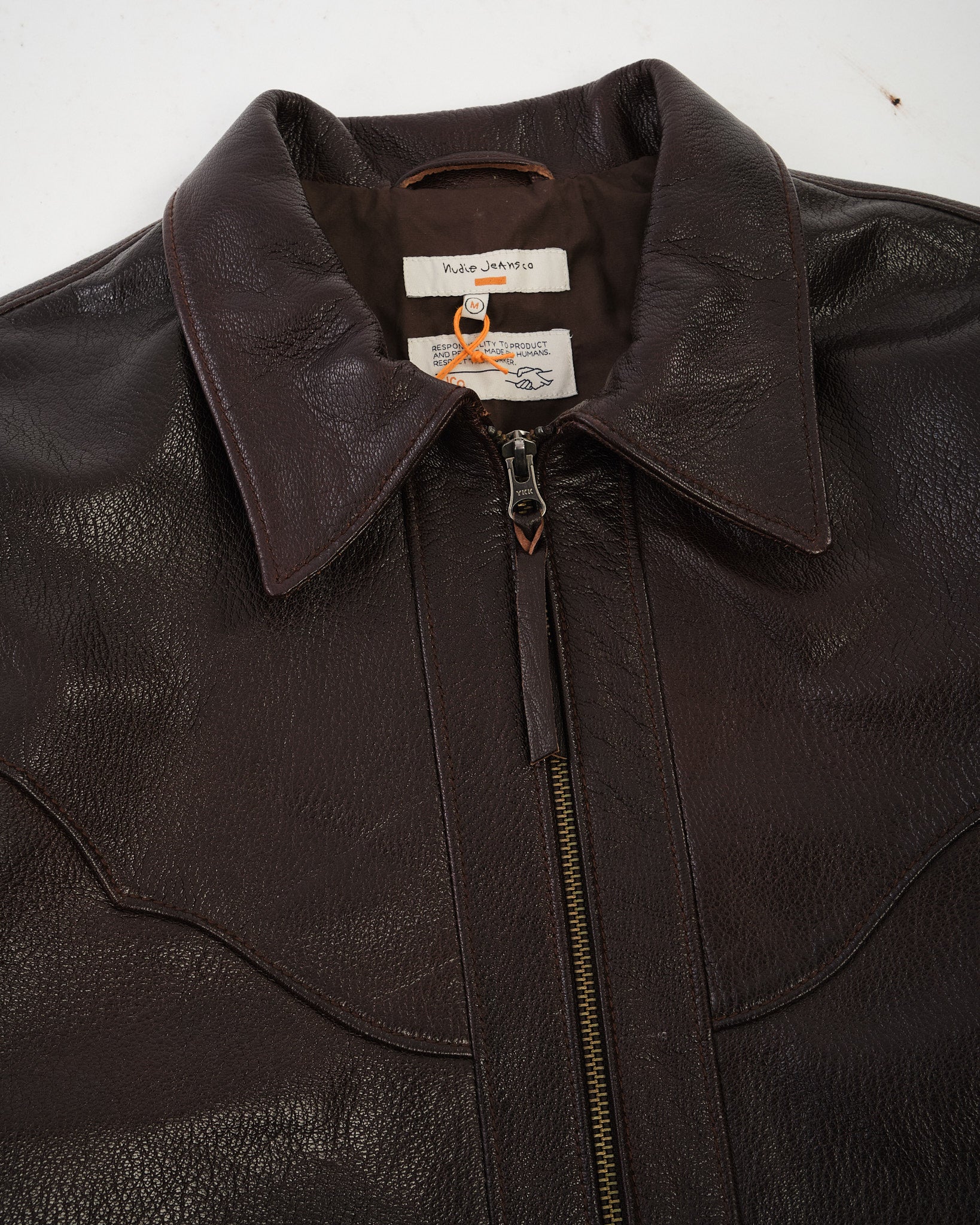 De NUDIE JEANS CO. JOPPE WESTERN LEREN JAS BRUIN is een tijdloze, recht gesneden leren jas, vervaardigd uit boterzacht, semi-plantaardig gelooid geitenleer. De diep chocoladebruine tint is verrijkt met een fijne glans, die het rijke karakter van het leer versterkt.