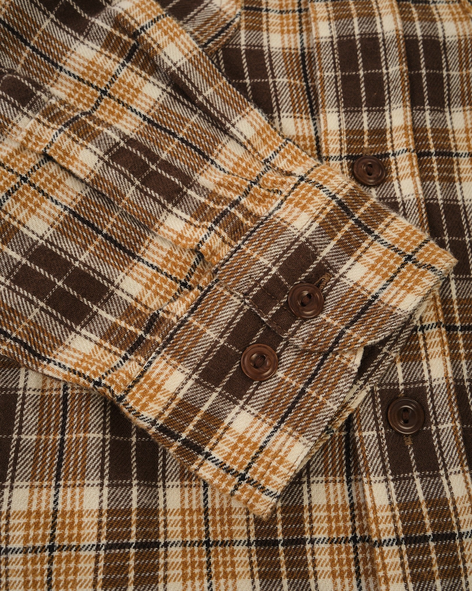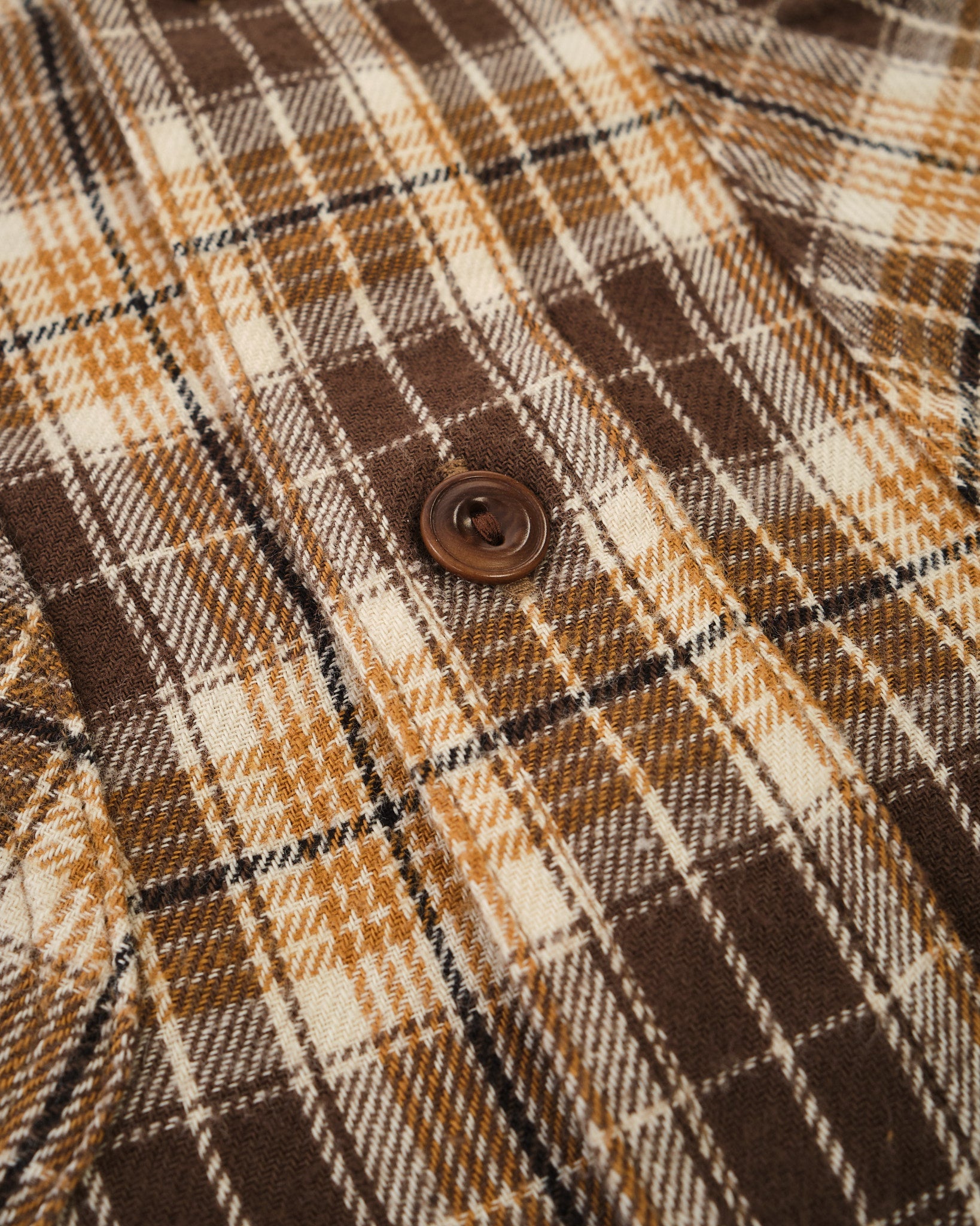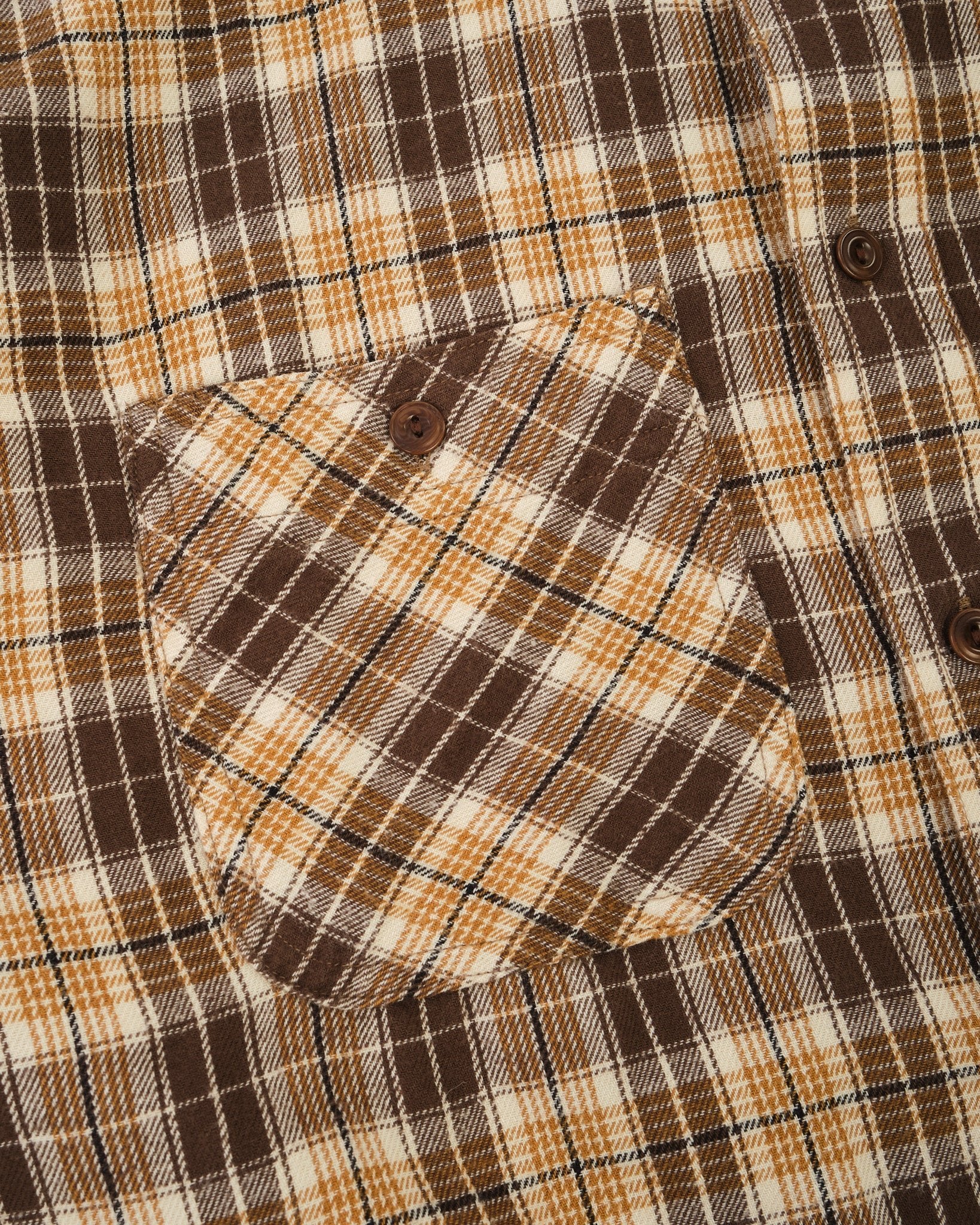 The Julian Worker Shirt in Check Brown is Nudie’s take on rugged utility, softened by a premium fabric blend. Made from organic cotton and European Flax® certified linen, it strikes the perfect balance between breathable comfort and structured feel. The check pattern adds vintage workwear charm, while corozo buttons give it a refined finish. With a regular fit and timeless styling, Julian is a reliable layering piece that’s built for both weekday tasks and weekend ease.