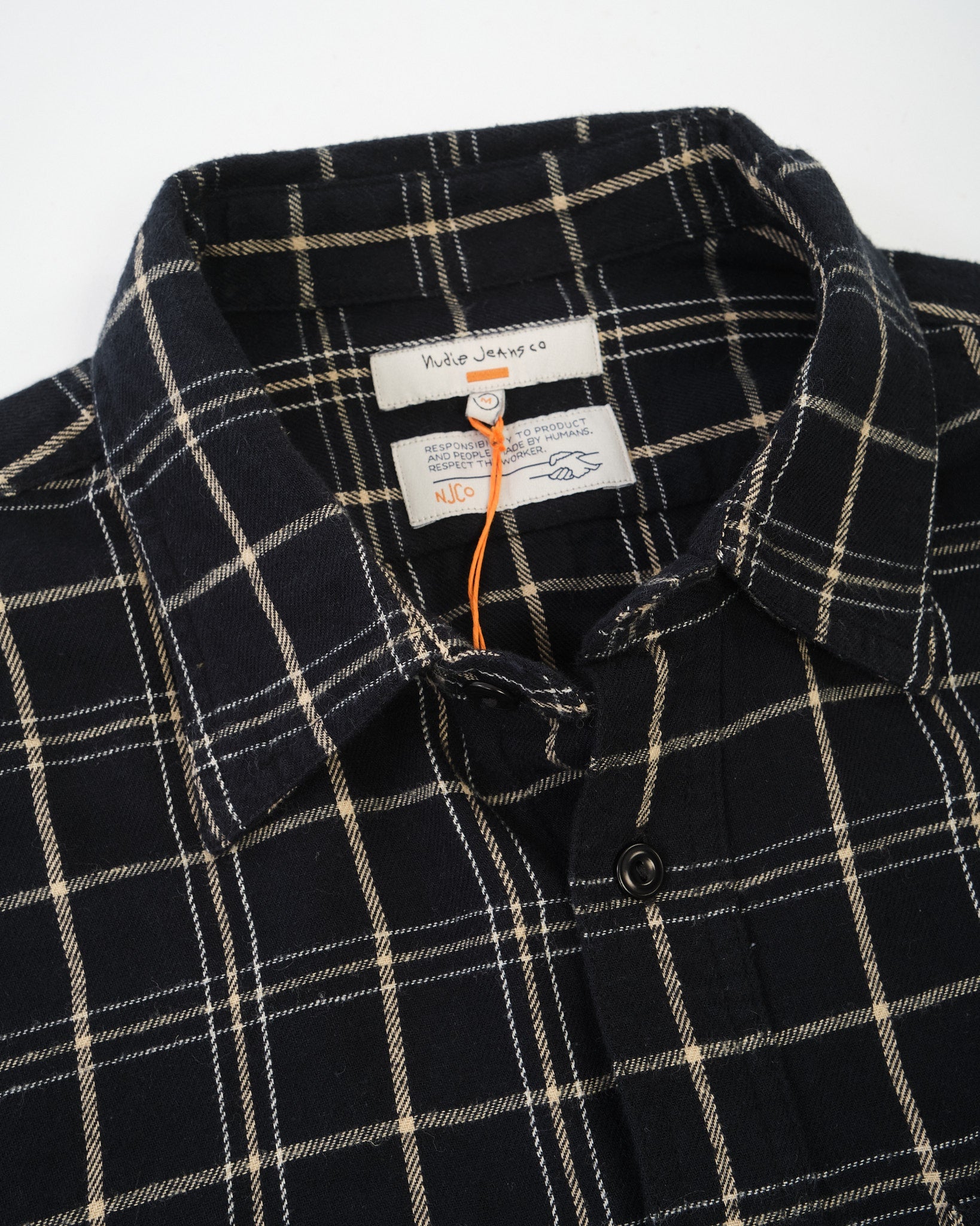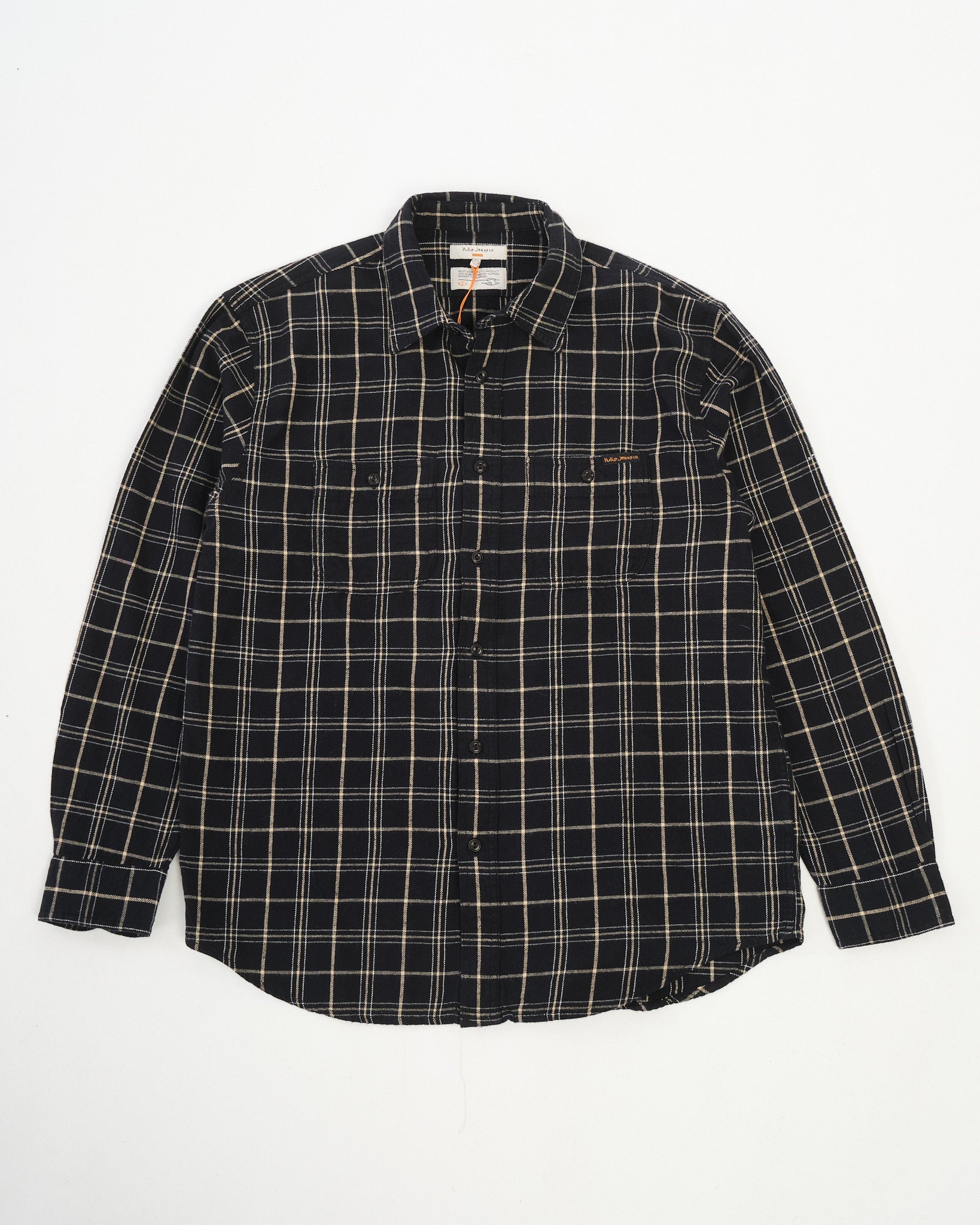 Julian Worker Shirt Checked Black is a long-sleeve shirt rooted in classic workwear, made from a soft and lightweight black-and-white checked twill fabric. A subtle brushing gives the material an extra layer of softness, making it comfortable to wear while retaining a clean, structured appearance.
