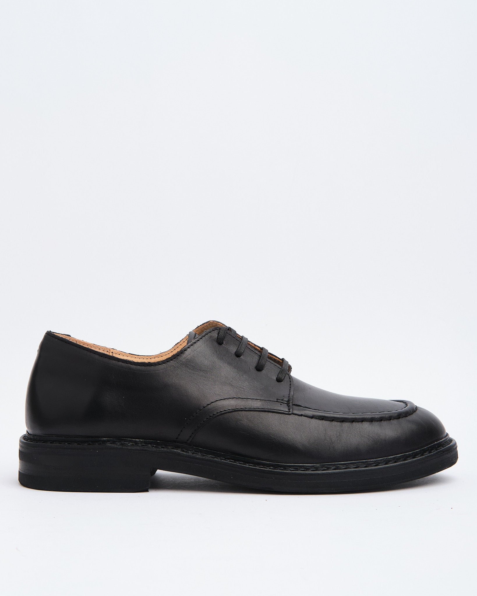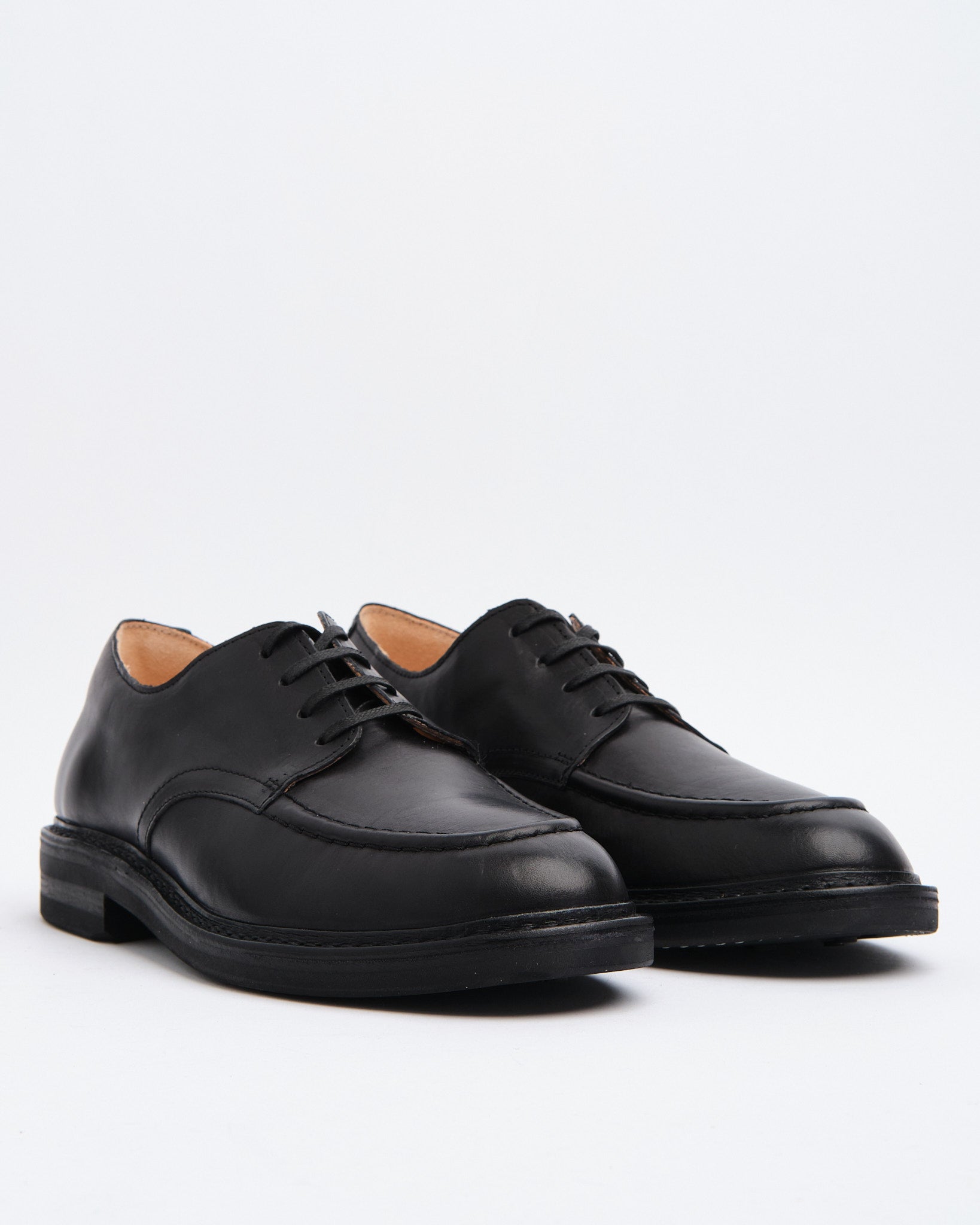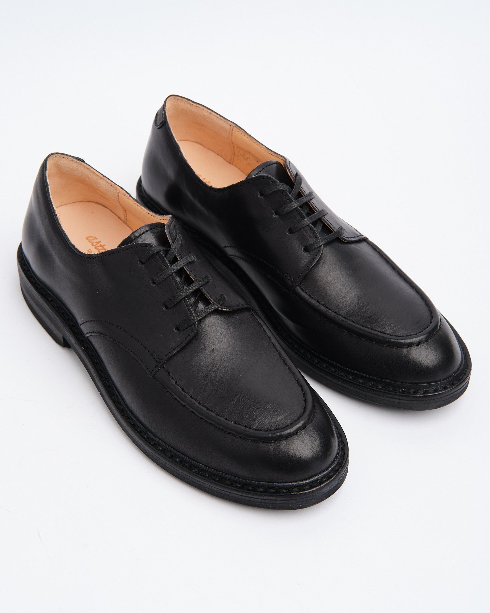 The Karoflex Derby is Astorflex’s refined take on the moc-toe derby, made entirely in the family-run factory in Mantova, Northern Italy. Crafted from supple vegetable-tanned Italian leather in a deep black “Nero” shade, the upper is soft from the start and develops unique character over time.