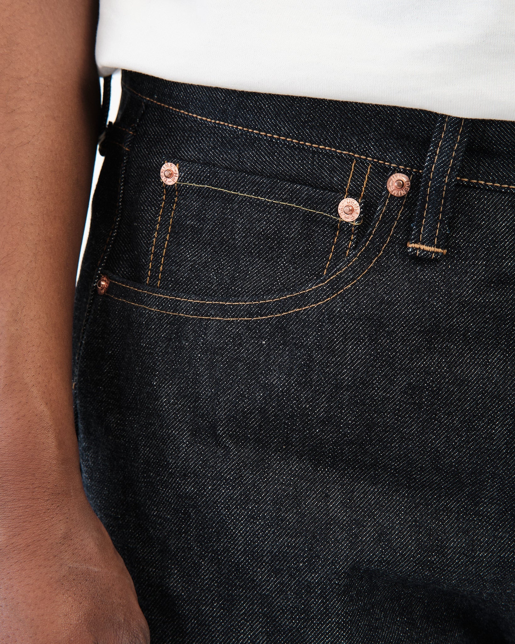 Laat je gaan met de jaren 60-geïnspireerde Lot 221 BIG E MODEL Indigo Denim van Denime. Een liefdesbrief aan Levi's iconische 'Big E' modellen, deze jeans hebben een rechte taps toelopende pasvorm en zijn vervaardigd in Japan door Warehouse & Co. Gemaakt van 100% middelzwaar ruw katoenen denim, bieden deze jeans een vintage silhouet en een comfortabele middel/hoge taille. Ontworpen met een focus op duurzaamheid, vind je doorgeslagen koperen klinknagels, verborgen achterzak klinknagels, stevige zakachterkanten, een kaartleren patch en met bartack versterkte riemlussen. Let op, het denim staat bekend om te krimpen, dus overweeg een maat groter te nemen!