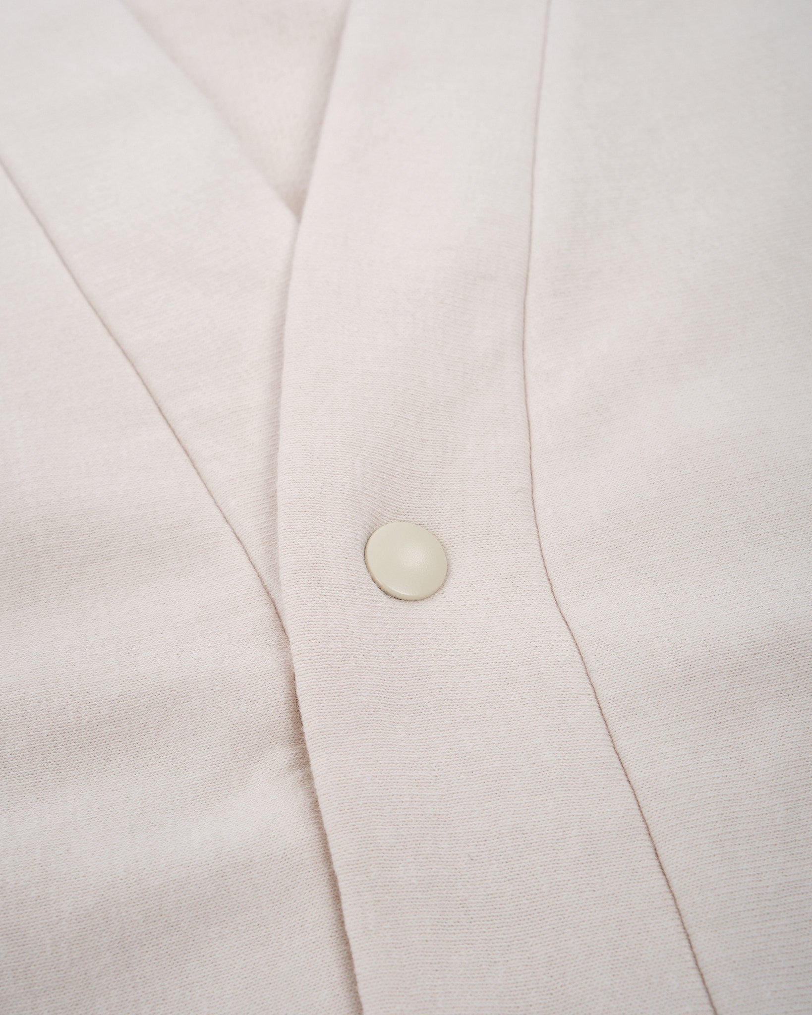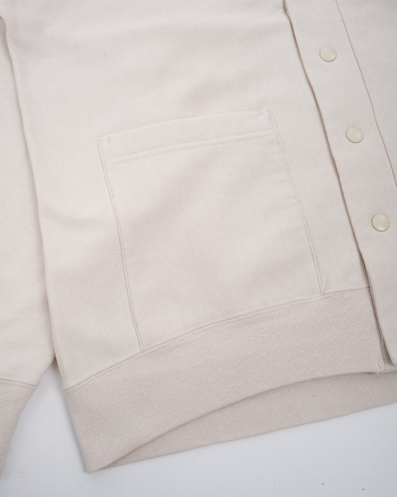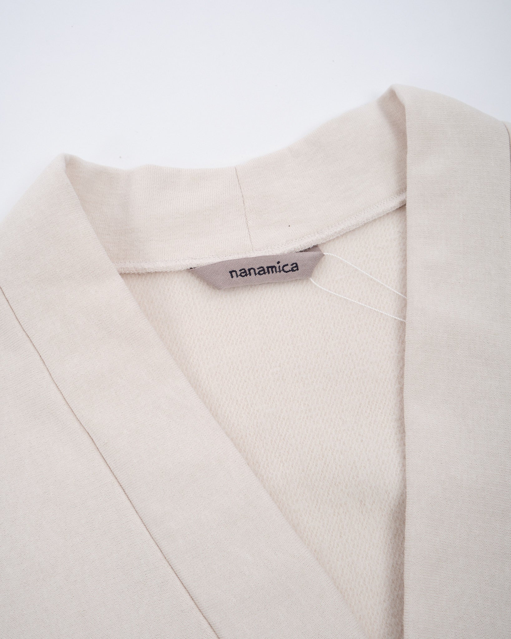 Ontdek het comfort van de NANAMICA KODENSHI Sweat Cardigan in Stone. Vervaardigd met 74% katoen en 26% KODENSHI®️ gesponnen polyester, is deze cardigan een echte game-changer. Het oppervlaktemateriaal gebruikt overgebleven katoenstukken, terwijl de achterkant pile uitstekende thermische eigenschappen heeft dankzij KODENSHI®️ technologie. Deze cardigan maakt je niet alleen mooi; het helpt ook bij fysiek herstel en ontspanning.