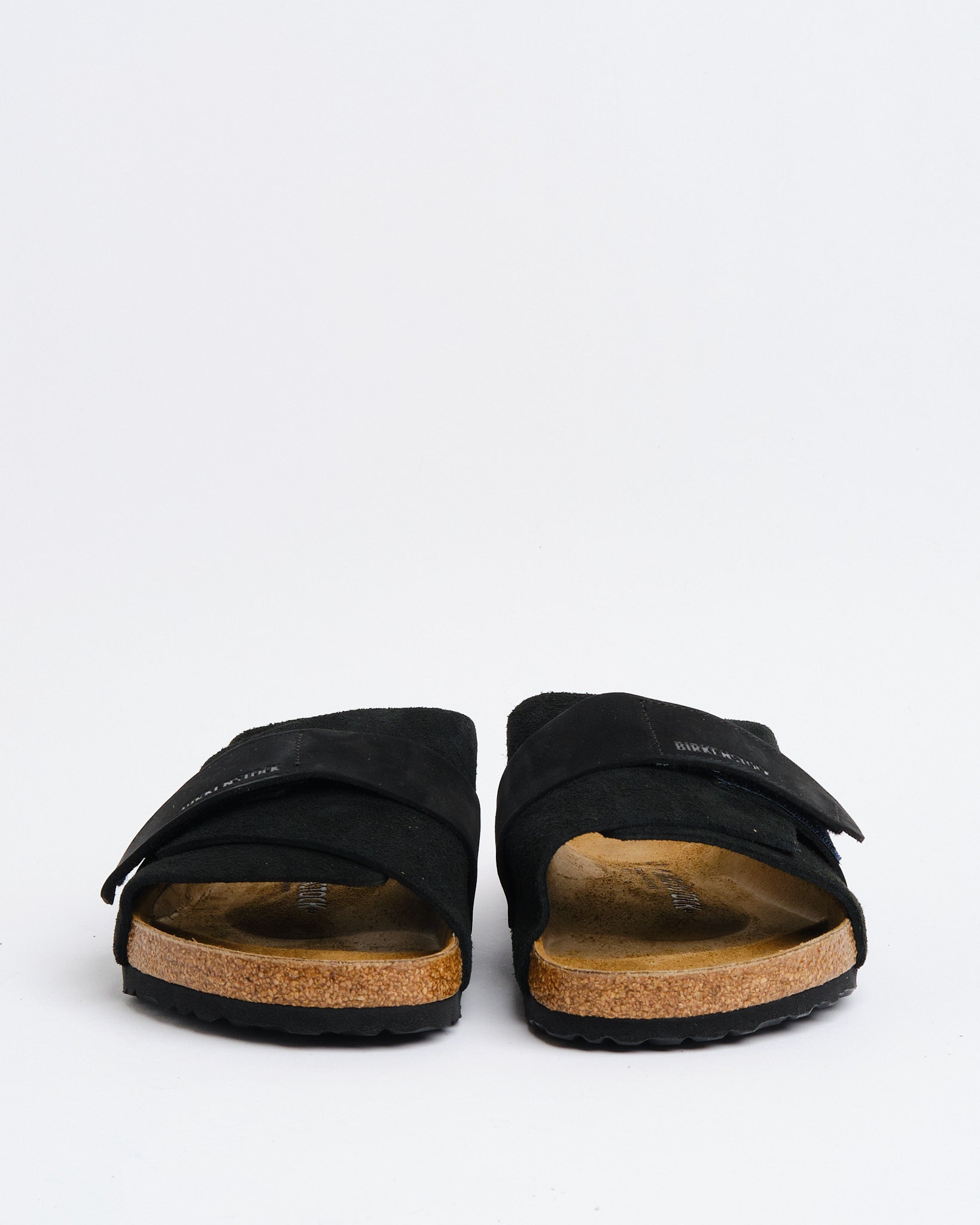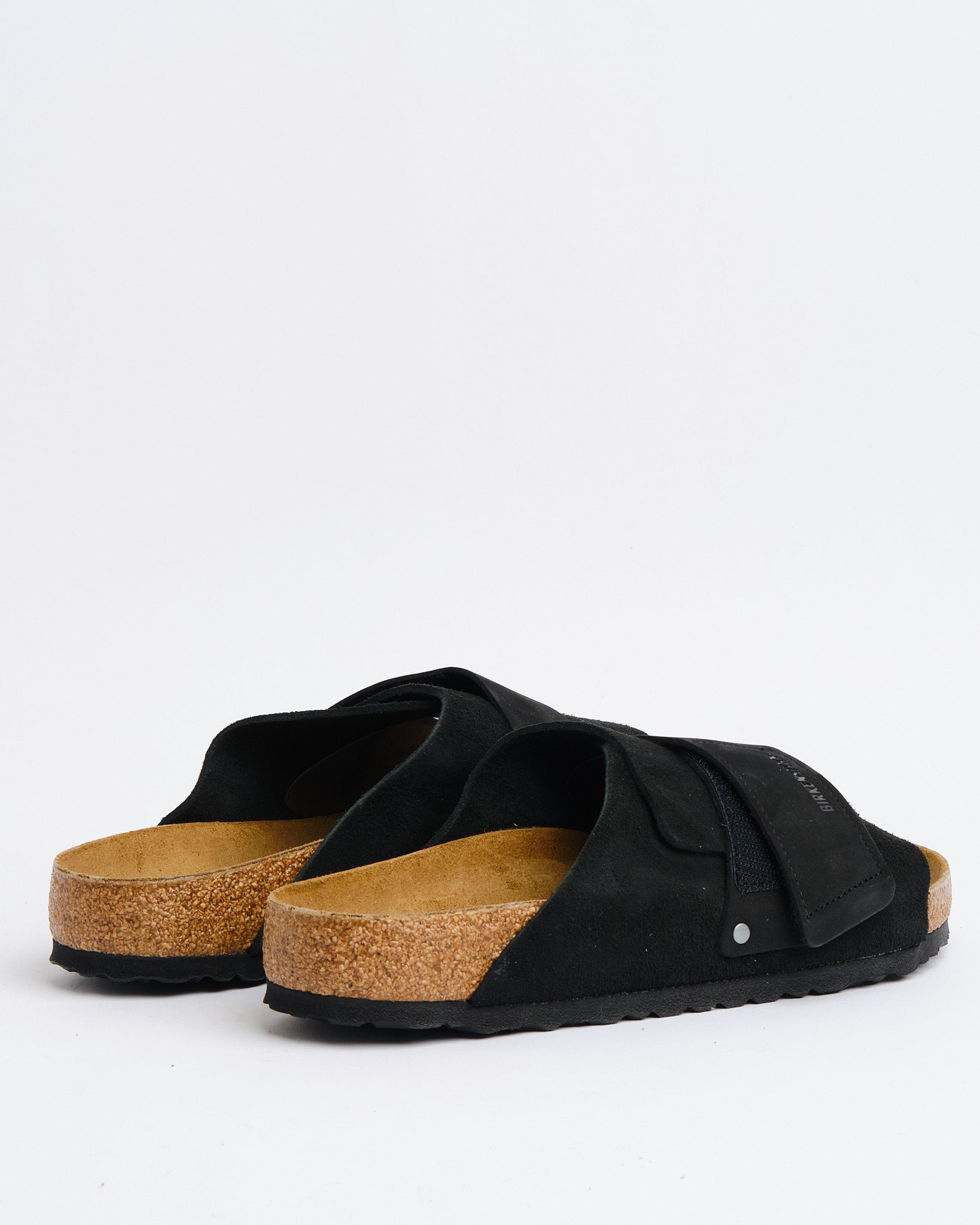 De Birkenstock Kyoto is je go-to casual sandaal die zijn kenmerkende flair leent van het iconische Zürich model. Met een compact ontwerp met een individueel verstelbare gesp, zorgt het voor een nauwsluitende pasvorm met optimale grip. Het bovenwerk combineert zacht suède en topkwaliteit nubuck leer, waardoor je voet wordt omsloten voor comfort als een tweede huid. Het anatomisch gevormde kurk-latex voetbed biedt ongeëvenaarde ondersteuning, en de EVA-zool zorgt voor lichtgewicht duurzaamheid. Al deze kenmerken komen met het "Made in Germany" kwaliteitskeurmerk.
