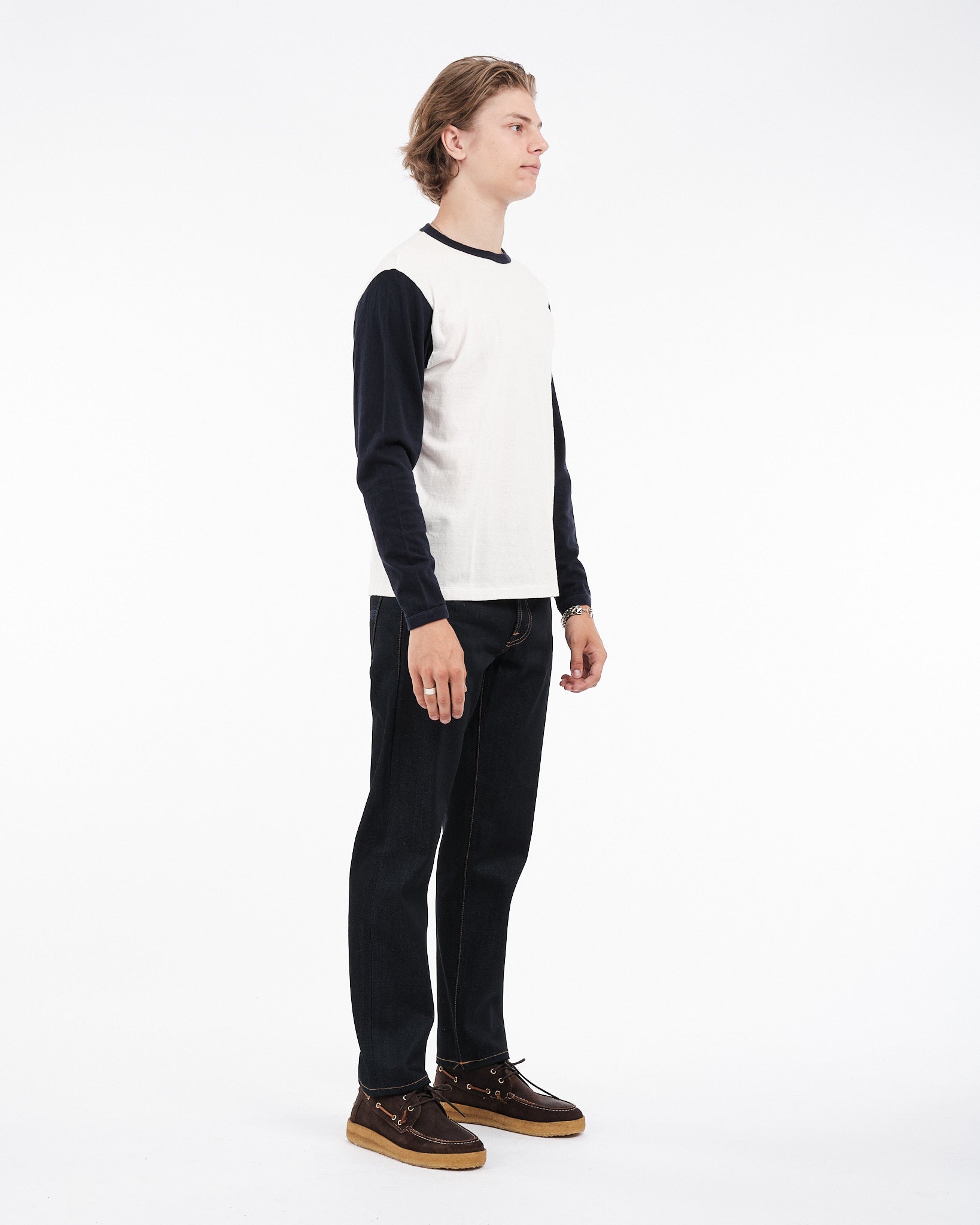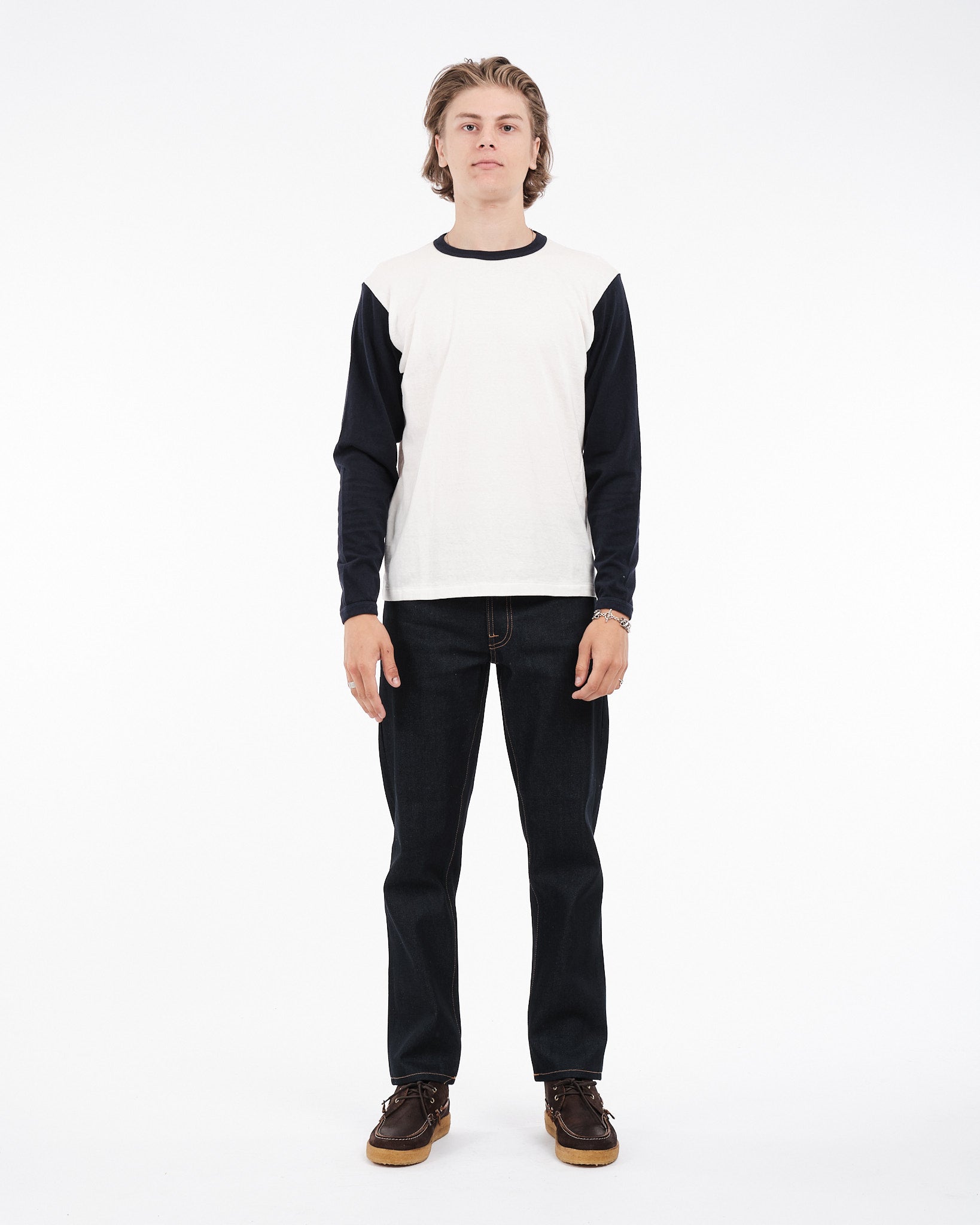 Laat je verleiden door de tijdloze aantrekkingskracht van de SUNRAY SPORTSWEAR La'ie LS T-shirt in Off White/Dark Navy "Stockton Mariners". Geïnspireerd door de stijl van de jaren '50, biedt dit shirt een traditionele pasvorm met iets kortere mouwen voor een ontspannen gevoel. Als eerbetoon aan het baseballteam Stockton Mariners toont het de kleuren en een stijlvol geribbeld kraagontwerp. Elk T-shirt, met een gewicht van 260 gram, wordt zorgvuldig met de hand gemaakt in Japan met behulp van rondbreimachines. Het bewuste langzame breiproces met 24 rotaties per minuut zorgt voor een kledingstuk dat zijn vorm feilloos behoudt. Met een nalatenschap die teruggaat tot 1926, staat Sunray Sportswear bekend om zijn aandacht voor detail en kwaliteitsvakmanschap. Let op; Dit item valt klein; overweeg een maat groter te nemen in vergelijking met andere Sunray stukken.