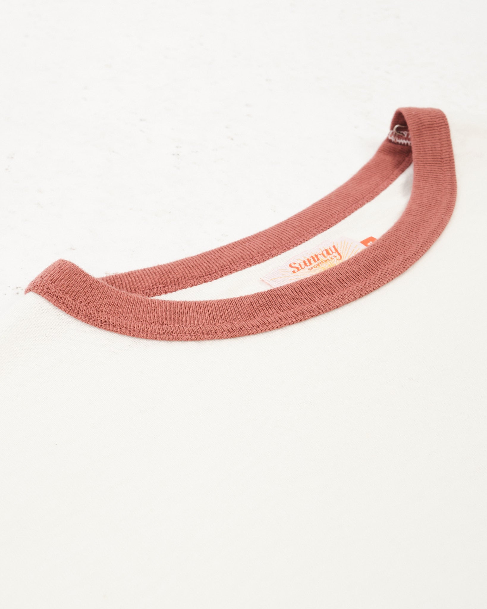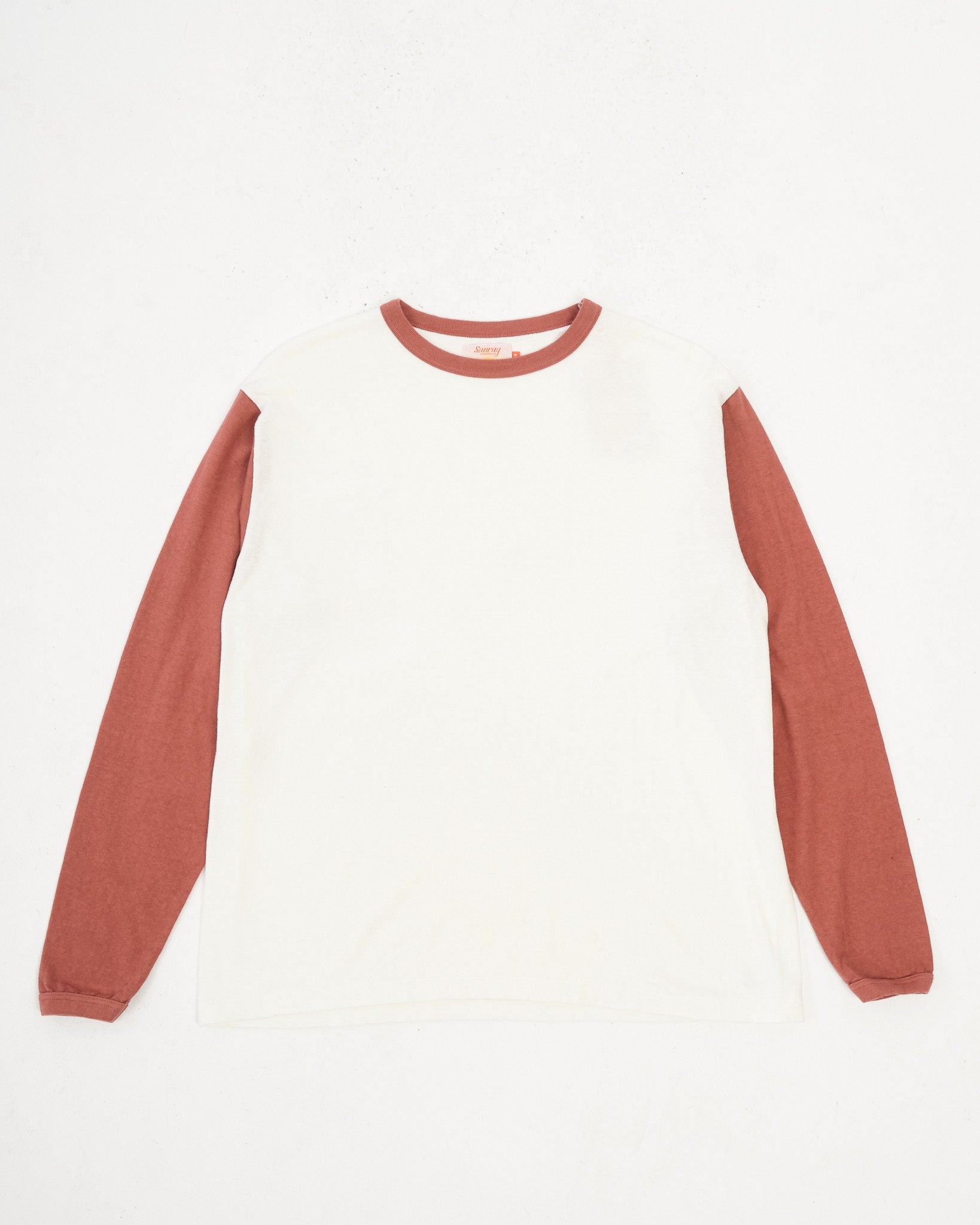 La'ie LS T-shirt Off White / Spiced Apple "Brooklyn Robins" van Sunray Sportswear. Sunray T-shirts hebben een traditionele pasvorm geïnspireerd door het gevoel van de jaren 50. Ontspannen en iets kortere mouw dan de Haleiwa met contrasterende kleuren als eerbetoon aan het Brooklyn Robins honkbalteam. De kraag, rib-ontwerp en stoffen zijn ook traditioneel. 260 g. Gemaakt in Japan.