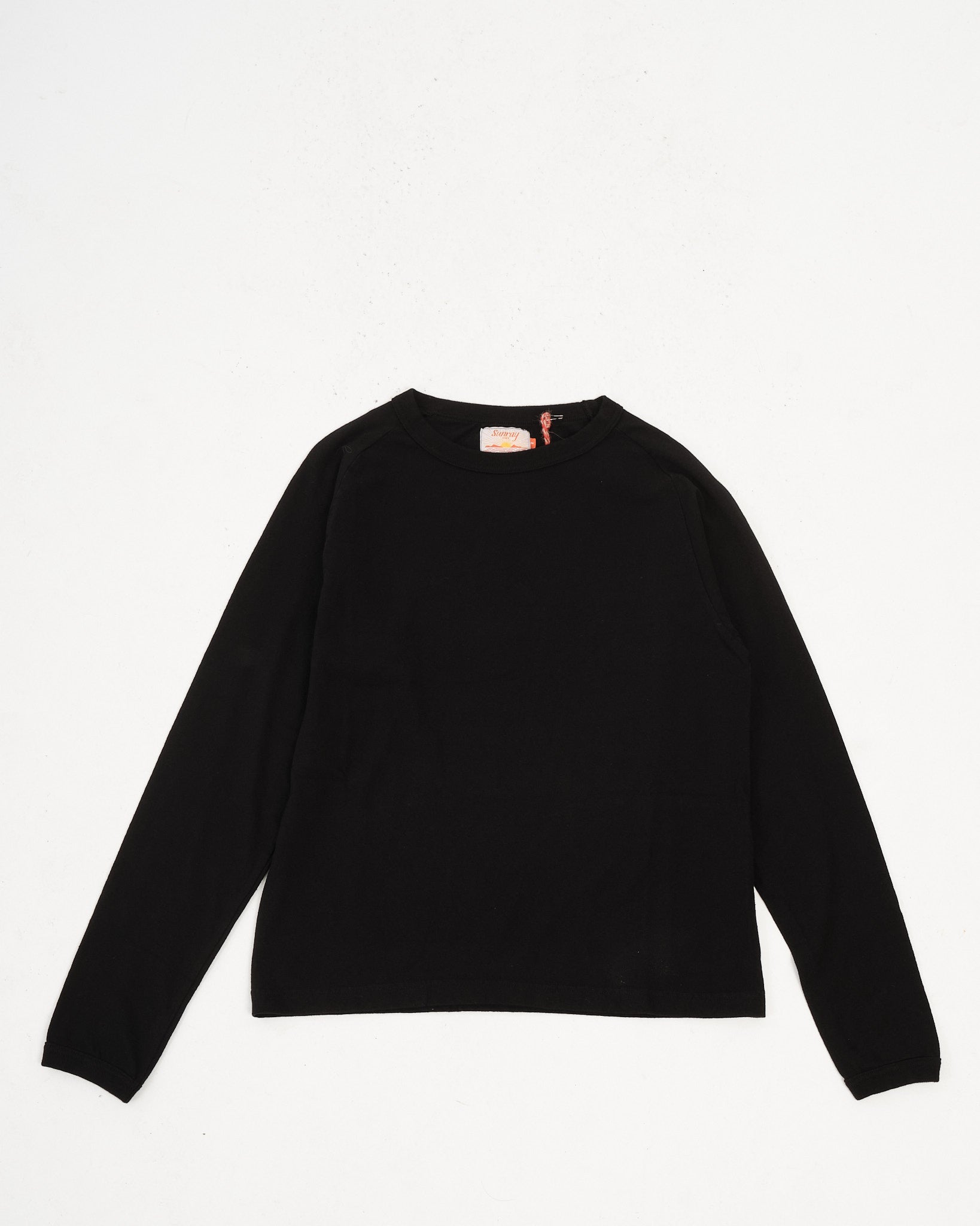 Laka LS T-Shirt Antraciet van Sunray Spirit. Sunray T-shirts hebben een traditionele pasvorm geïnspireerd door het gevoel van de jaren 50. Ontspannen met een normale pasvorm. De kraag, rib-ontwerp en stoffen zijn ook traditioneel. 260 g gerecycled Ochiwata jersey. Gemaakt in Japan.