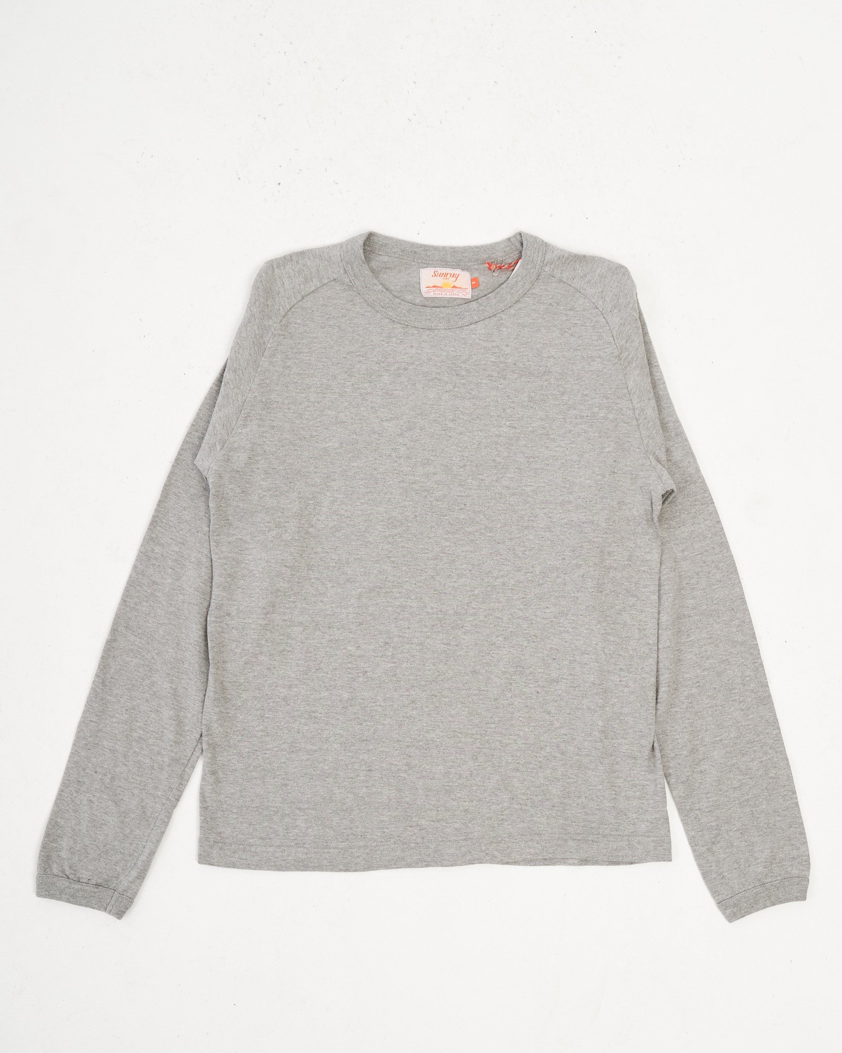 Laka LS T-shirt Hambledon Grijs van Sunray Spirit. Sunray T-shirts hebben een traditionele pasvorm geïnspireerd door het gevoel van de jaren '50. Ontspannen met een normale pasvorm. De kraag, rib-ontwerp en stoffen zijn ook traditioneel. 260 g gerecycled Ochiwata jersey. Gemaakt in Japan.
