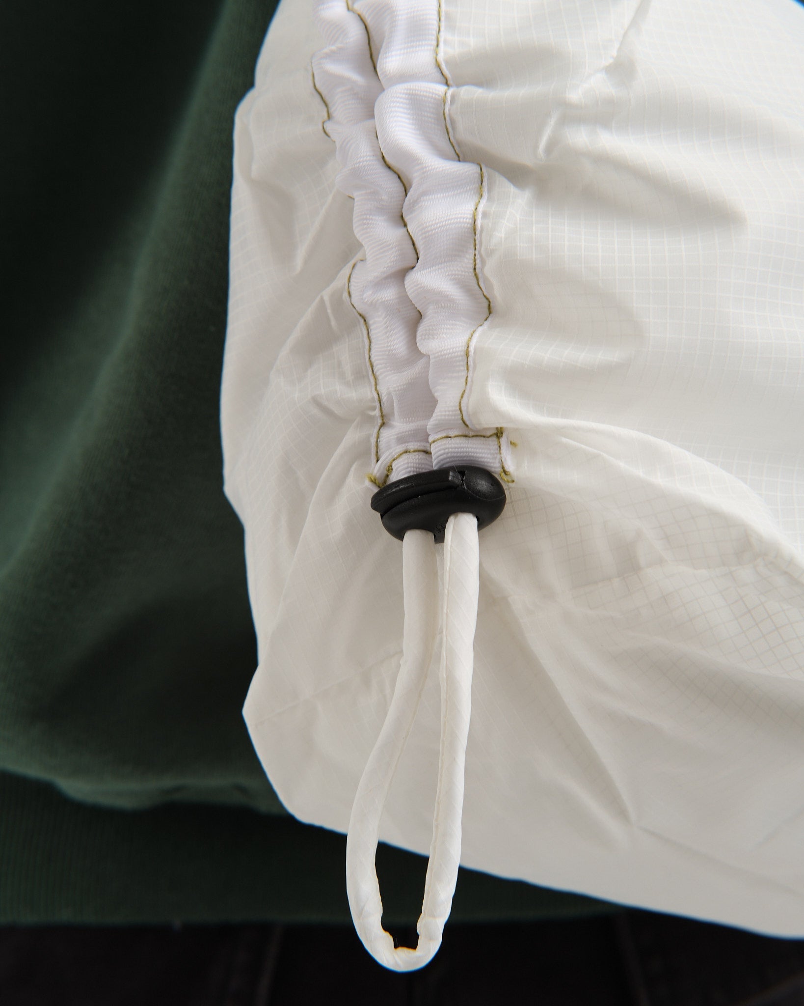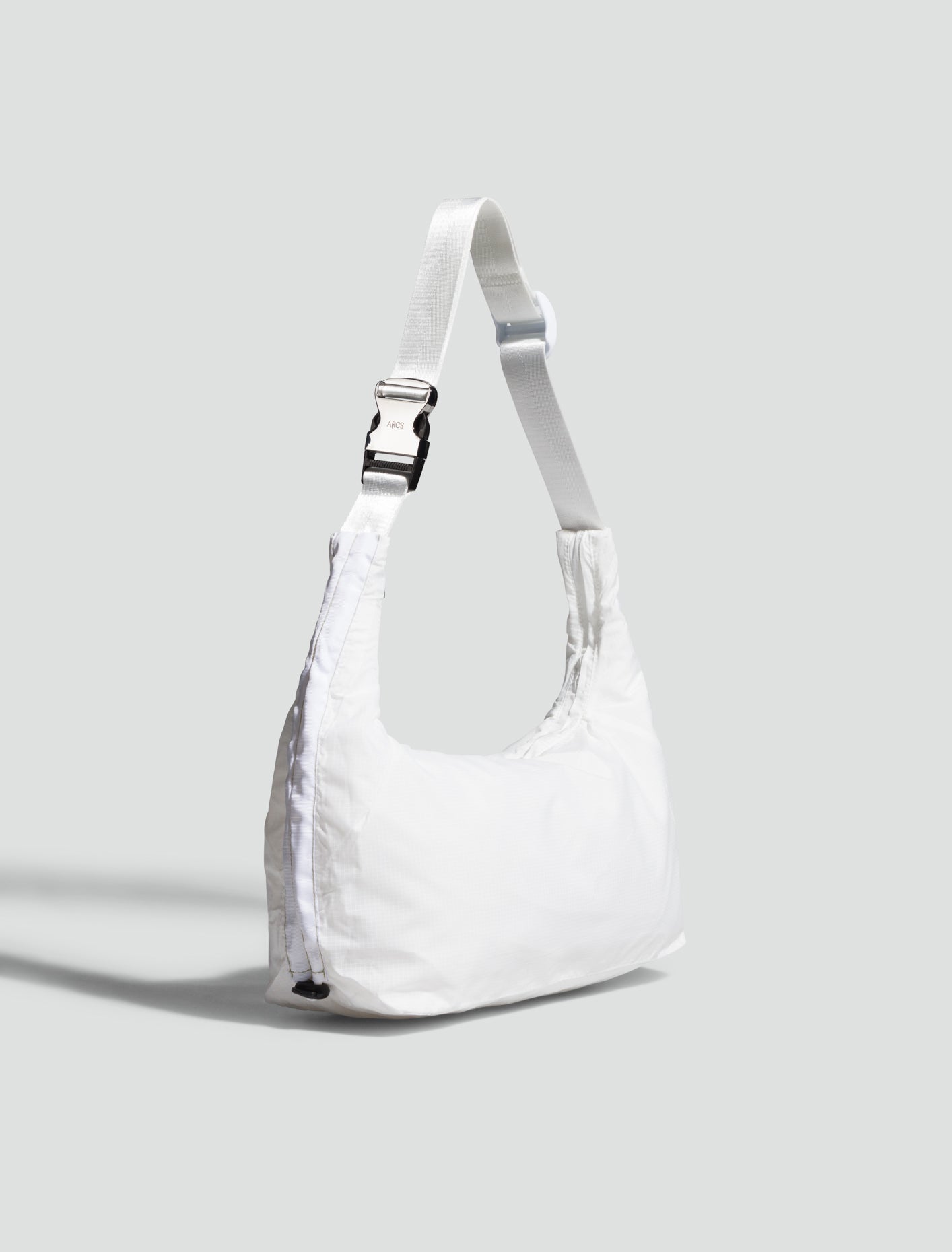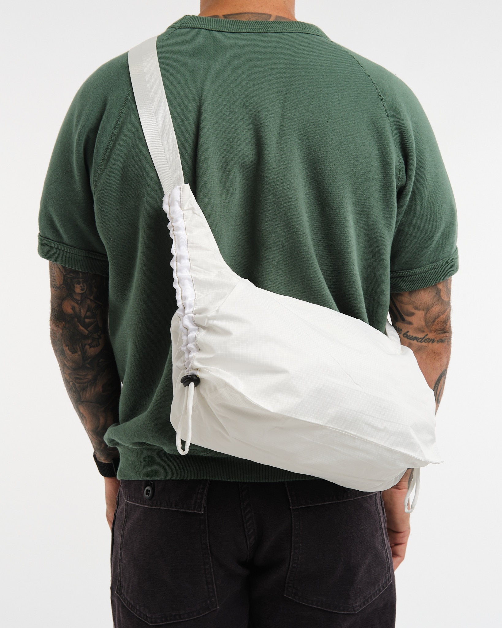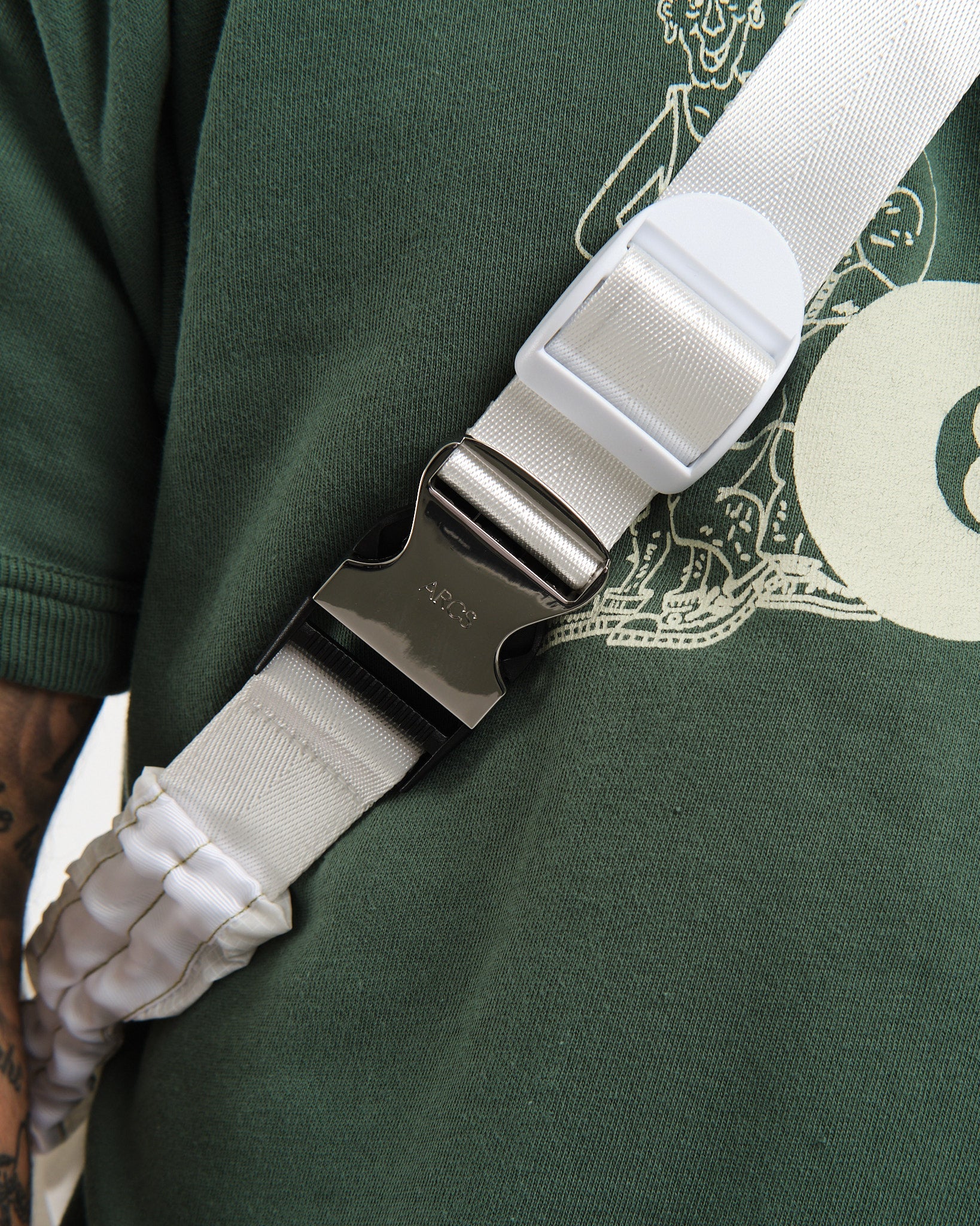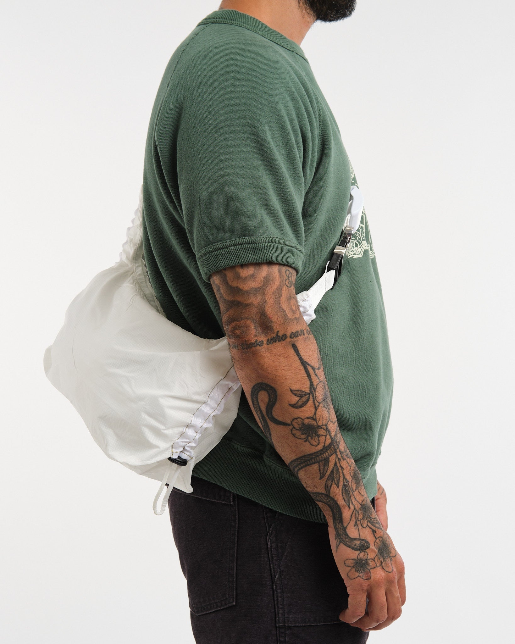 De ARCS LONDON Little Hey Parachute in White is een compacte en praktische crossbody of schoudertas, ontworpen voor dagelijks gemak. Vervaardigd uit 100% gerecycled polyester, weerspiegelt deze tas de toewijding van ARCS LONDON aan duurzaamheid. Het ontwerp bevat verstelbare trekkoorden aan beide zijden, waardoor het moeiteloos te verstellen is om strak onder de arm te passen. Uitgerust met merkhardware en een binnenzak met rits, verzekert het zowel stijl als functionaliteit. Het hoofdcompartiment heeft een hoogte van 21 cm, een basisbreedte van 32 cm, en een basisdiepte van 12,5 cm. Handgemaakt in Londen, deze tas is een toonbeeld van kwaliteitsvakmanschap.