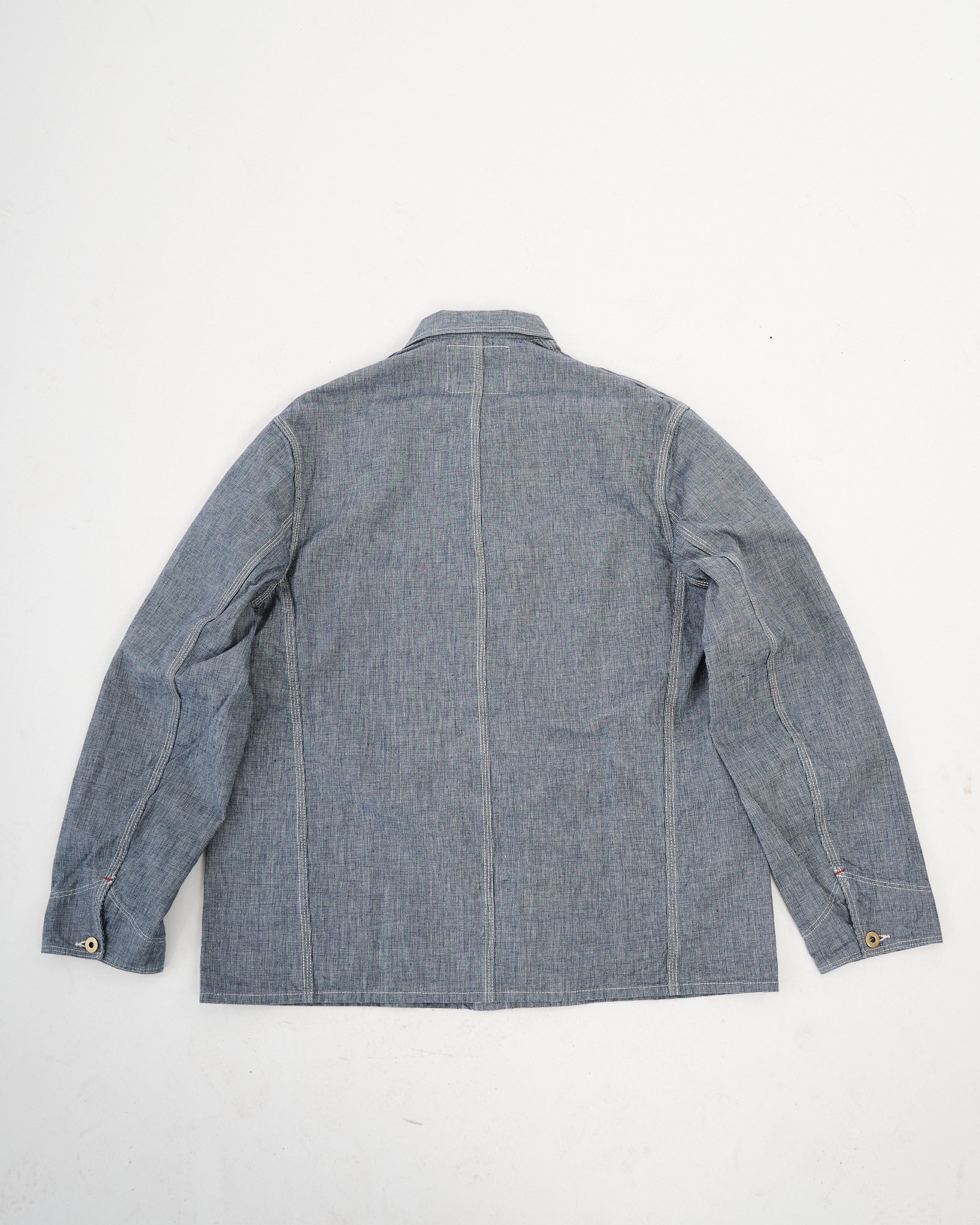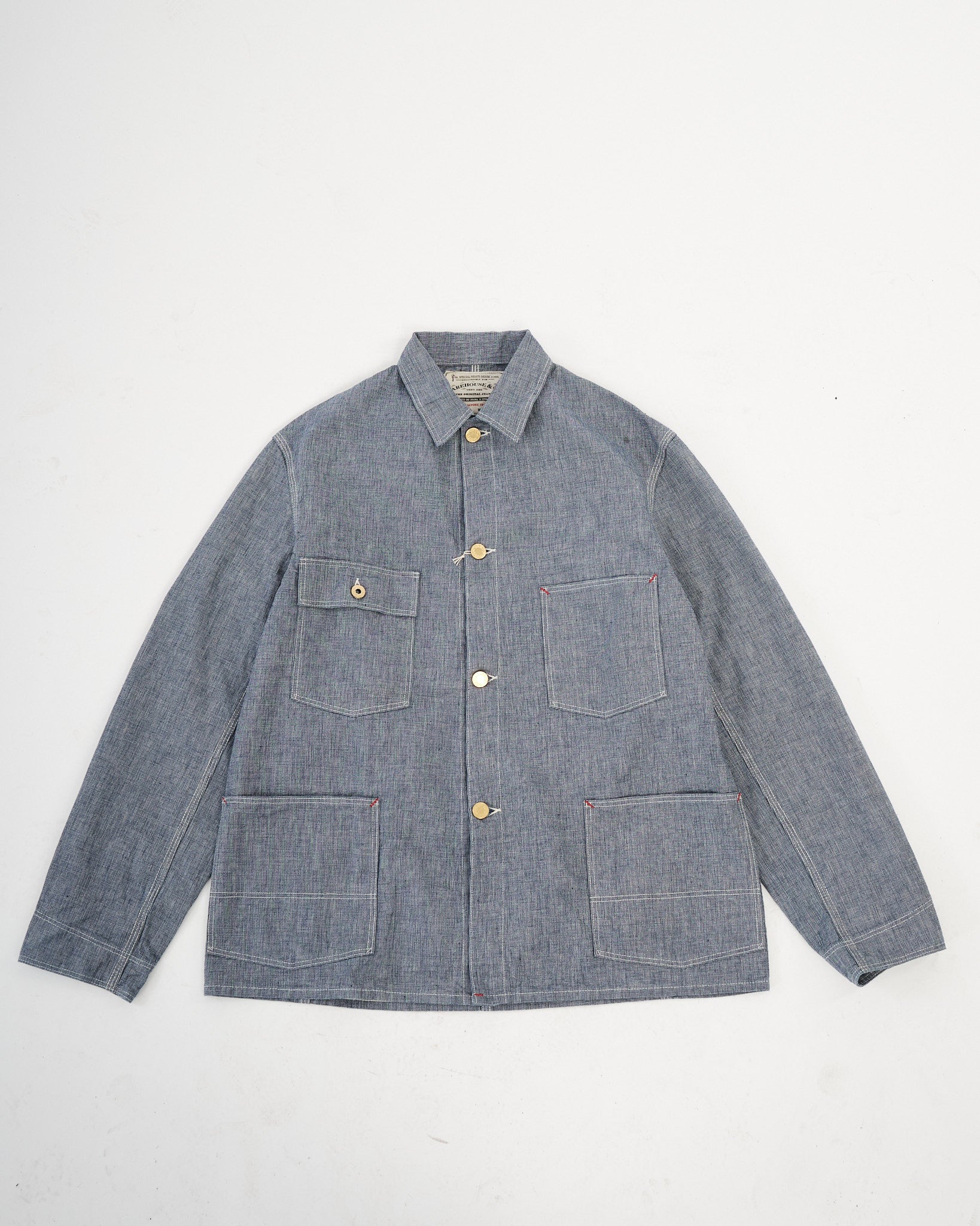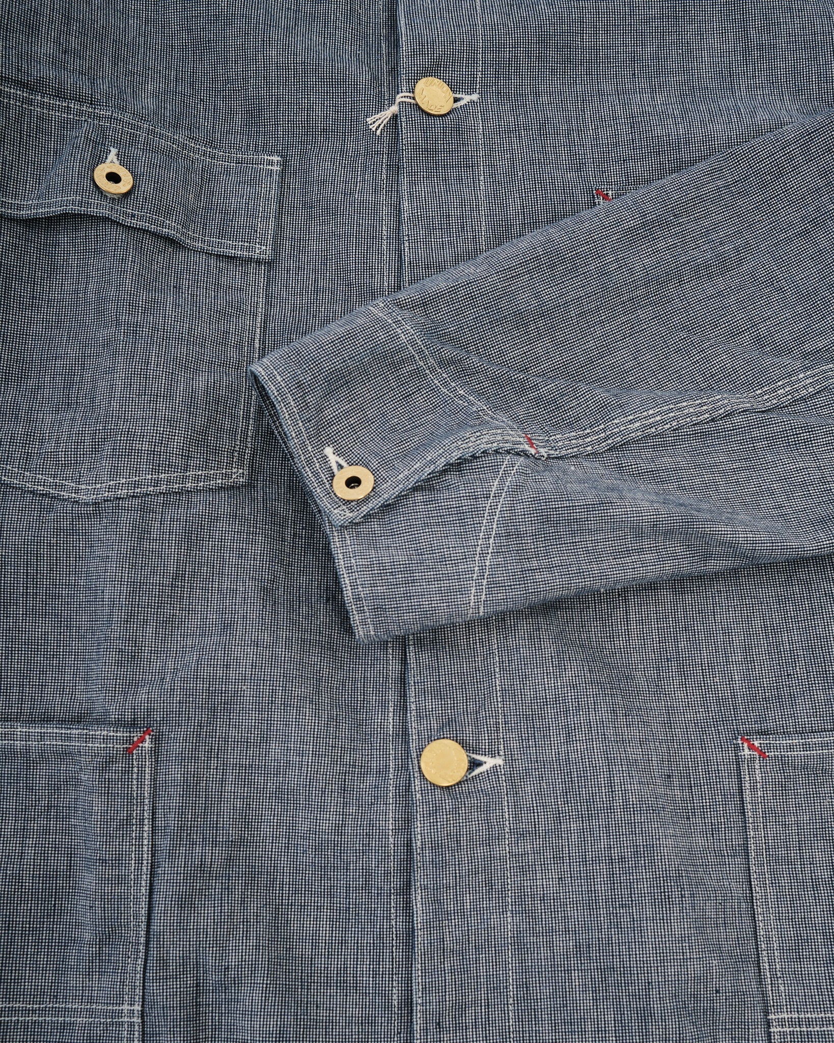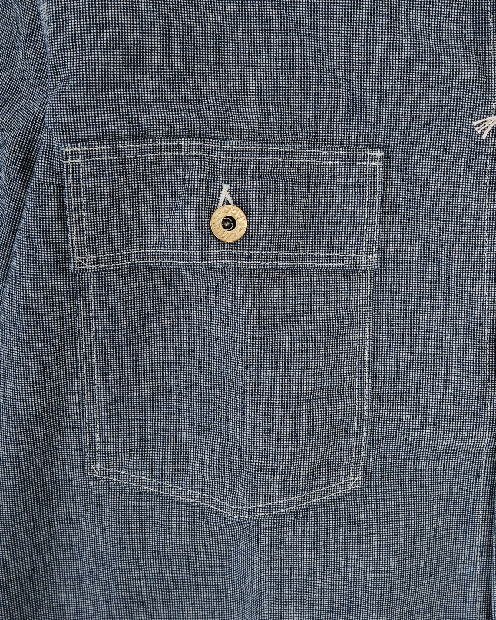 The Lot 2195 Indigo Pincheck Coverall by Warehouse is a meticulous reproduction of pre-war utility garments made for lighter-duty labor. Woven from 10×10 selvedge indigo pincheck — a rare pattern blending indigo and off-white threads — this fabric was historically favored for summer-weight uniforms used in cleaner environments like shops and warehouses. True to the era, this coverall features vintage-style change buttons, red Bardock thread at stress points, and classic chest and cuff button detailing. Built with Warehouse’s signature dedication to fabric texture and authenticity, this piece offers timeless construction with a subtle workwear twist.