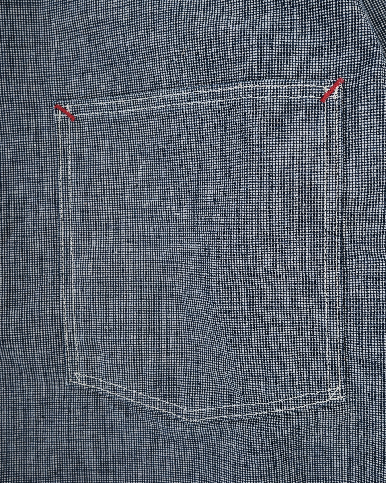 • Gemaakt van 10×10 selvedge indigo pincheck katoen