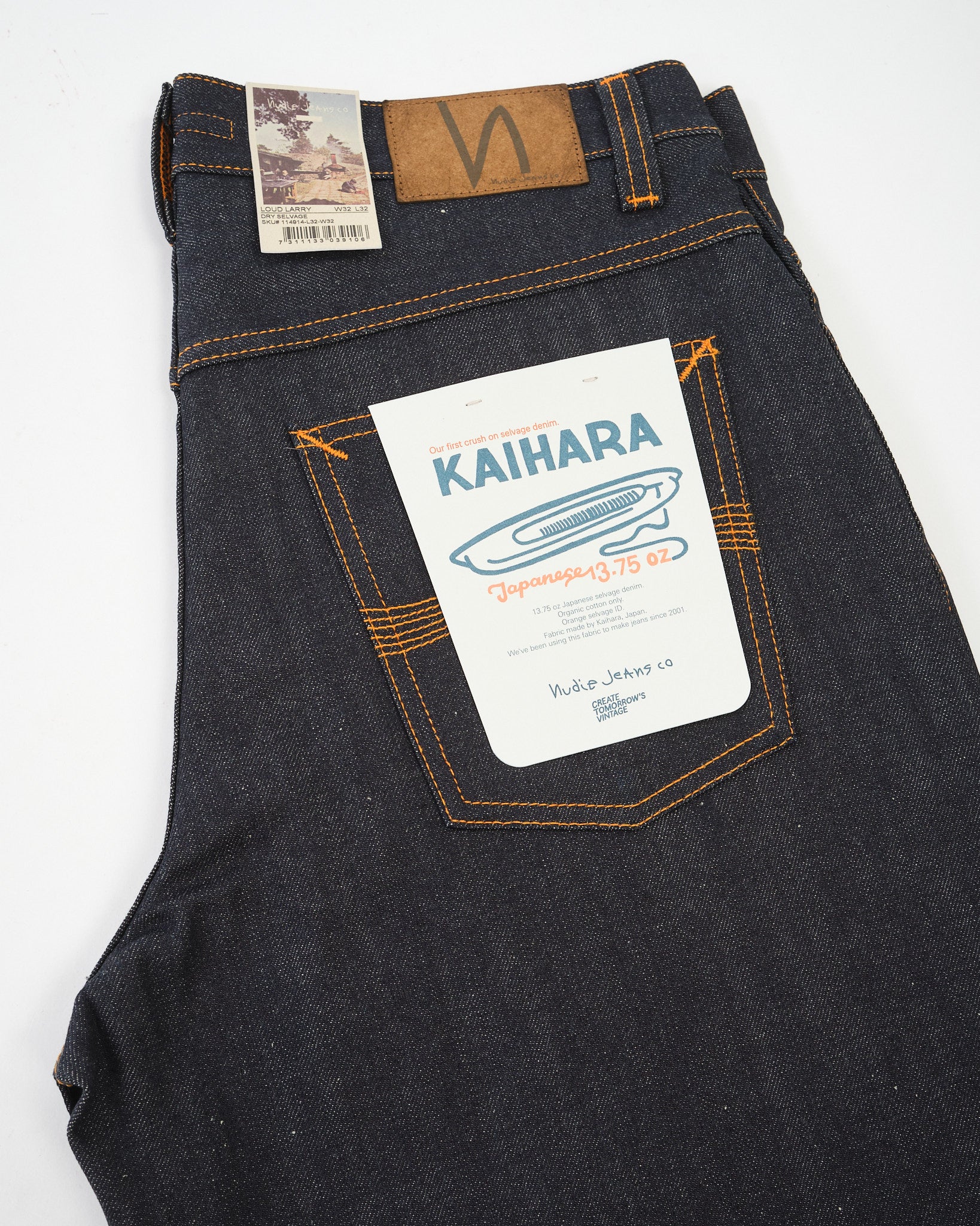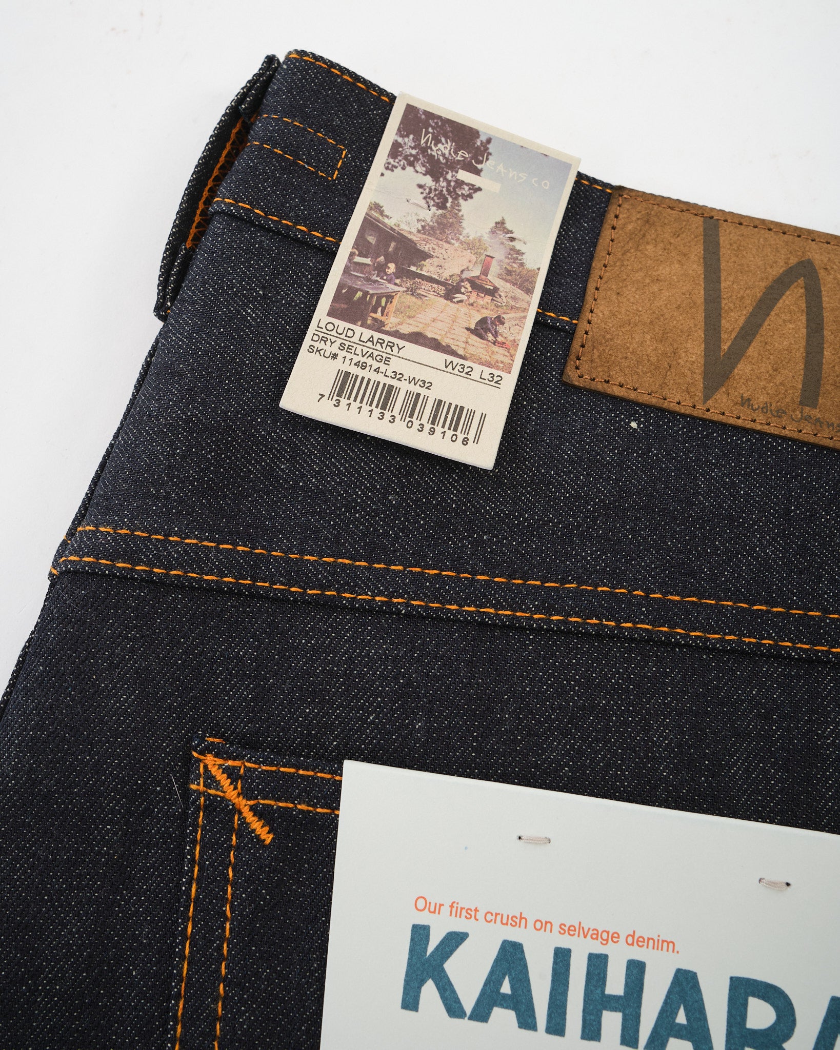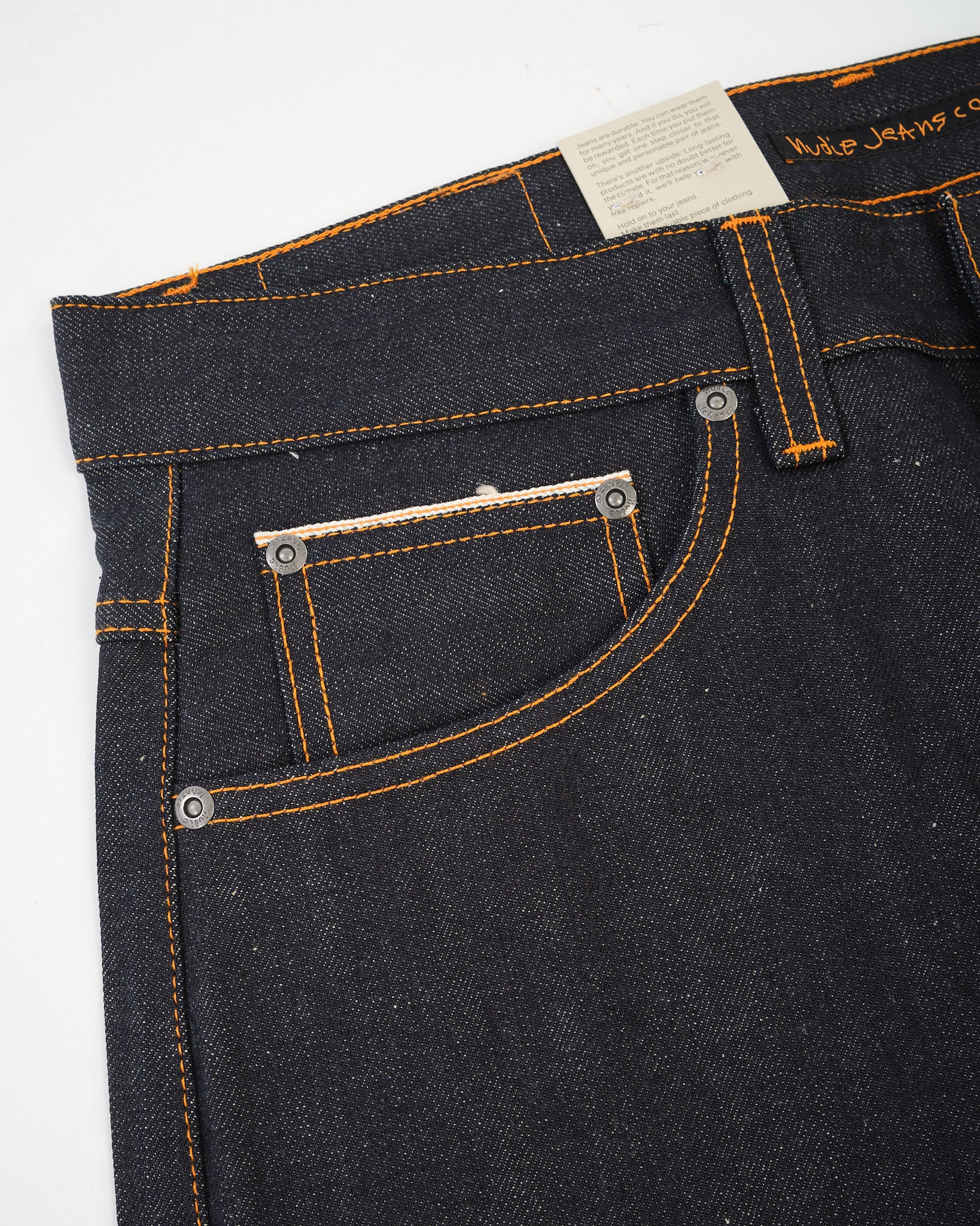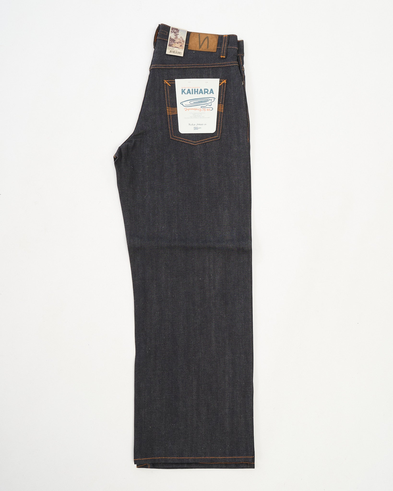 Oranje draad op alle naden – klassieke Nudie handtekening