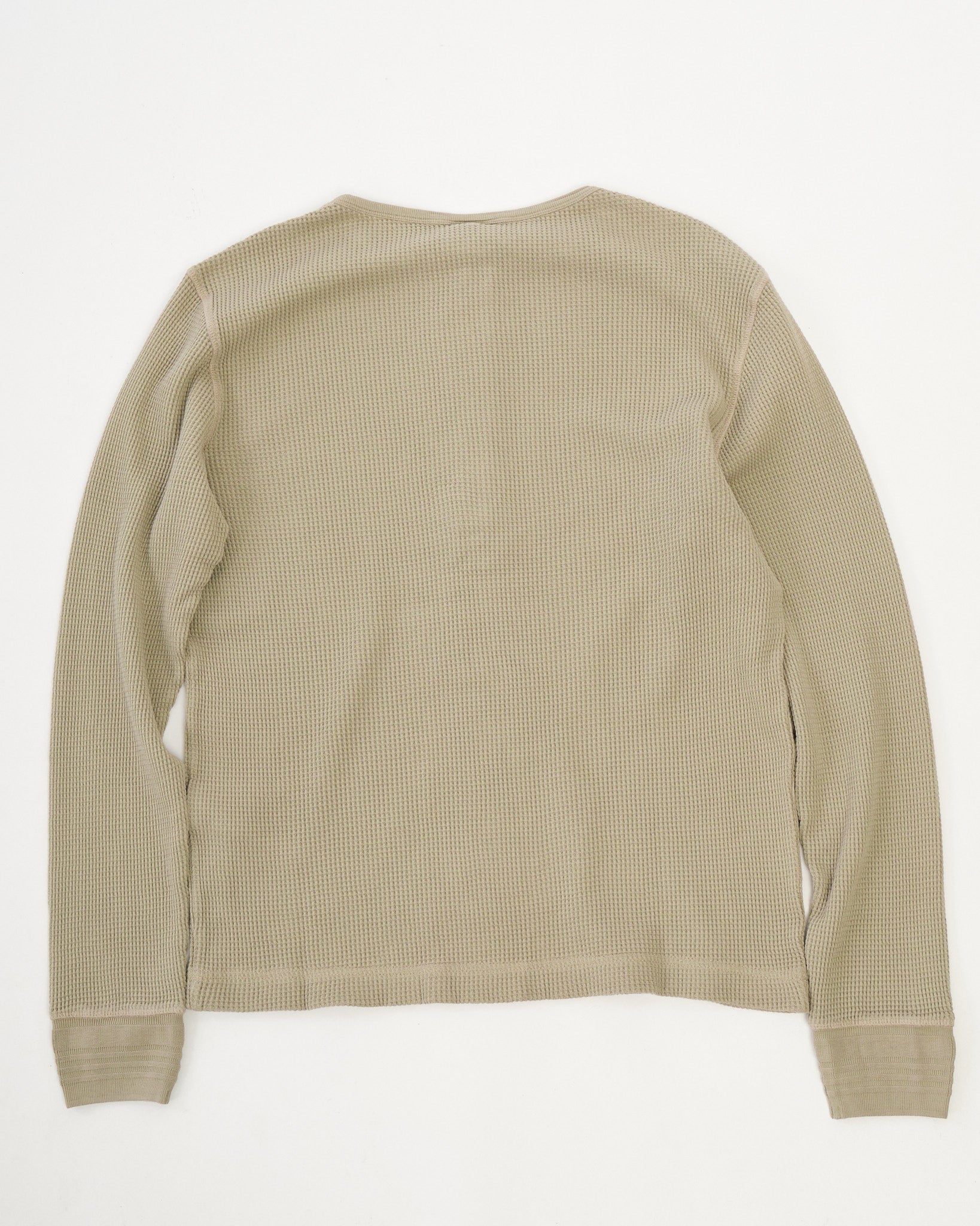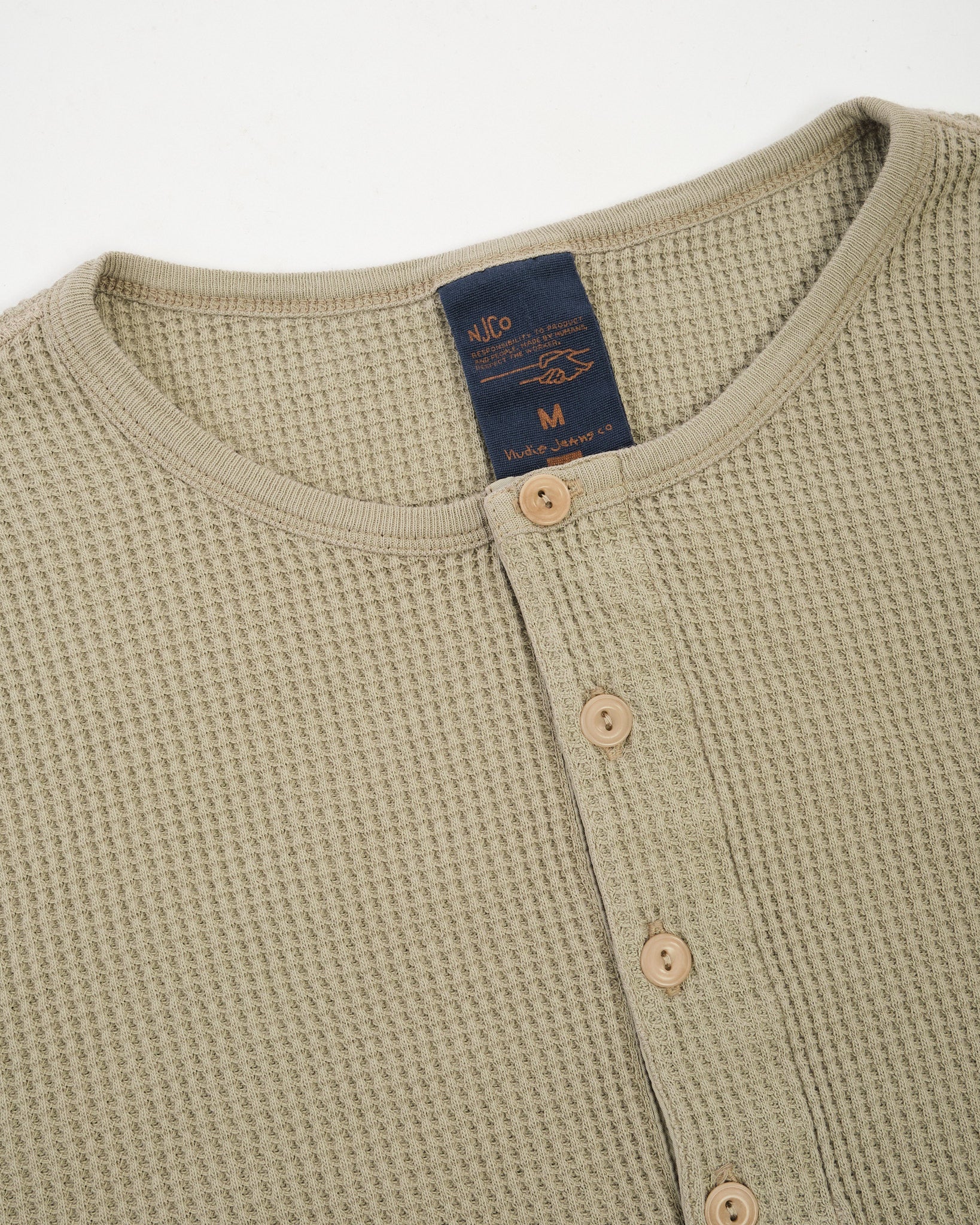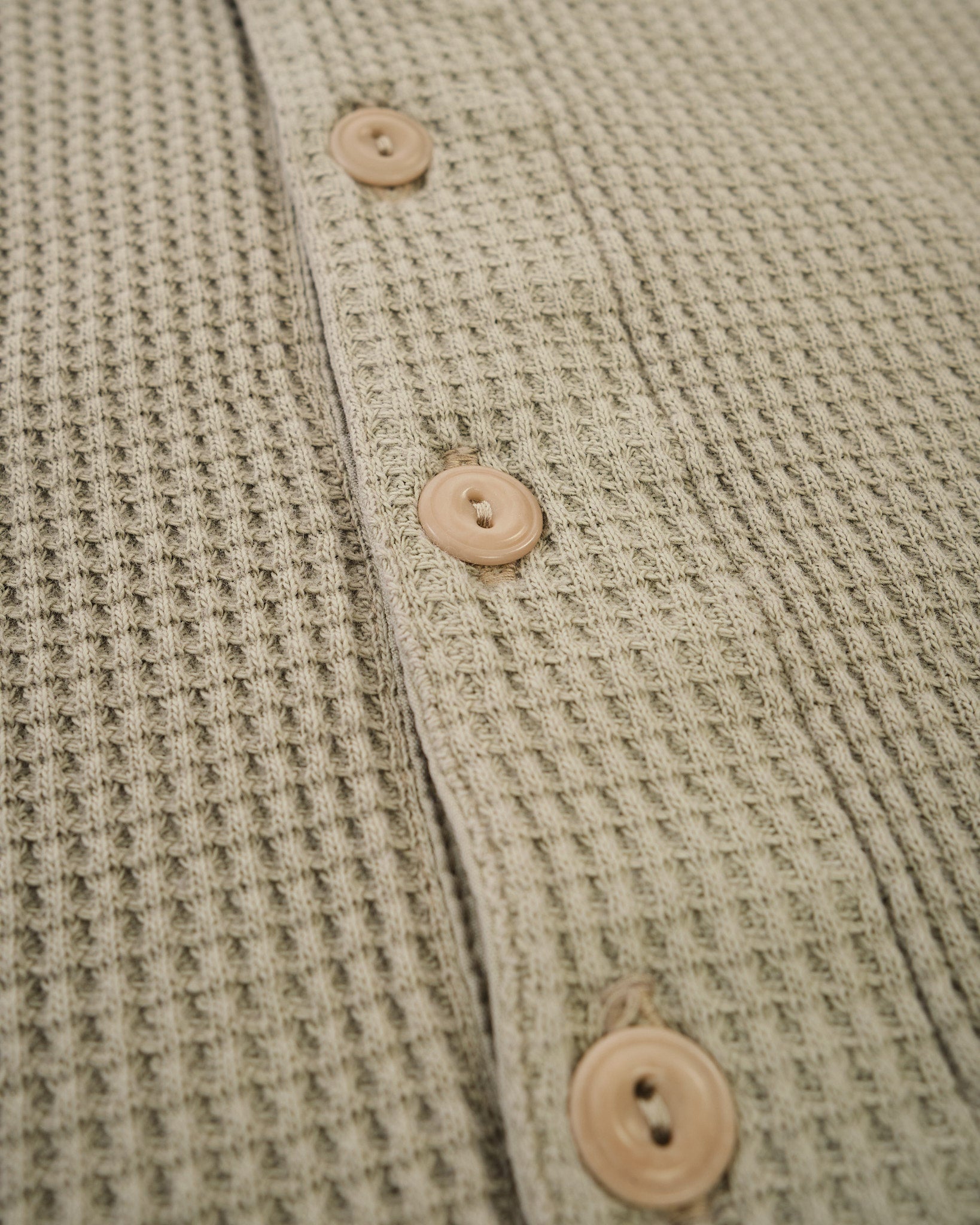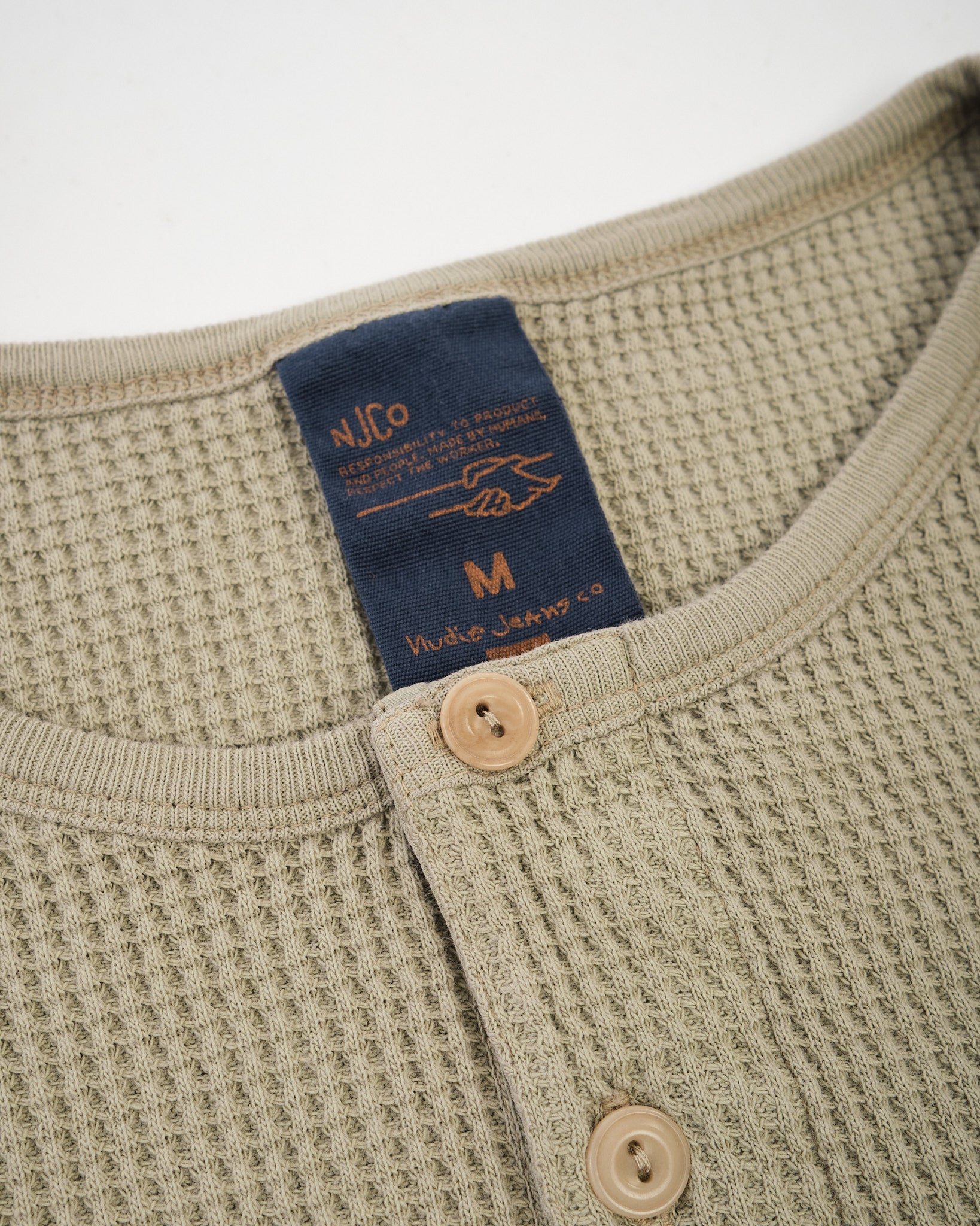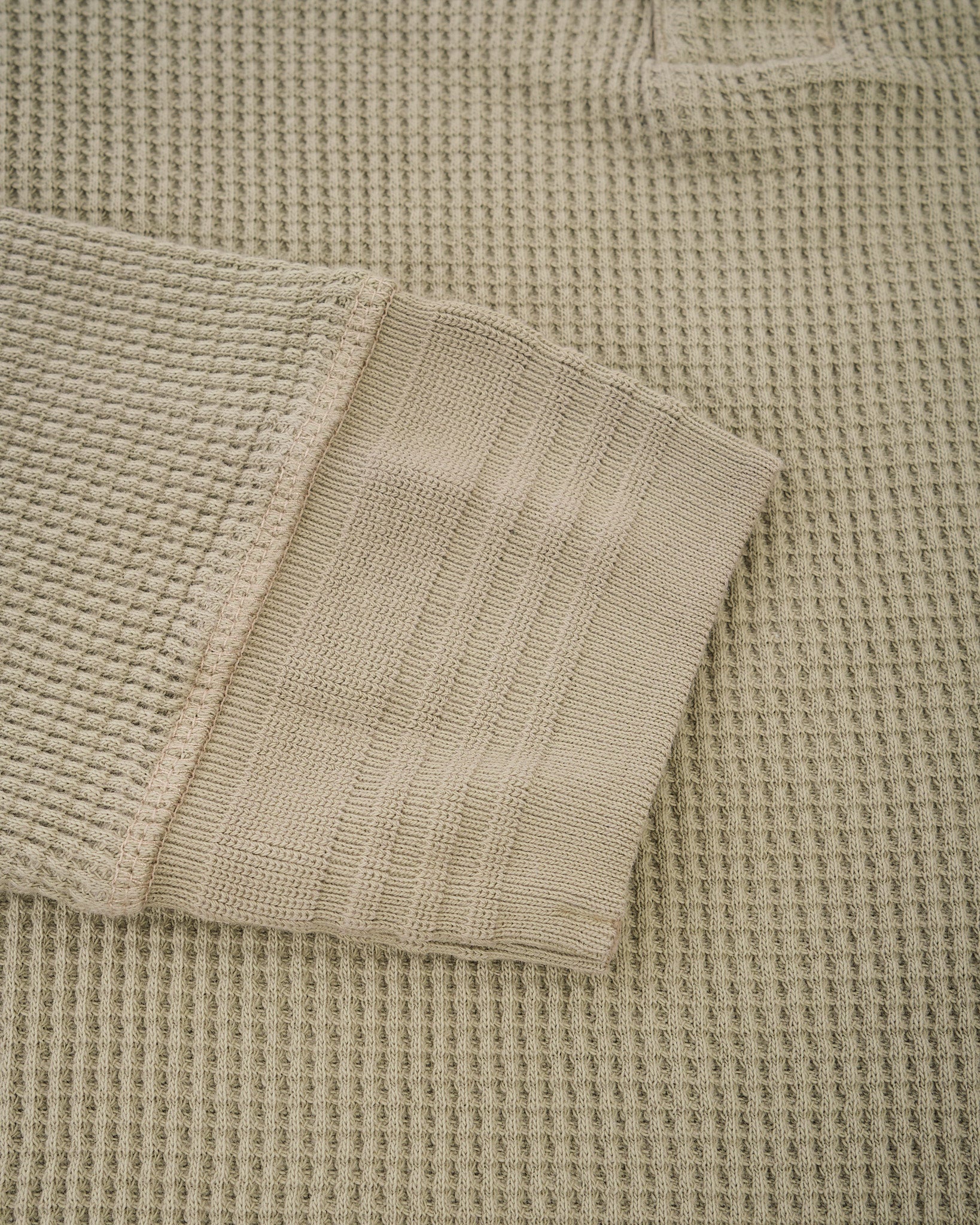 The LS Henley Waffle T-Shirt in Desert is the kind of staple that does more than just layer well — it adds texture, structure, and everyday comfort. Crafted from soft organic cotton in a classic waffle knit, it features a four-button placket for that timeless Henley look. The cuffs and collar are trimmed with 1x1 ribbing to keep the shape sharp. With its regular fit and cozy feel, this long-sleeve tee works just as well under flannel as it does on its own.