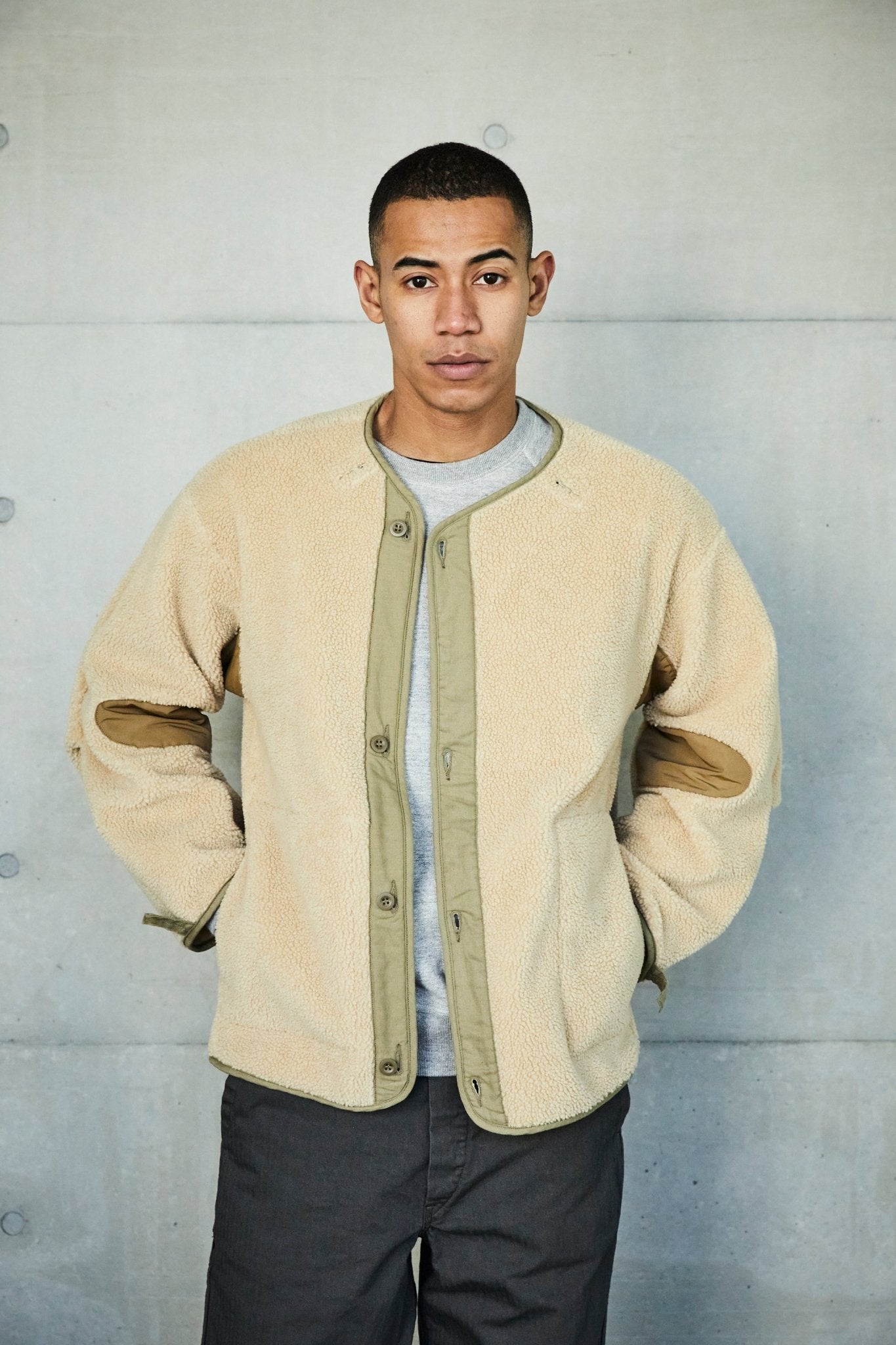 De veelzijdige OrSlow 03-6165-357 M65 Fish Tail Coat Liner in Camel dient als een laag onder het iconische M65 veldjack of kan alleen worden gedragen als een lichtgewicht buitenkledingstuk uit Japan met hoogwaardige materialen voor warmte zonder extra bulk - perfect, voor veranderende seizoenen en het toevoegen van een gezellige touch aan je garderobe die goed past bij verschillende stijlen.