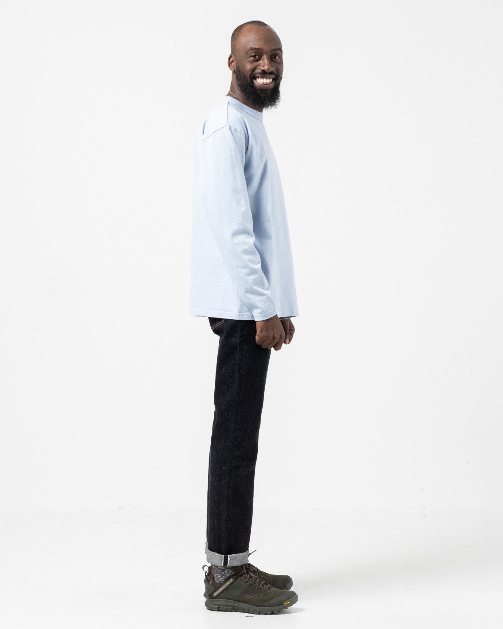 Makaha LS T-Shirt Duck Egg van Sunray Sportswear. Sunray T-shirts hebben een traditionele pasvorm geïnspireerd door het gevoel van de jaren 50. Ontspannen, vierkanter en iets korter dan een moderne pasvorm. De kraag, rib-ontwerp en stoffen zijn ook traditioneel. Sunray heeft ontwerpbescherming op het nekdetail van de Makaha T-shirts. 300 g. Gemaakt in Japan.