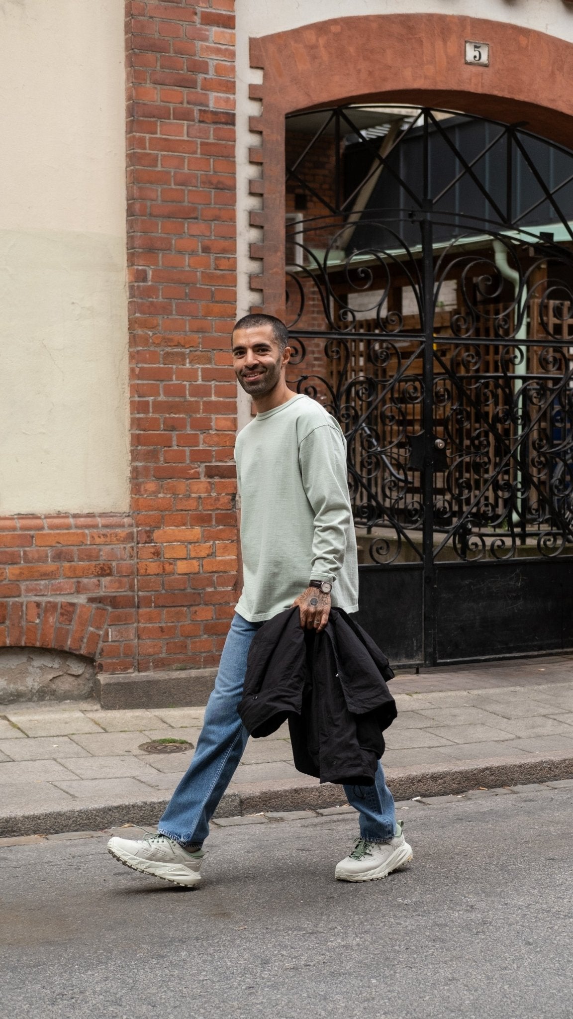 Ludjero is 179 cm lang, slank gebouwd en draagt M.