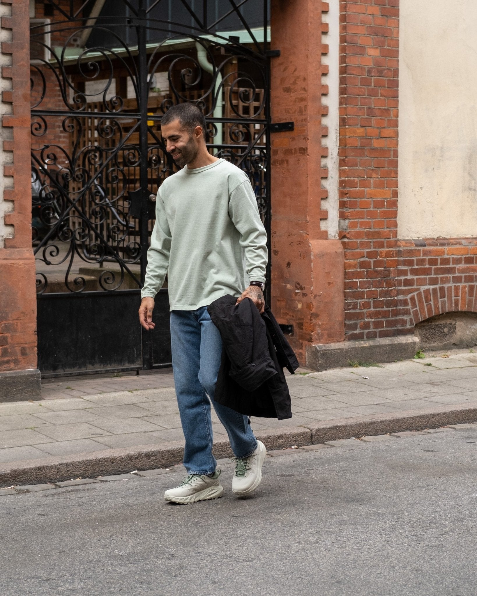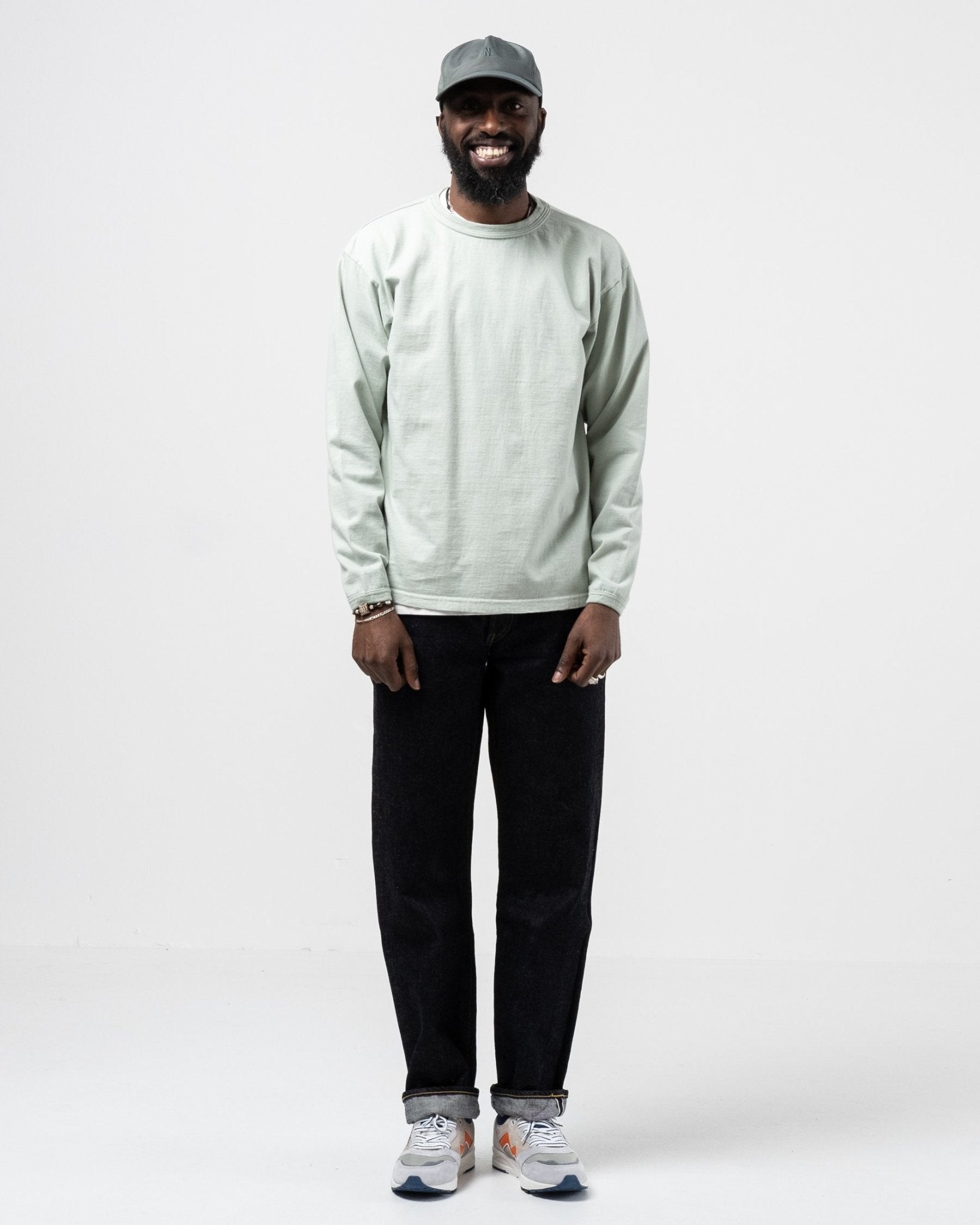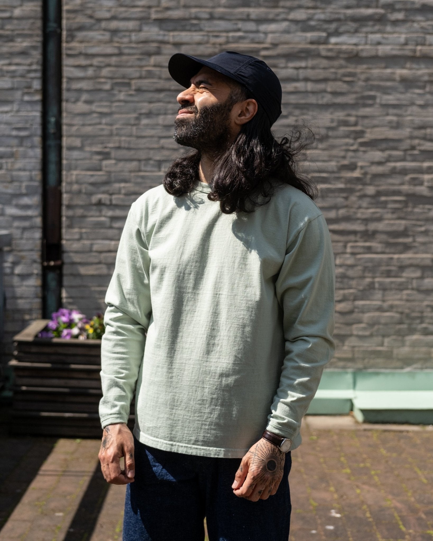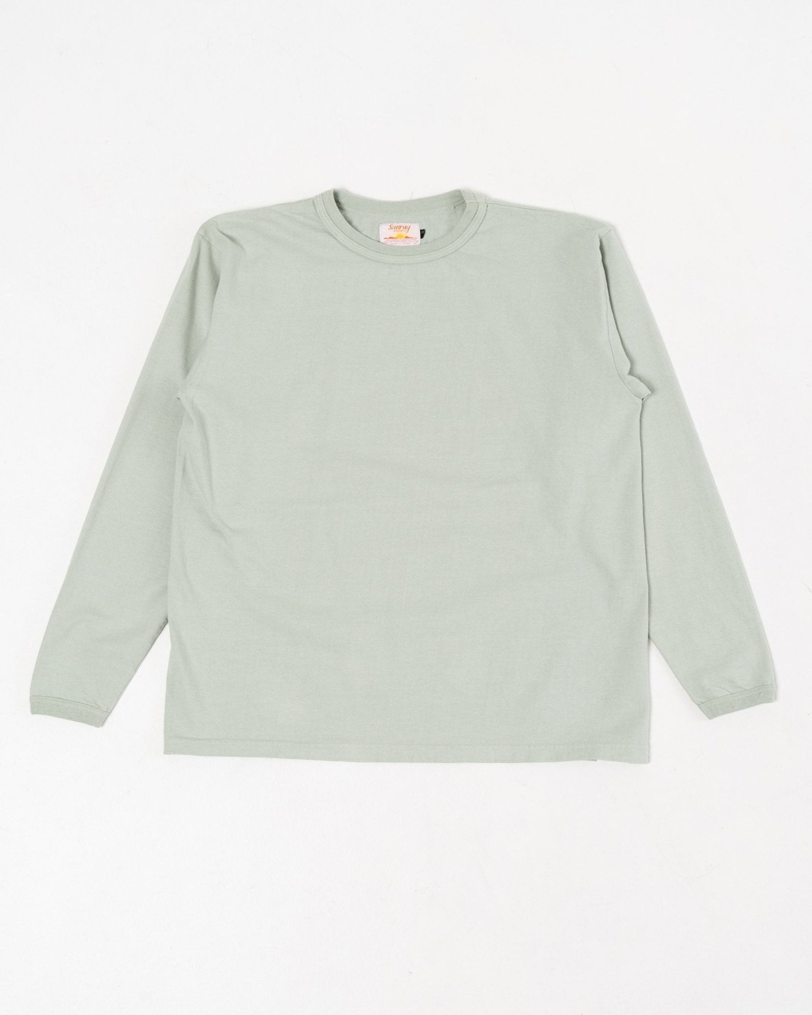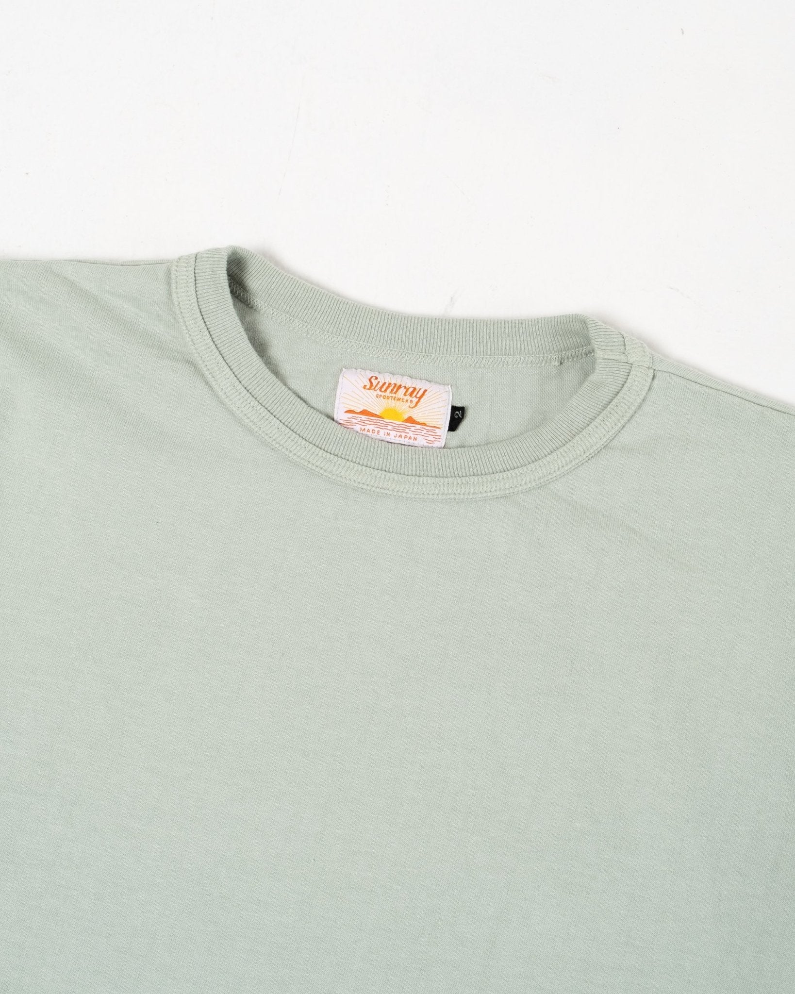 Makaha LS T-Shirt Sage van Sunray Sportswear. Sunray T-shirts hebben een traditionele pasvorm geïnspireerd door het gevoel van de jaren '50. Ontspannen, kastiger en iets korter dan een moderne pasvorm. De kraag, rib-ontwerp en stoffen zijn ook traditioneel. Sunray heeft ontwerpbescherming op het nekdetail van de Makaha T-shirts. 300 g. Gemaakt in Japan.